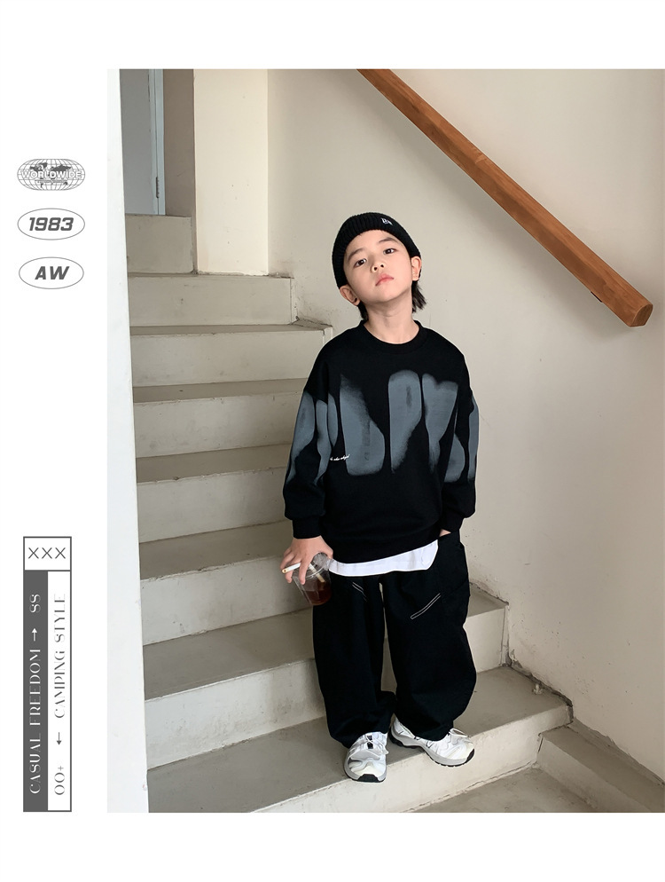 男童卫衣春季2024新款儿童韩版宽松中大童帅气套头衫男孩炸街上衣