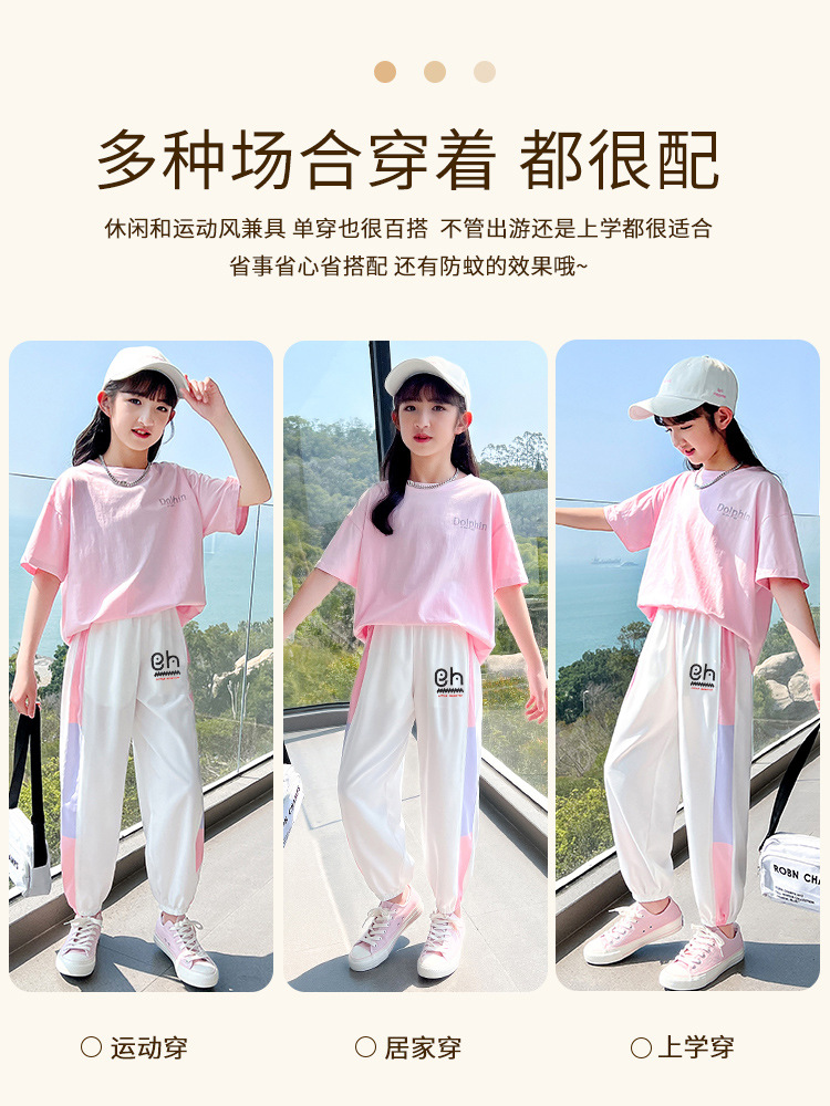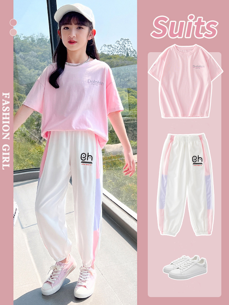 女童短袖套装夏装时髦中大童韩版2023新款网红洋气休闲儿童衣服