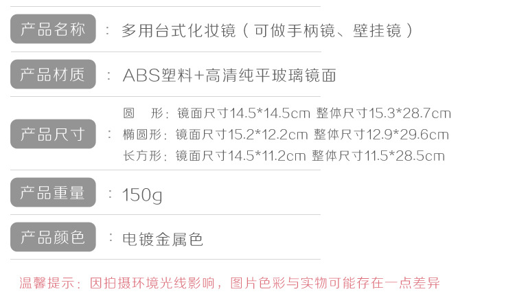 淞豪高清多用台式化妆镜手柄镜手拿便携折叠壁挂镜梳妆镜子放大书