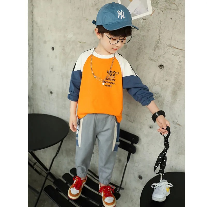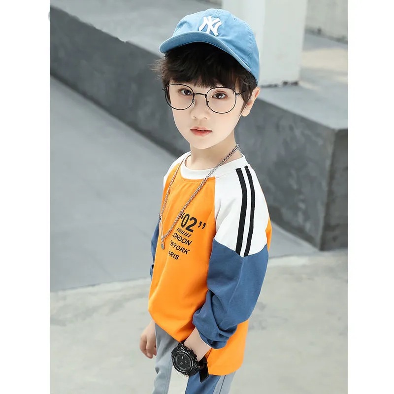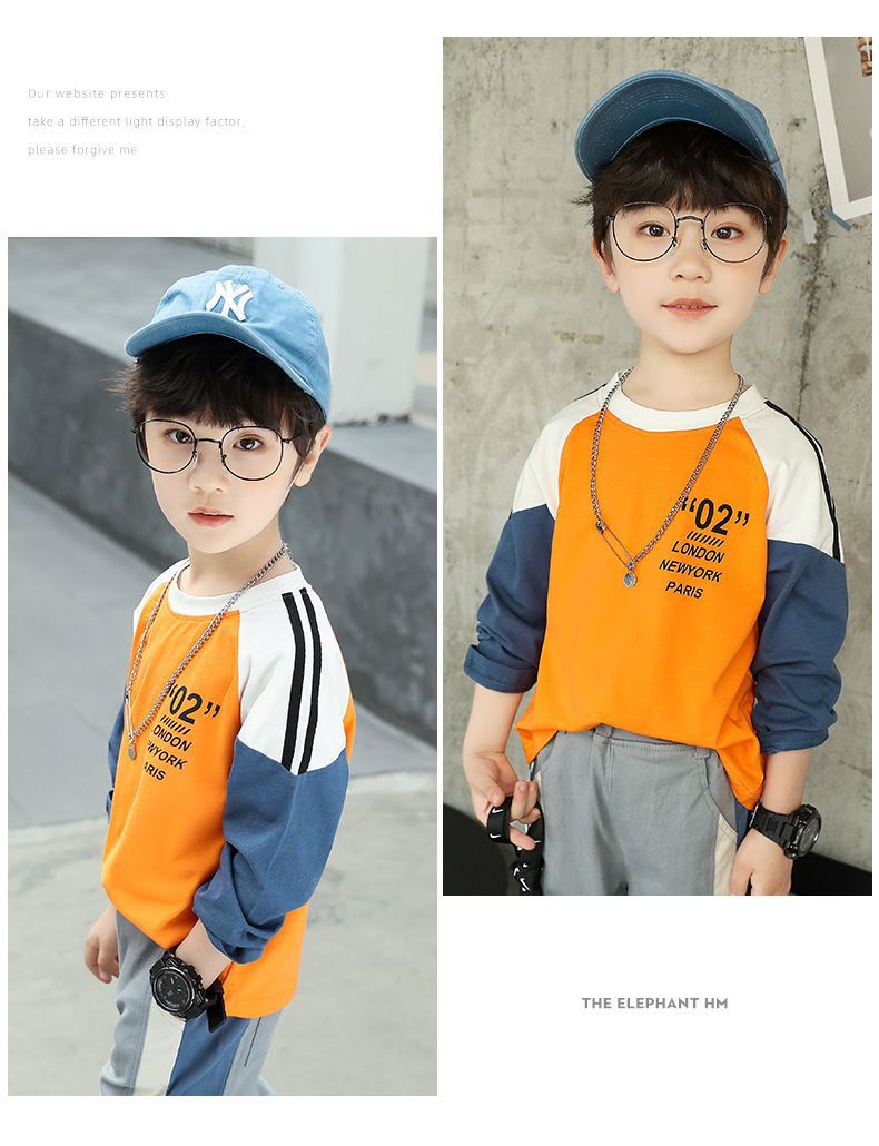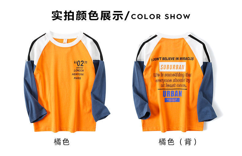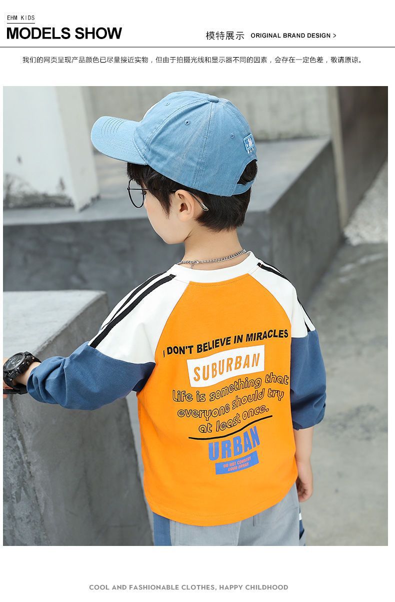 男童长袖t恤2023秋装新款儿童春秋打底衫中大童宽松韩版拼接上衣