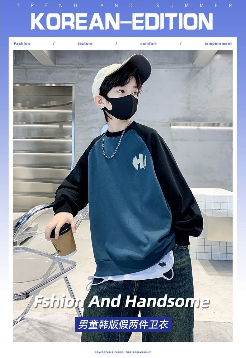 男童秋装卫衣2023新款中大儿童秋季男孩长袖春秋款洋气宽松上衣潮