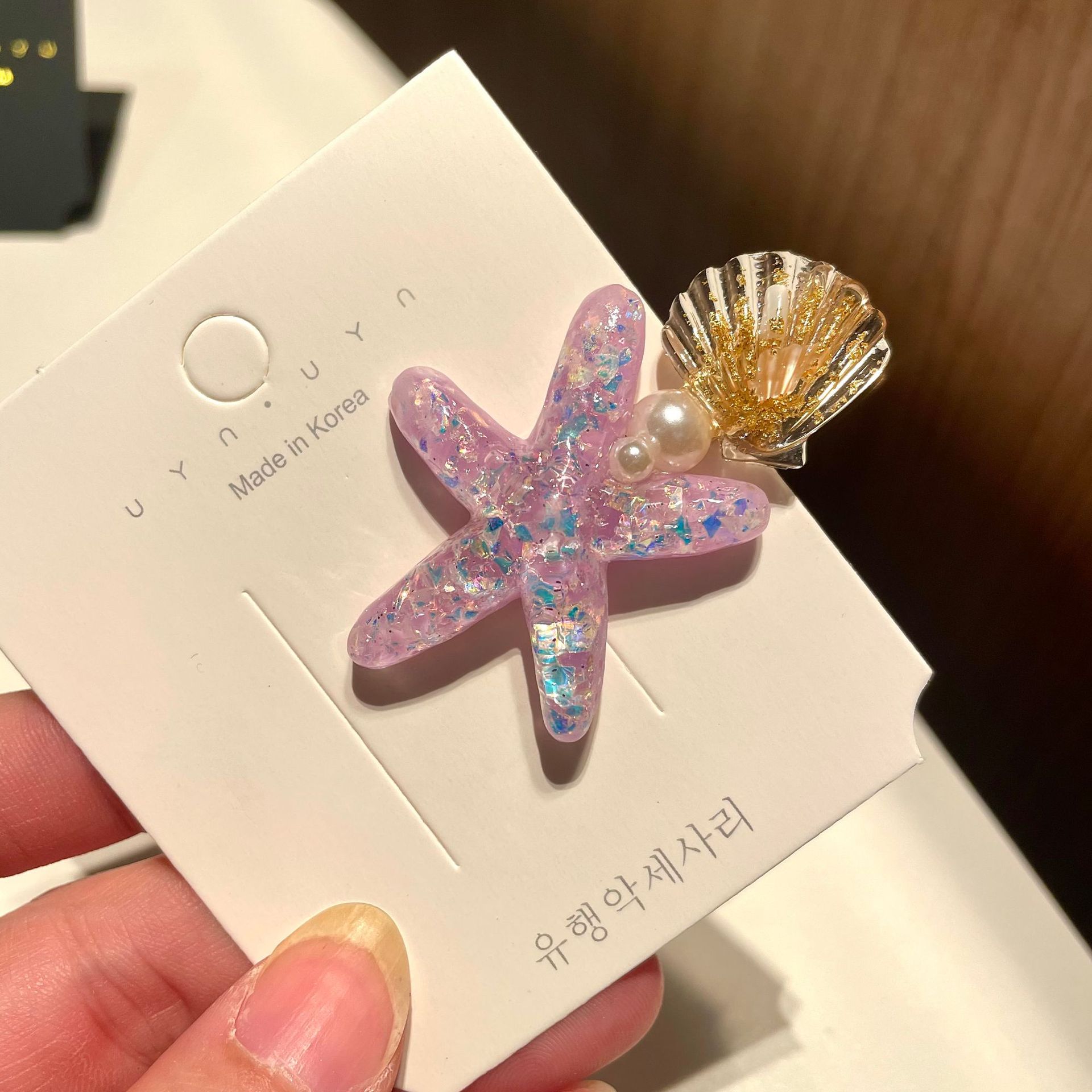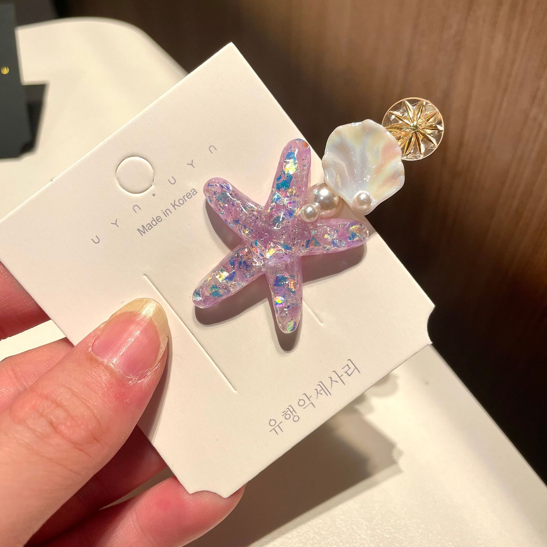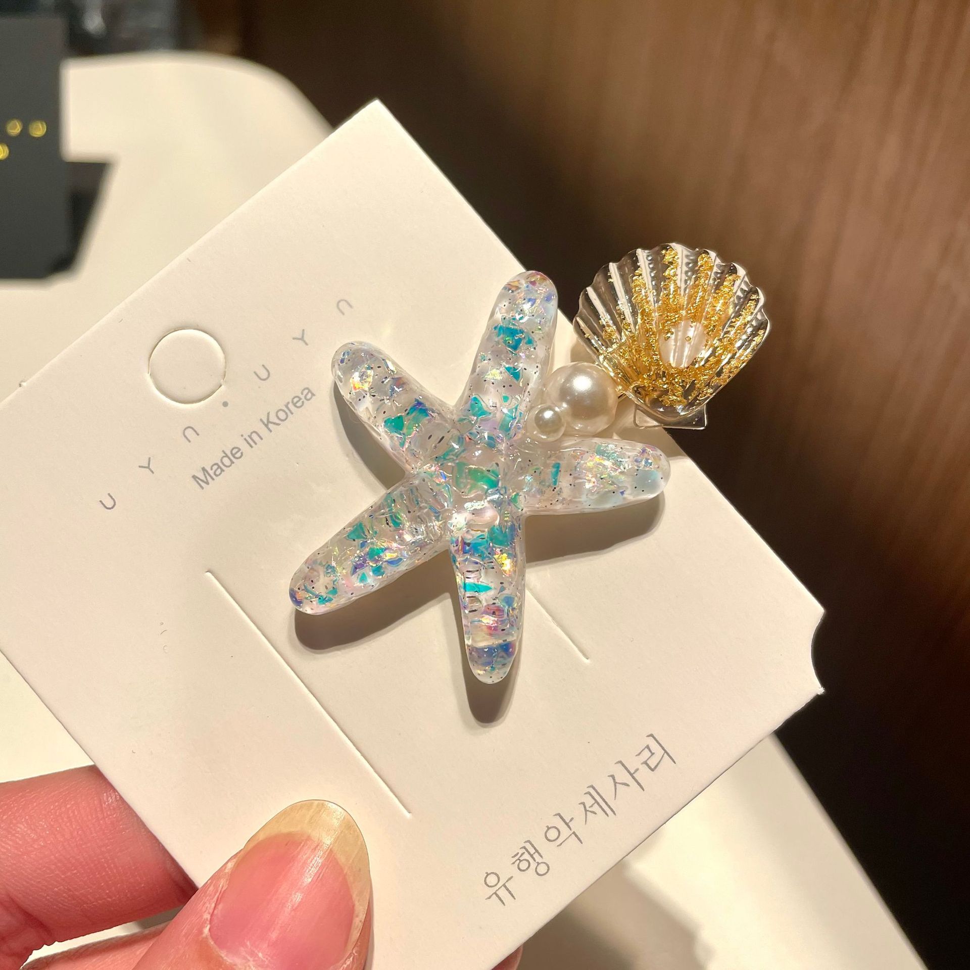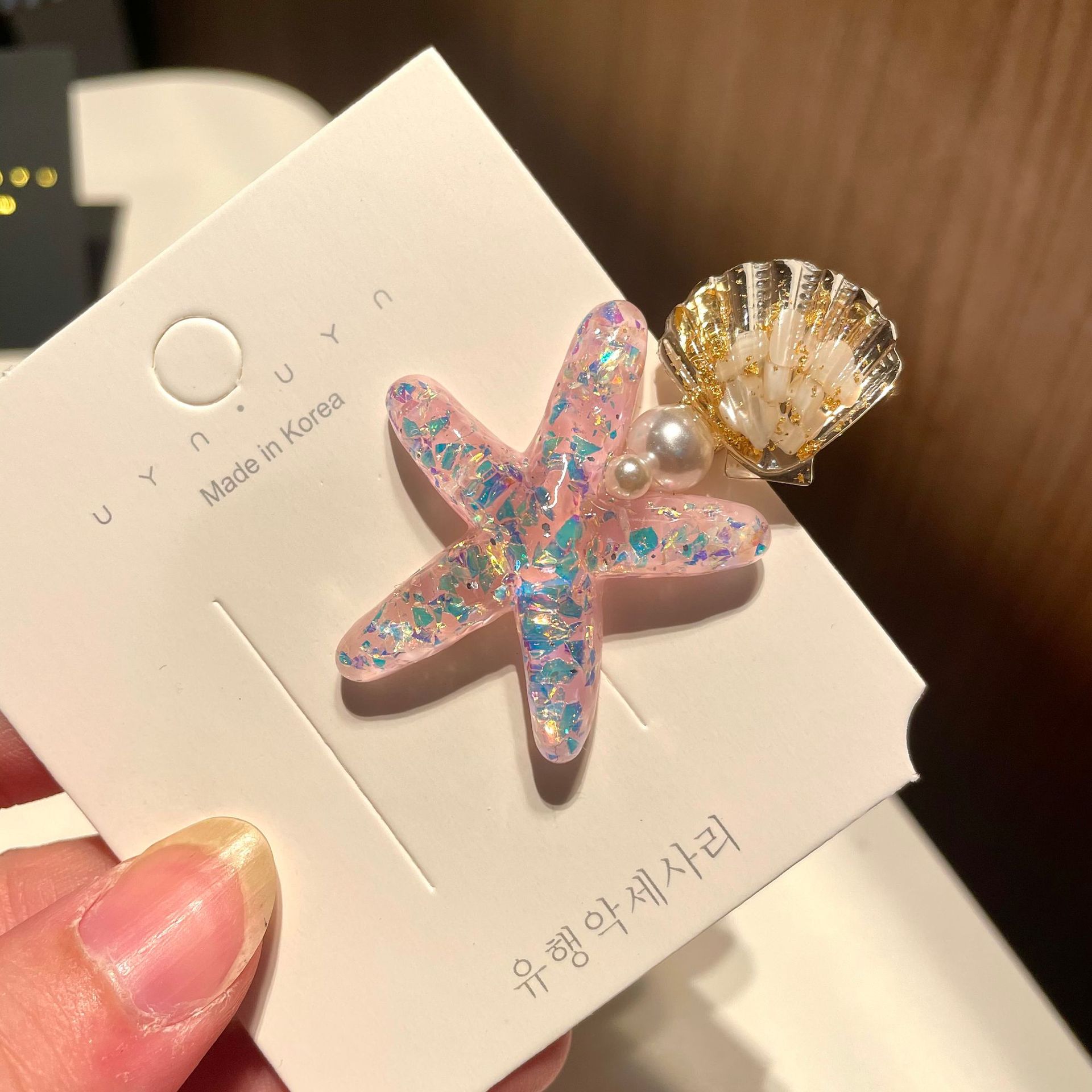 夏季海洋海星贝壳发夹夹子可爱儿童边夹鸭嘴夹珍珠发卡发饰头饰女