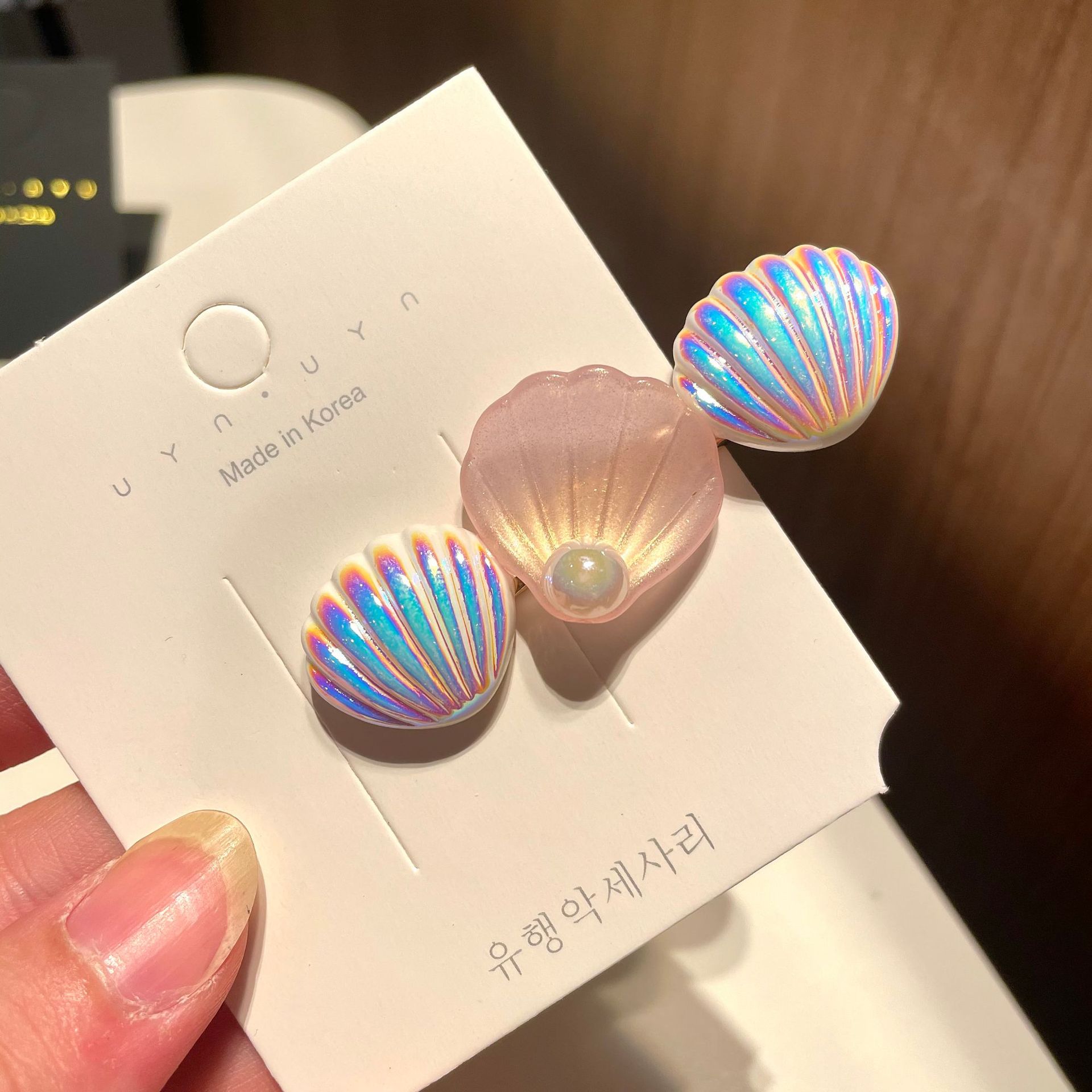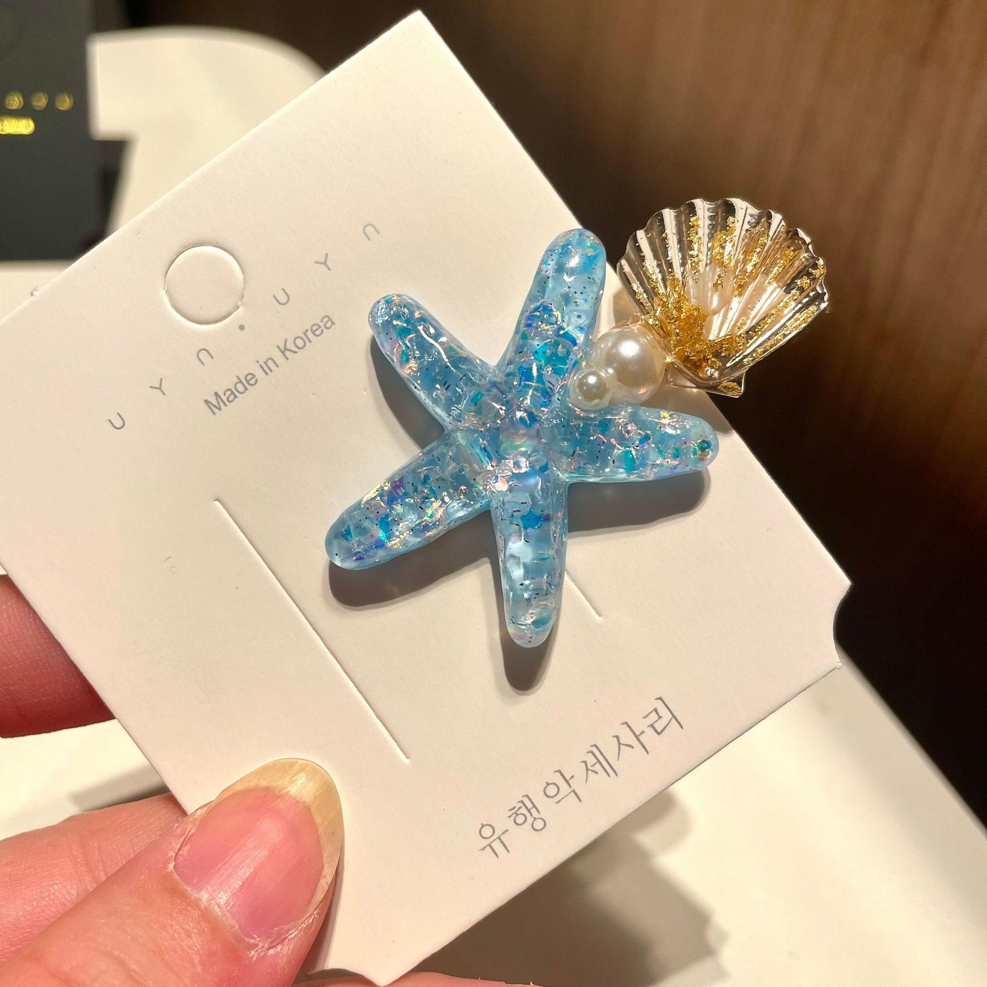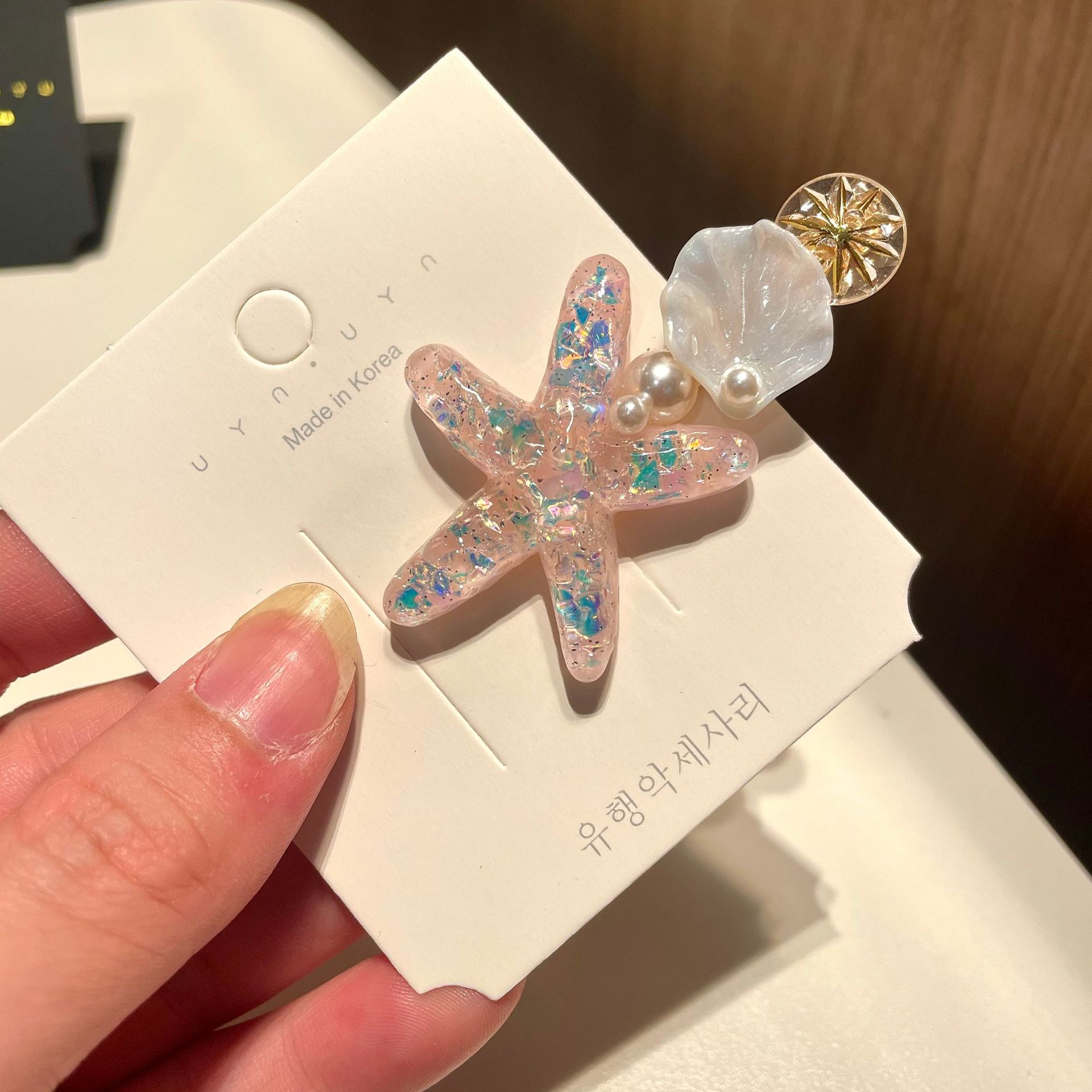 夏季海洋海星贝壳发夹夹子可爱儿童边夹鸭嘴夹珍珠发卡发饰头饰女