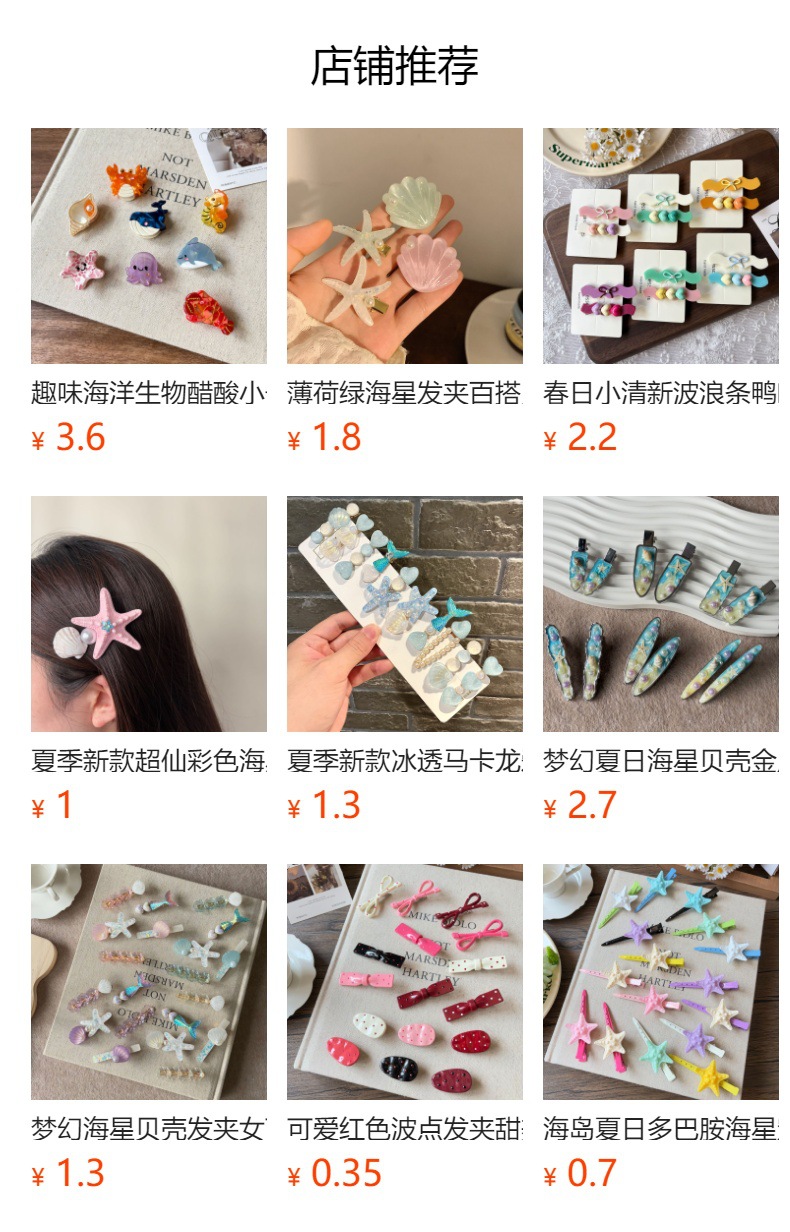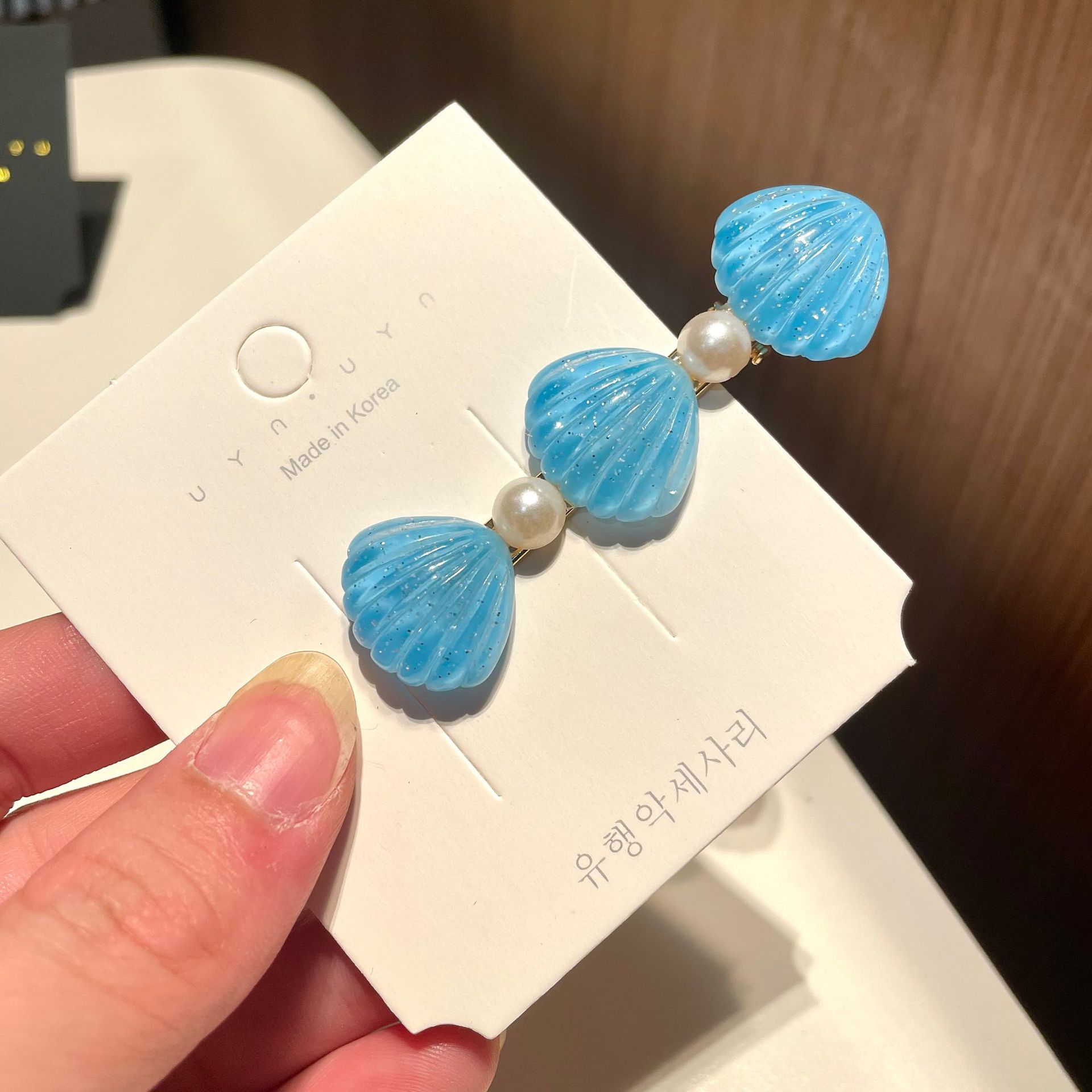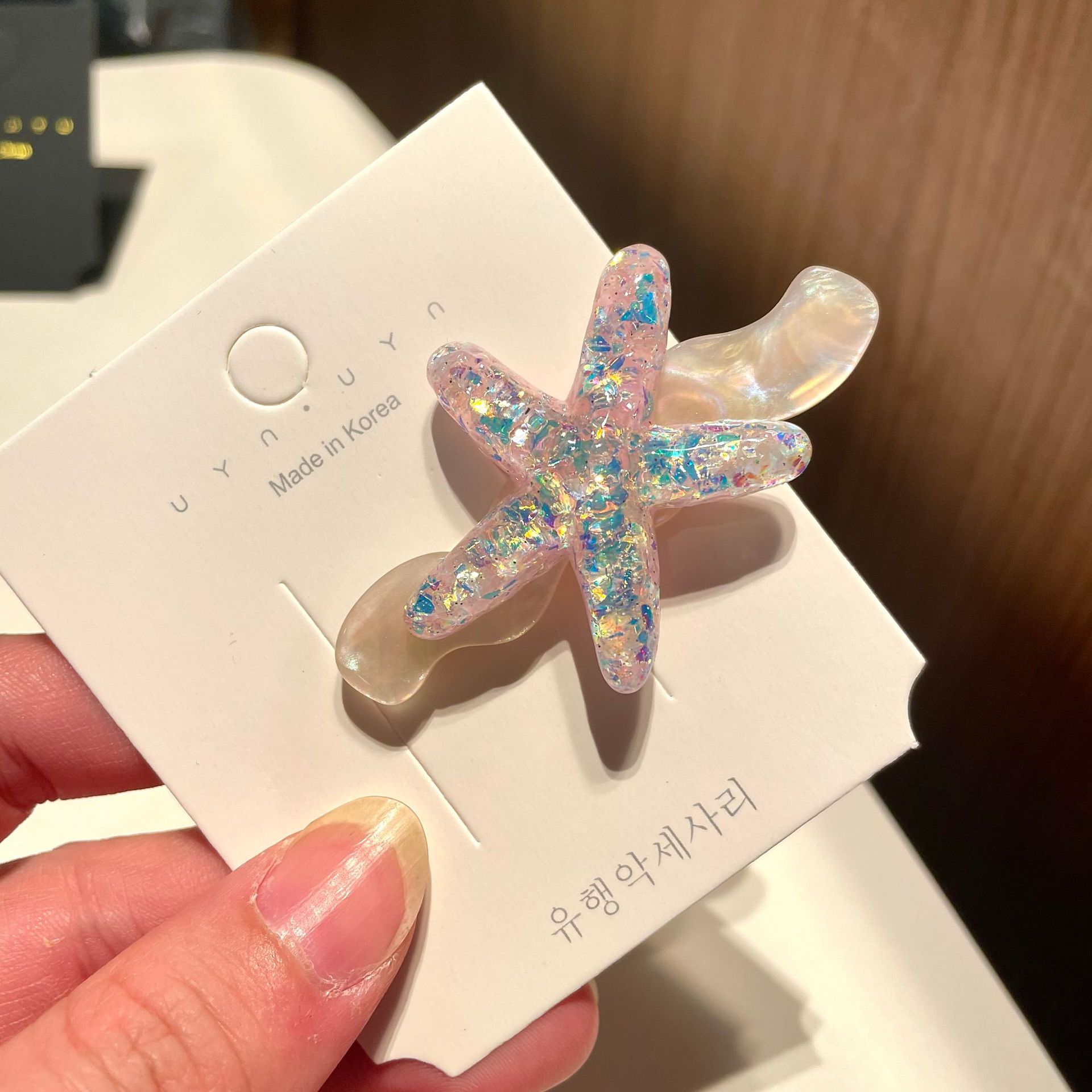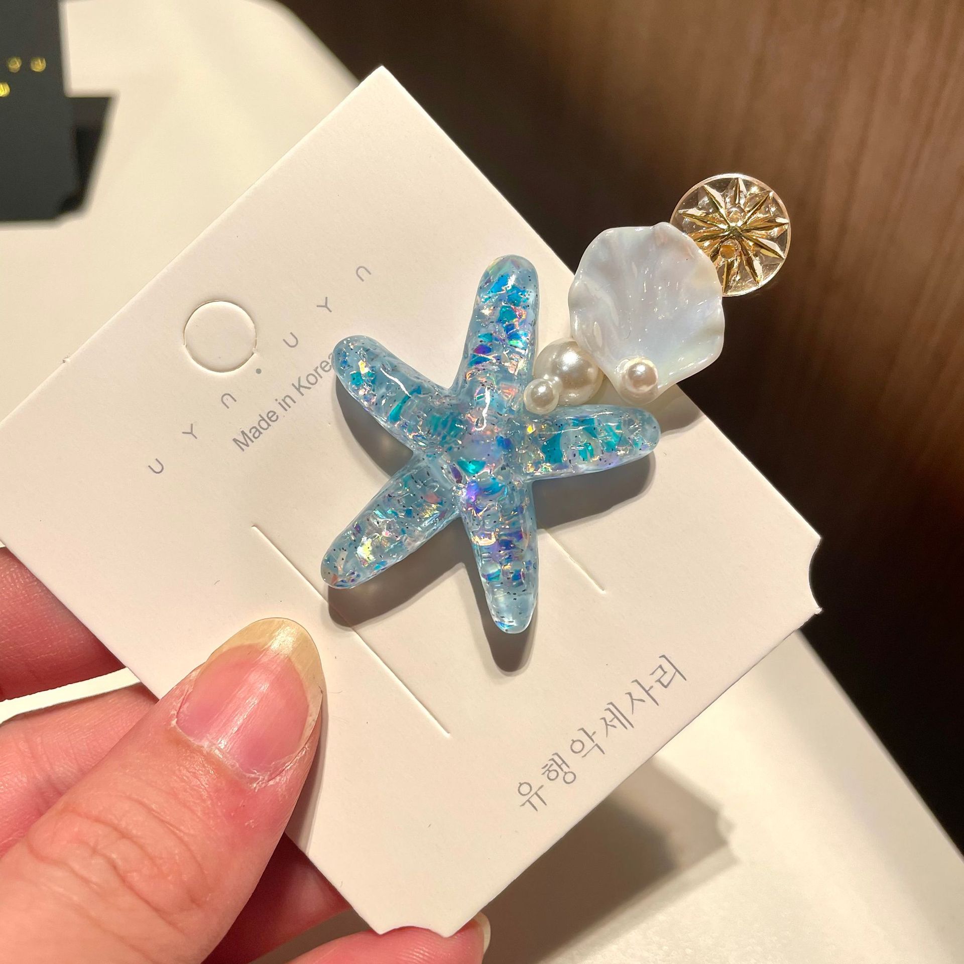 夏季海洋海星贝壳发夹夹子可爱儿童边夹鸭嘴夹珍珠发卡发饰头饰女
