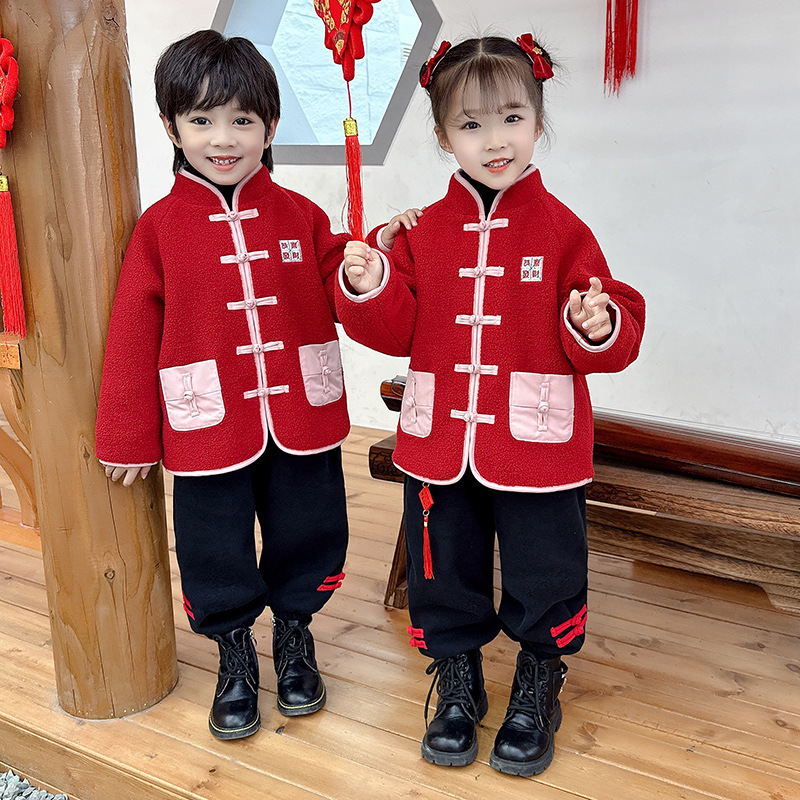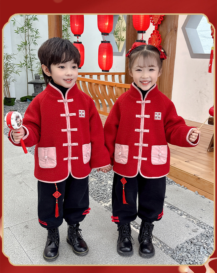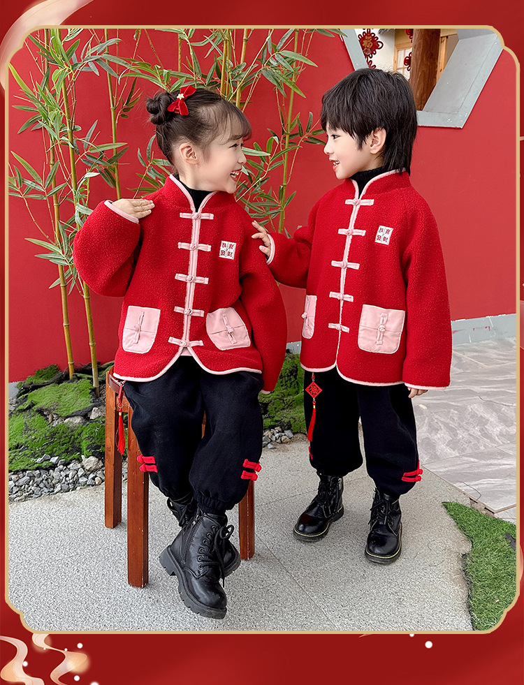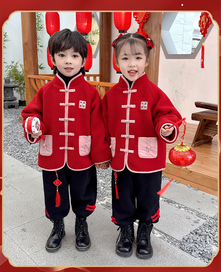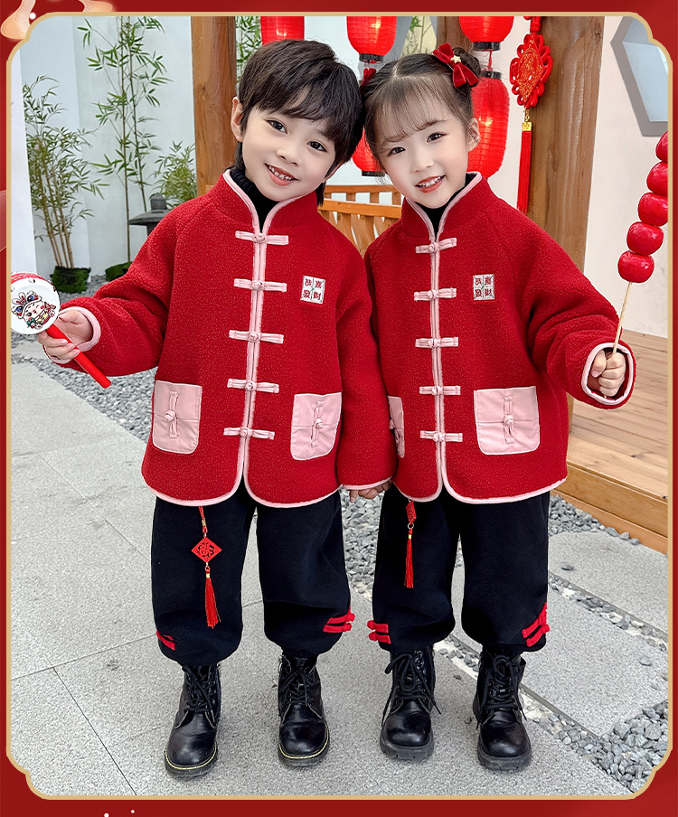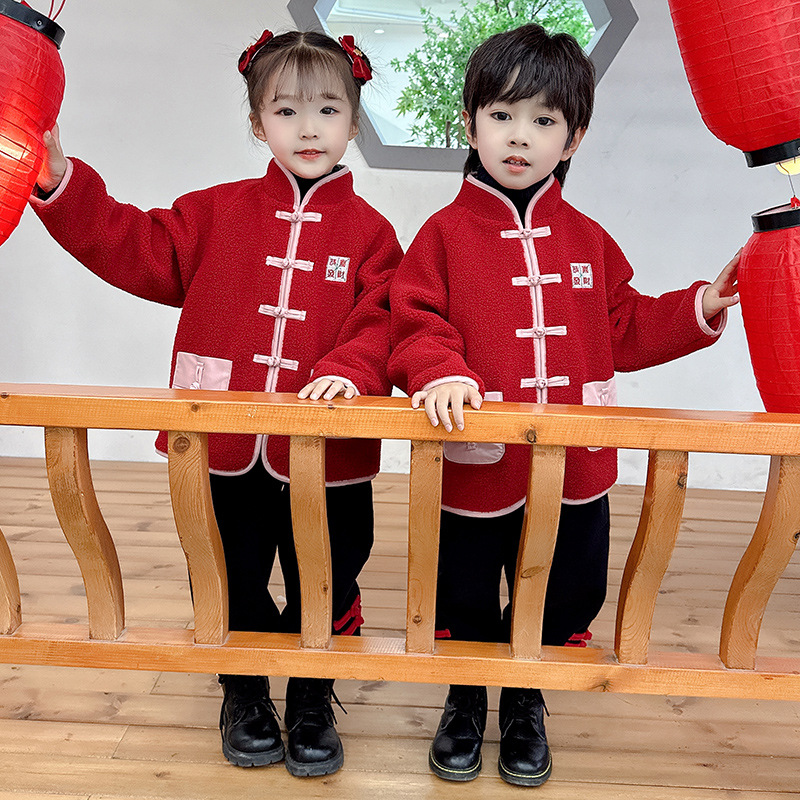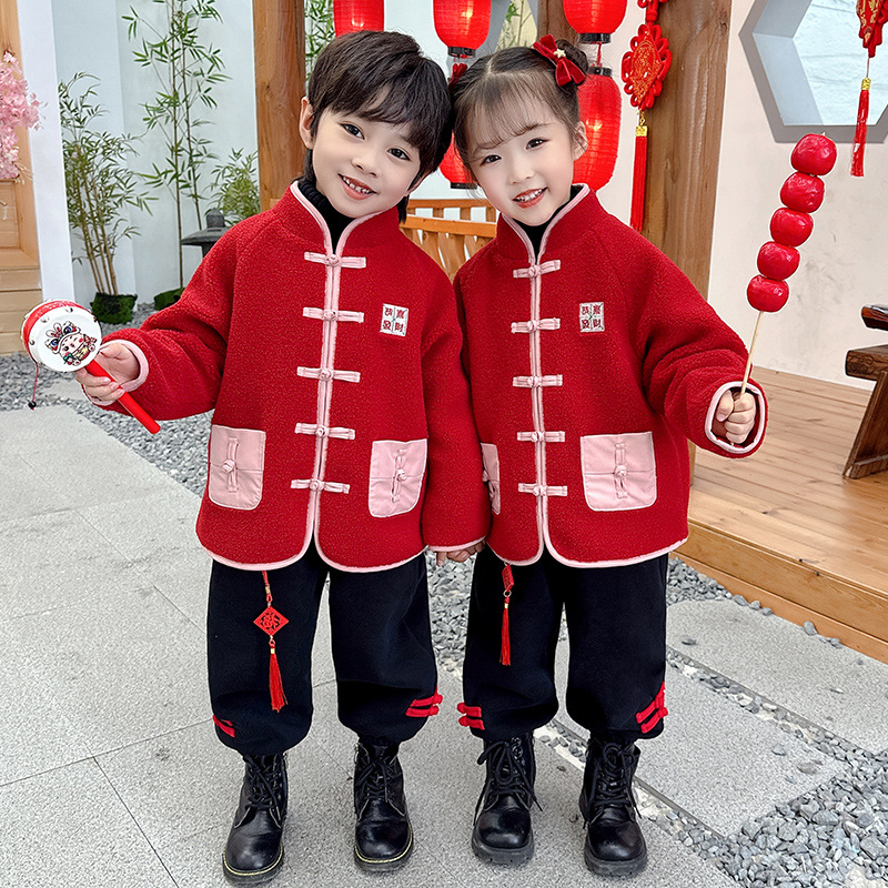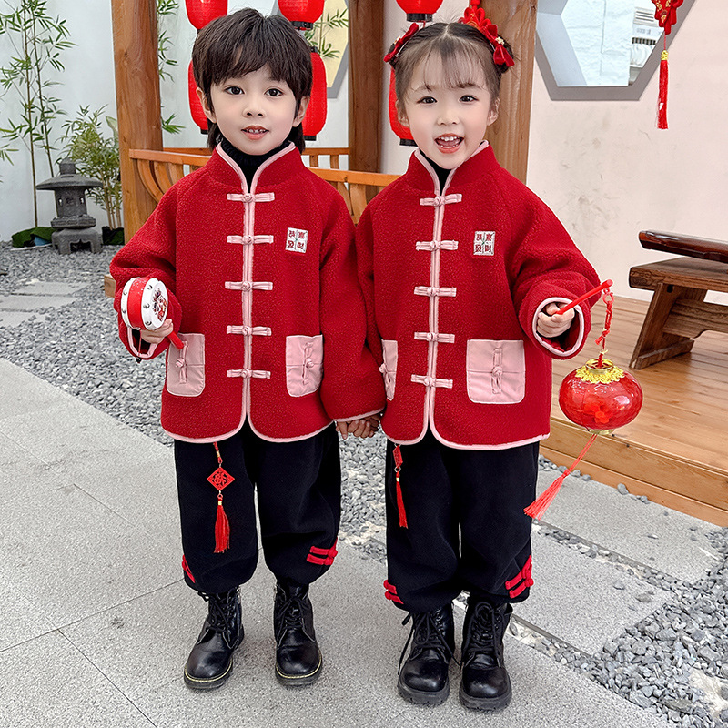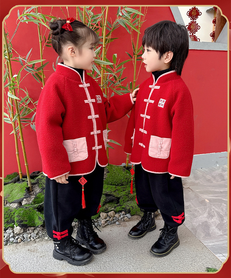 儿童红色衣服女童周岁唐装新年外套小男童过年冬装宝宝喜庆汉服男