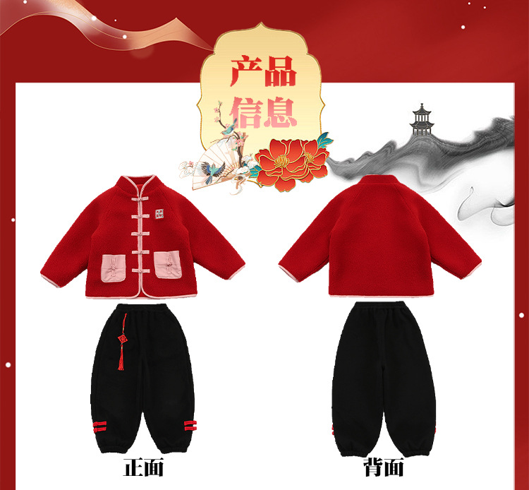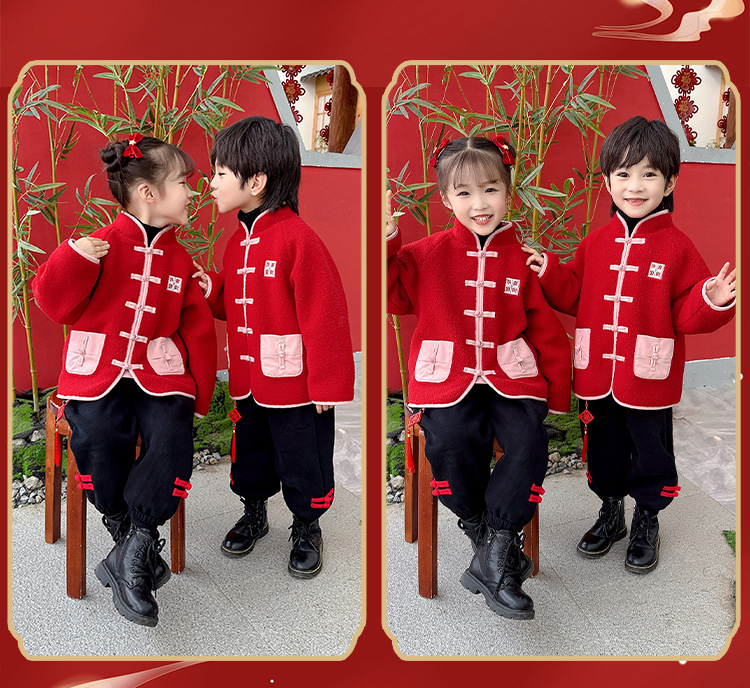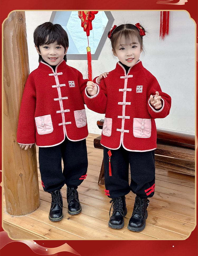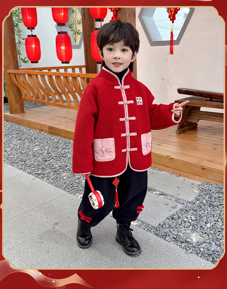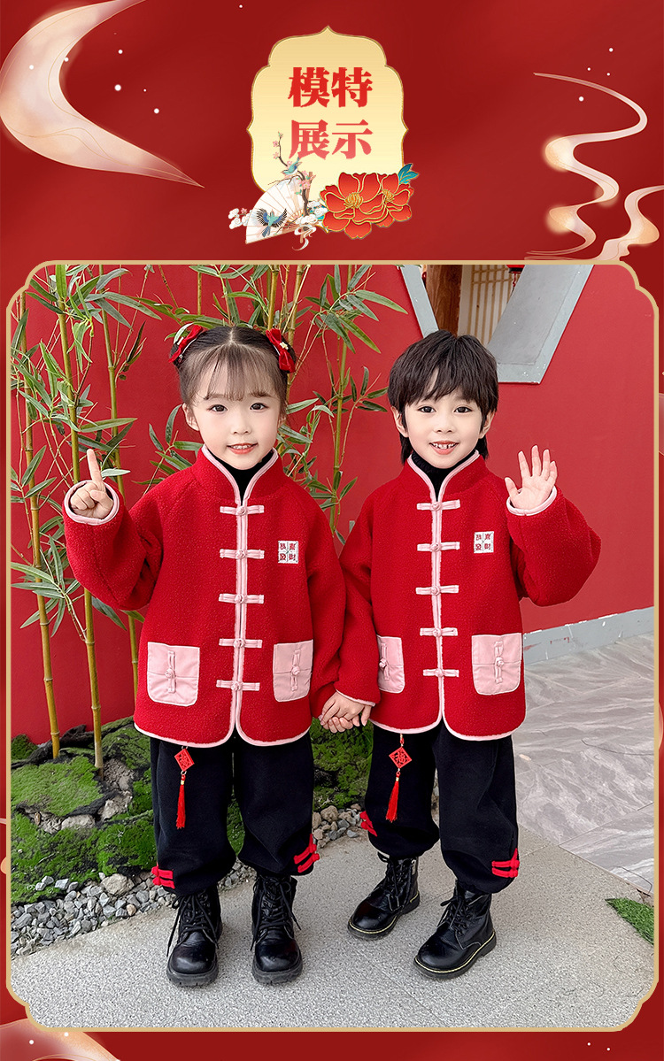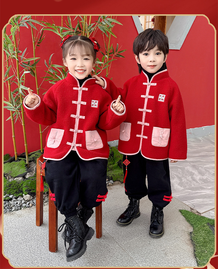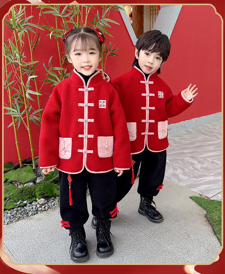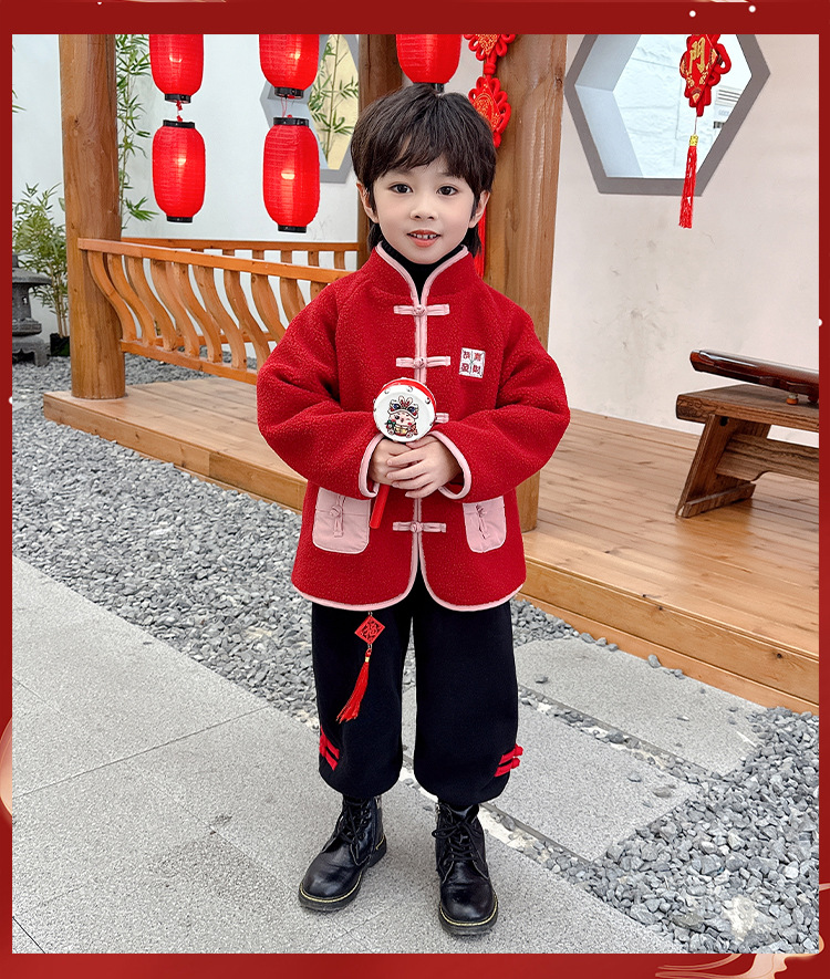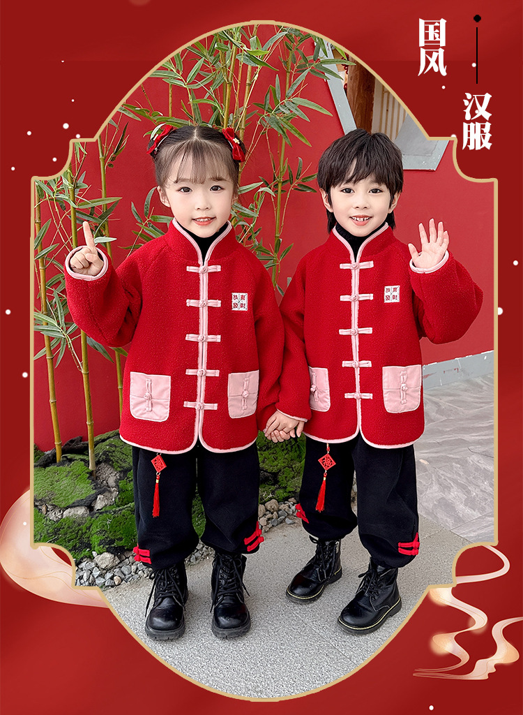 儿童红色衣服女童周岁唐装新年外套小男童过年冬装宝宝喜庆汉服男