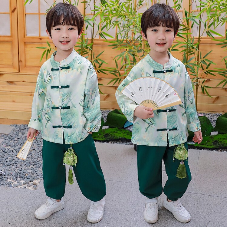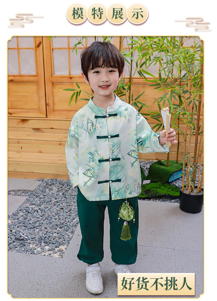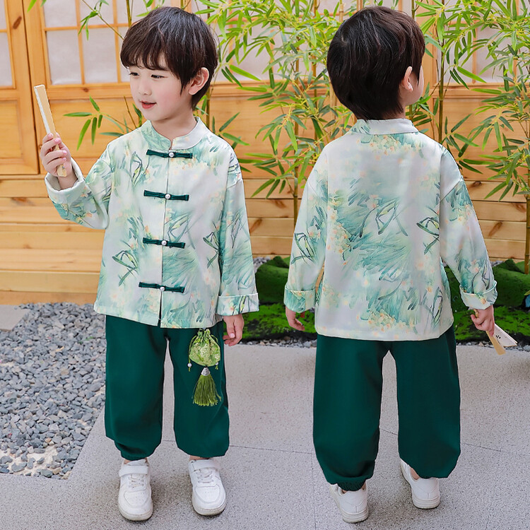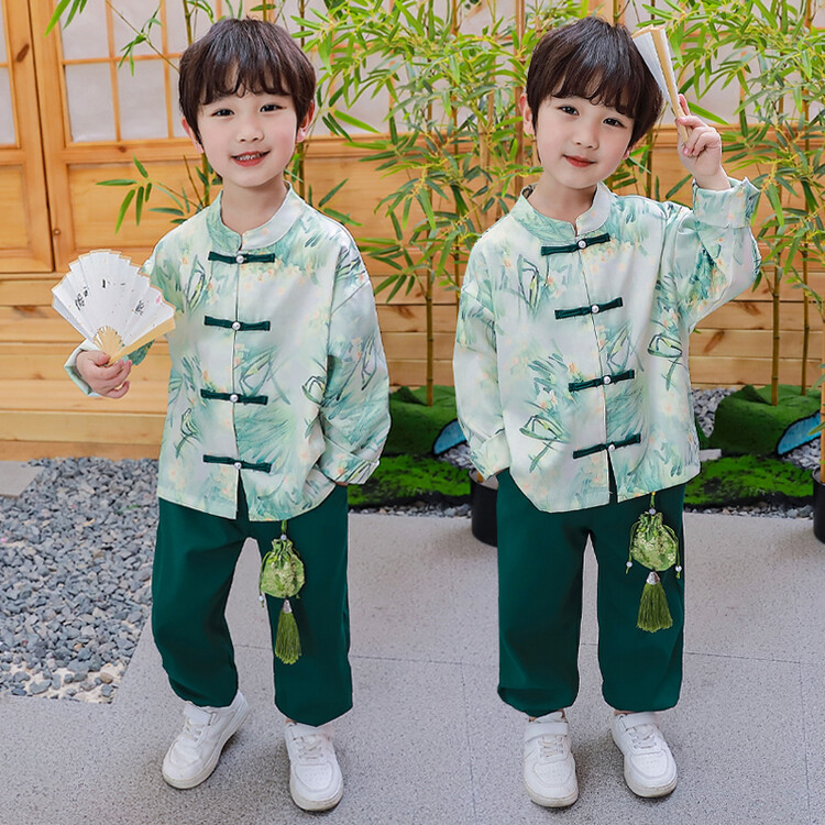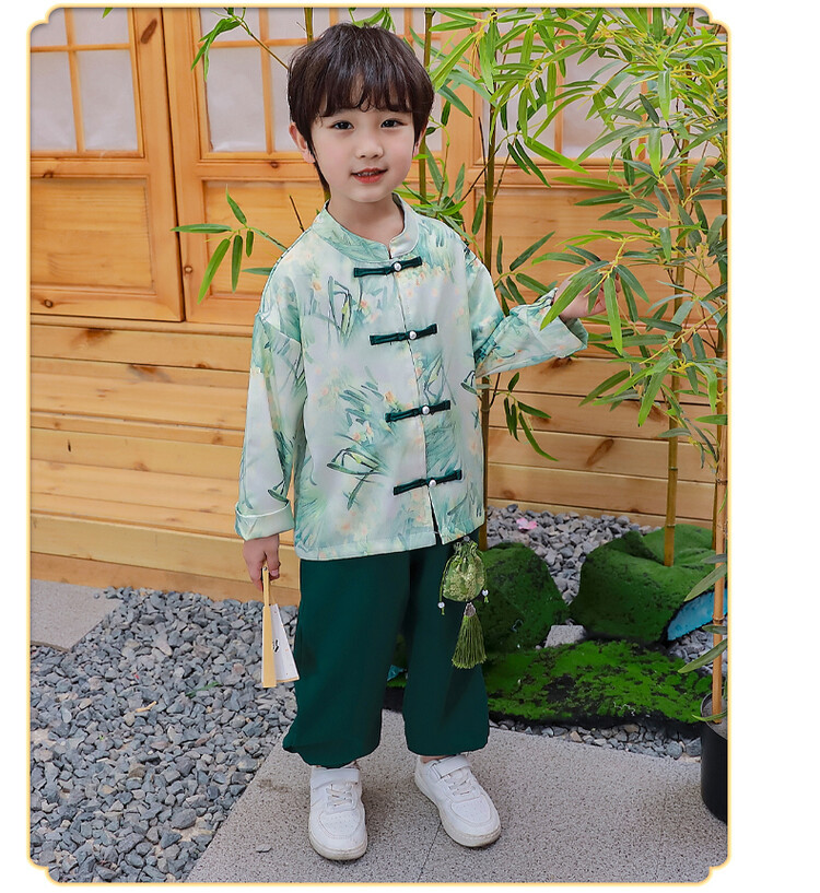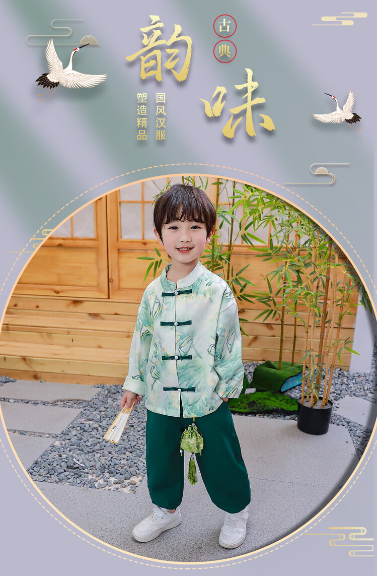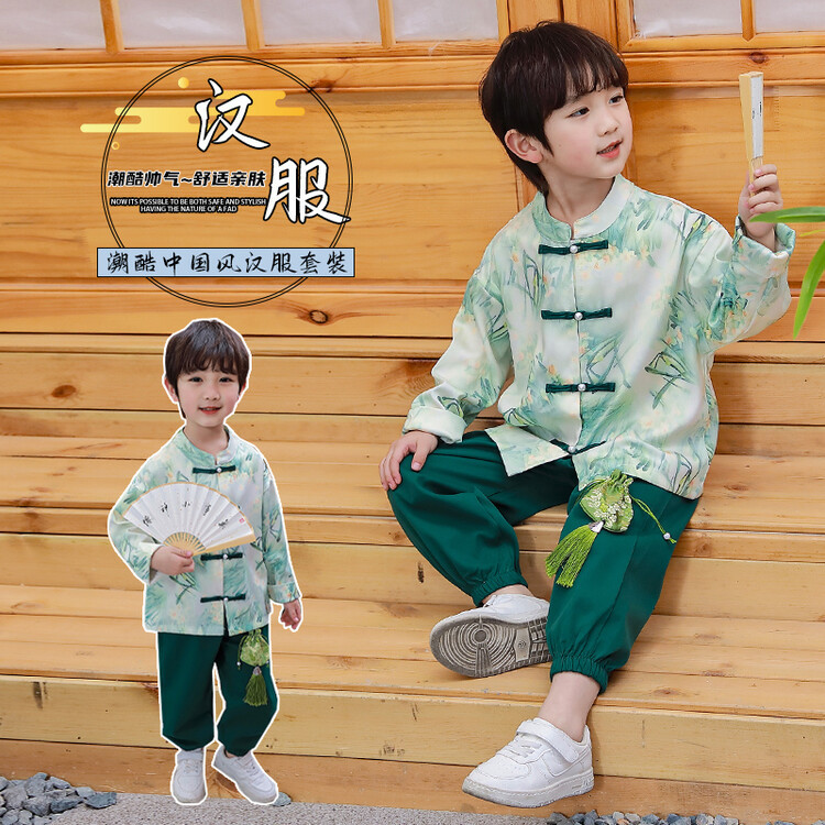 中国汉服男童中式套装春秋款儿童唐装夏季民族风宝宝古装男孩国学