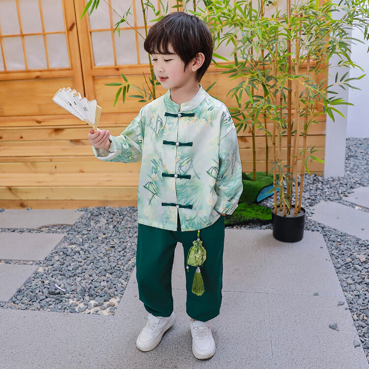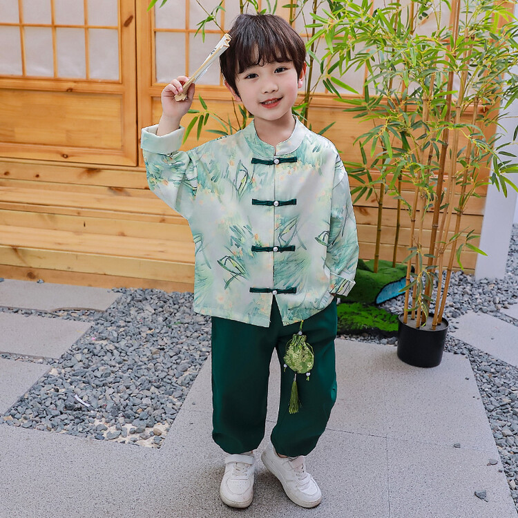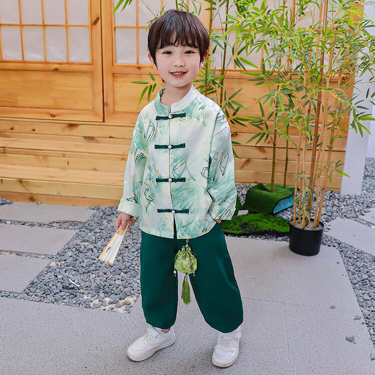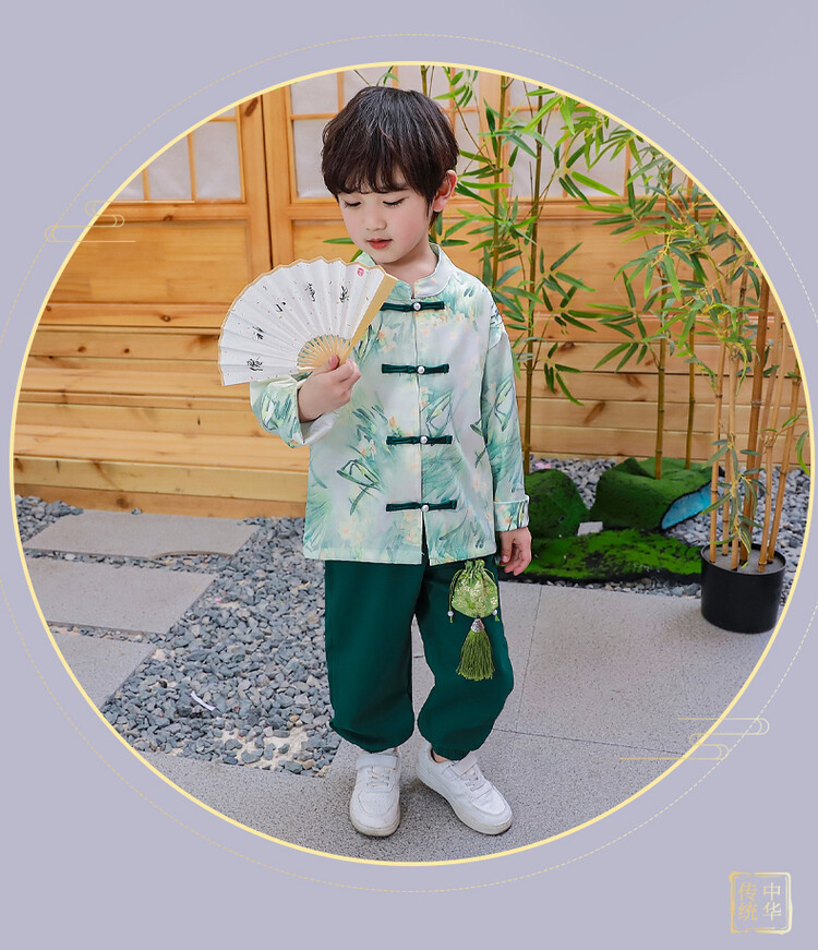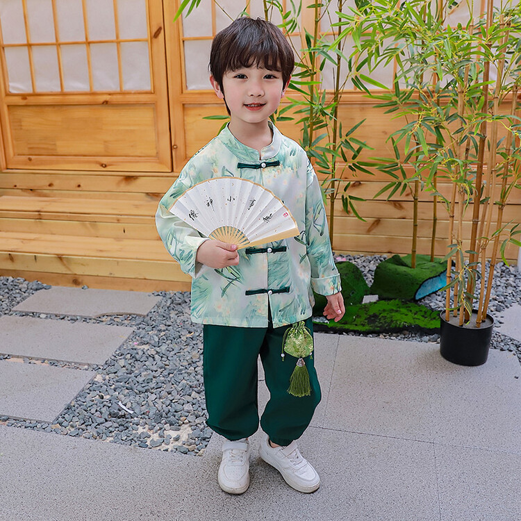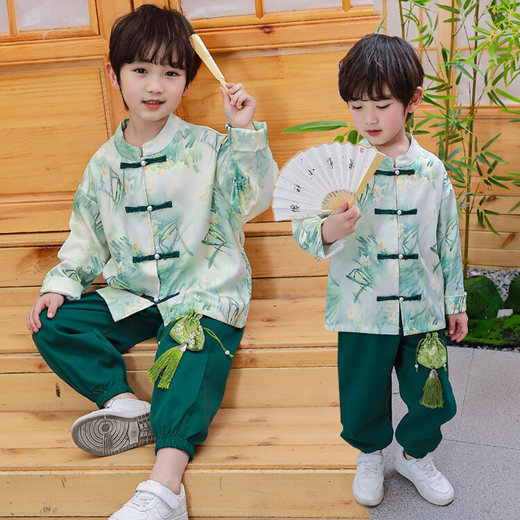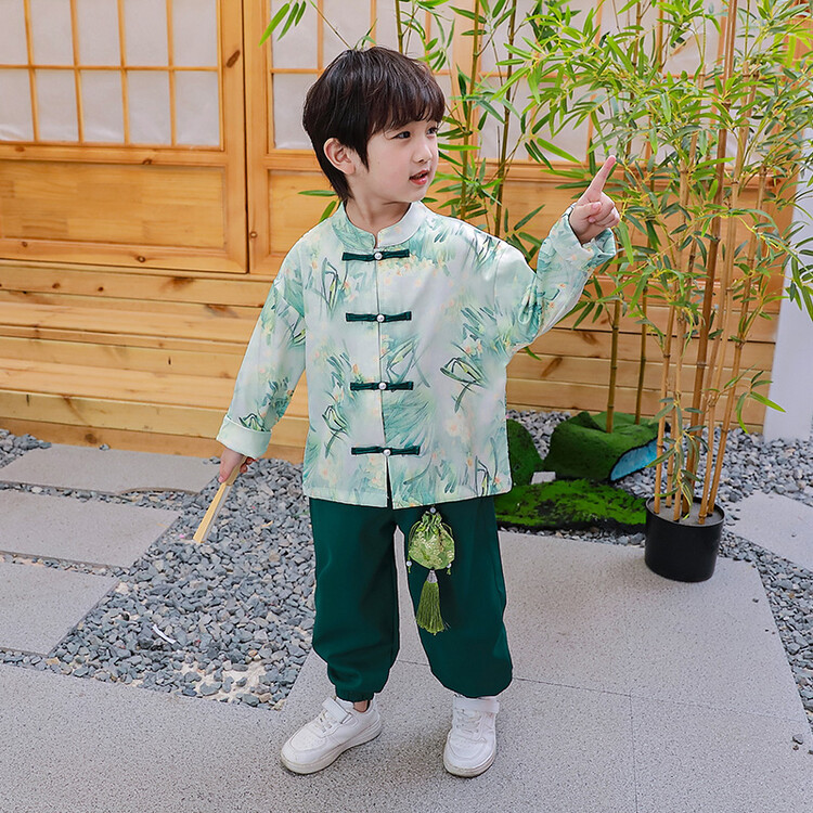 中国汉服男童中式套装春秋款儿童唐装夏季民族风宝宝古装男孩国学