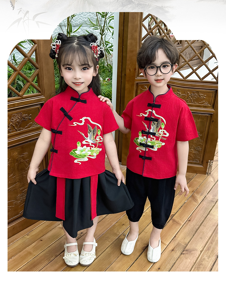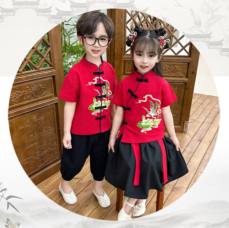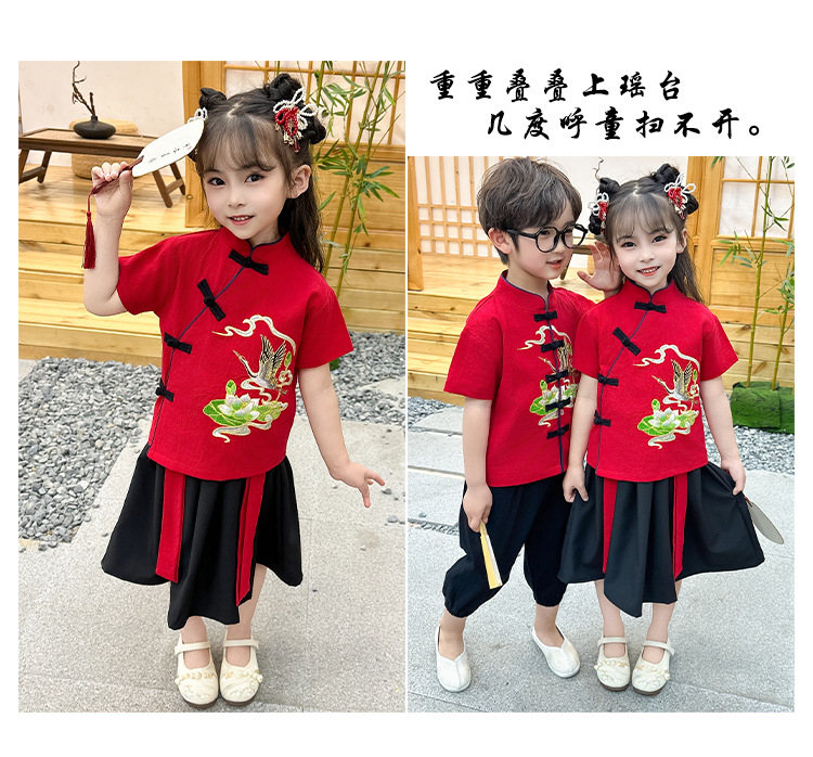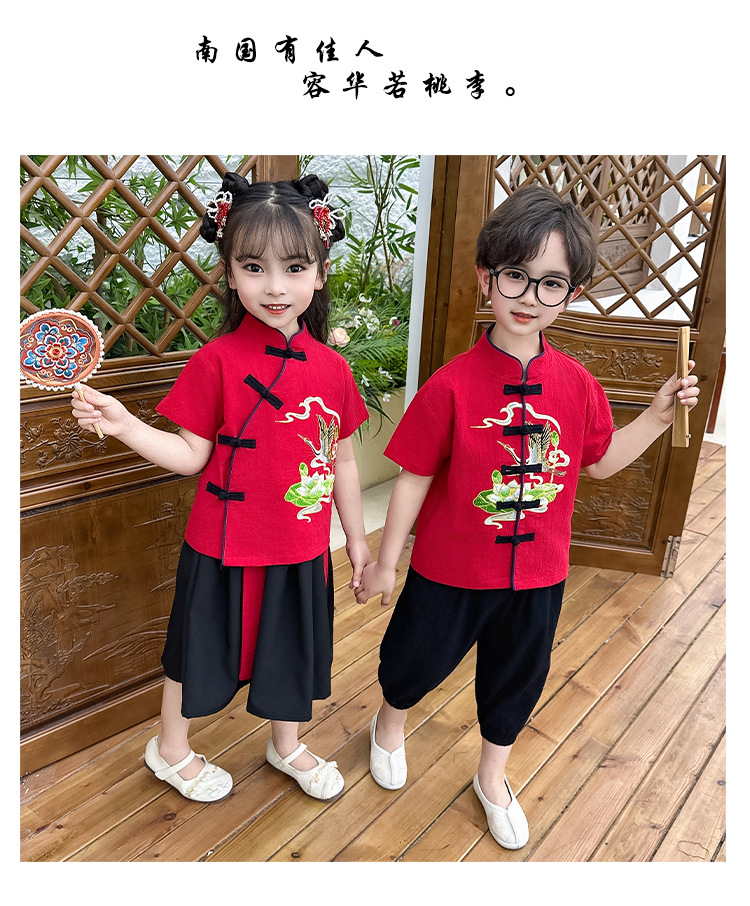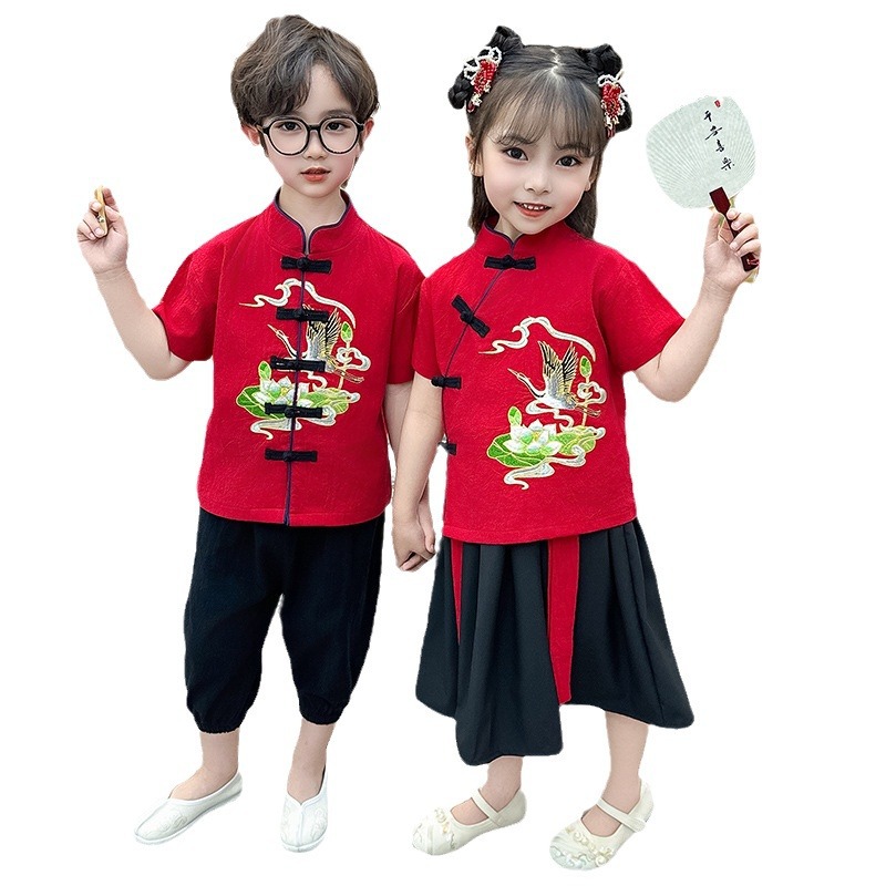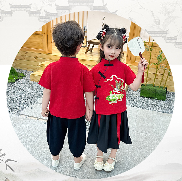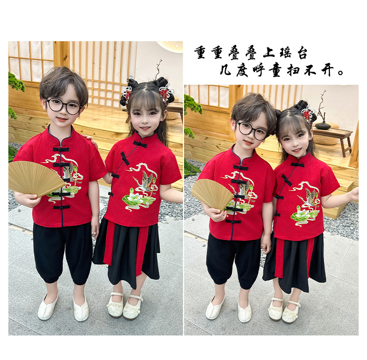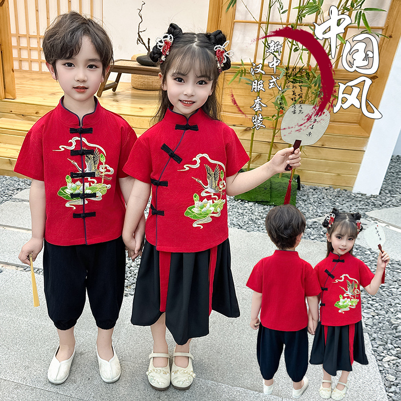 男童夏季汉服女童夏款儿童唐装民族风刺绣薄款中小童国学套装表演
