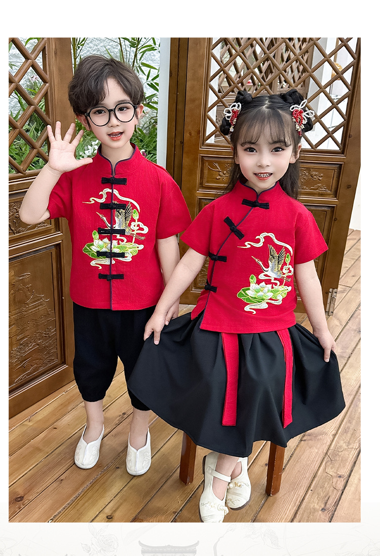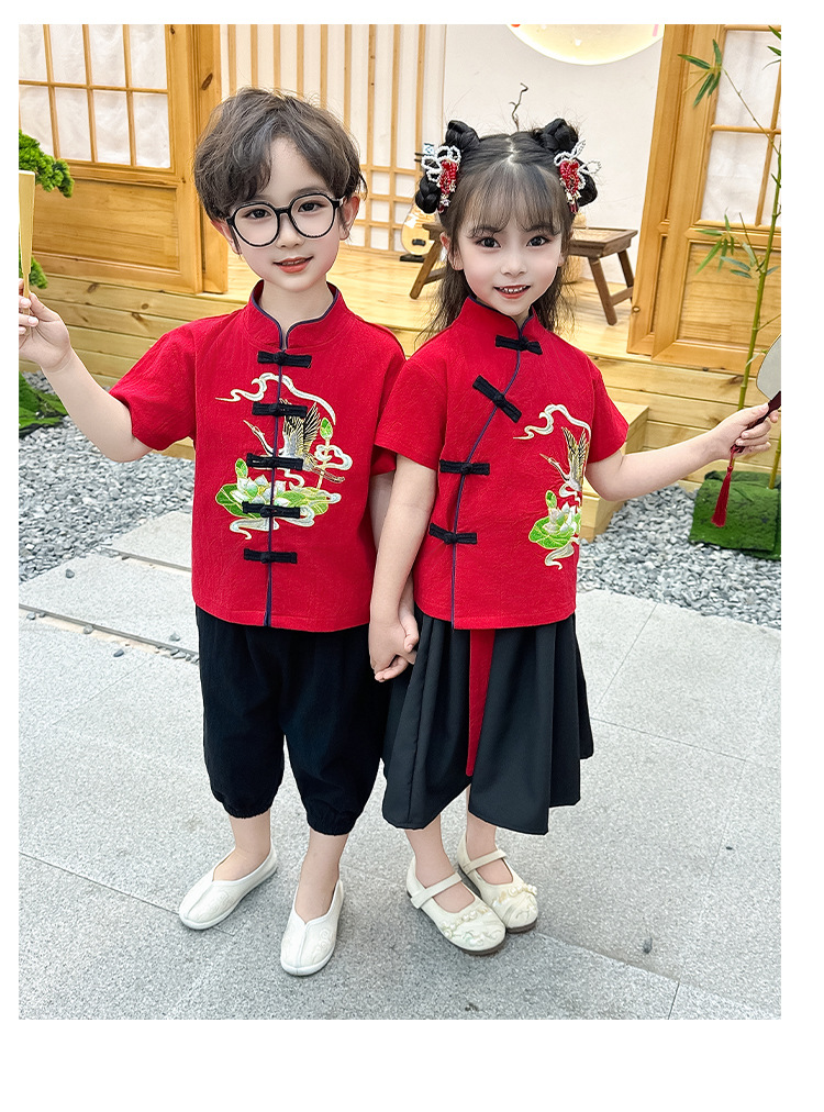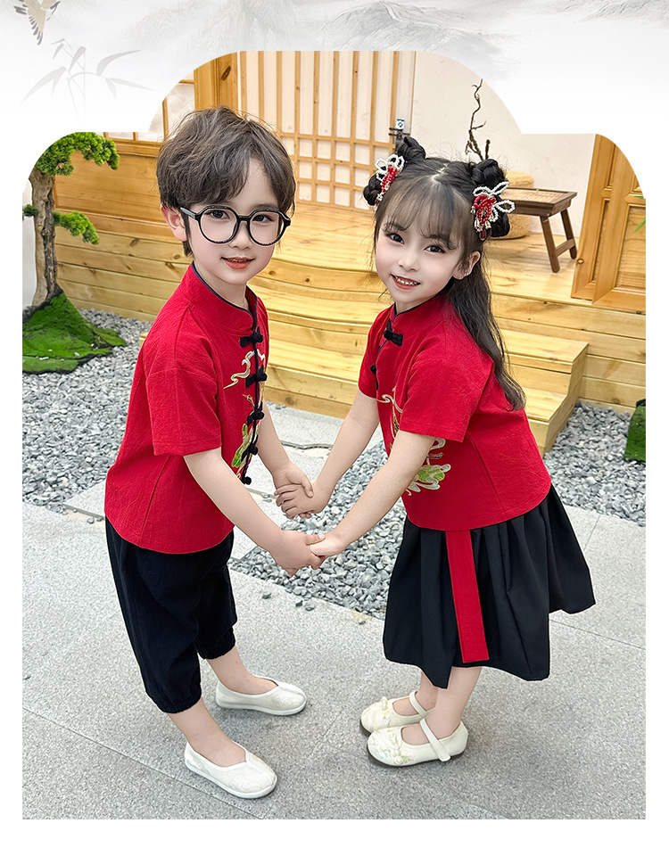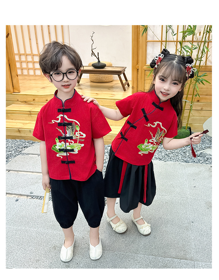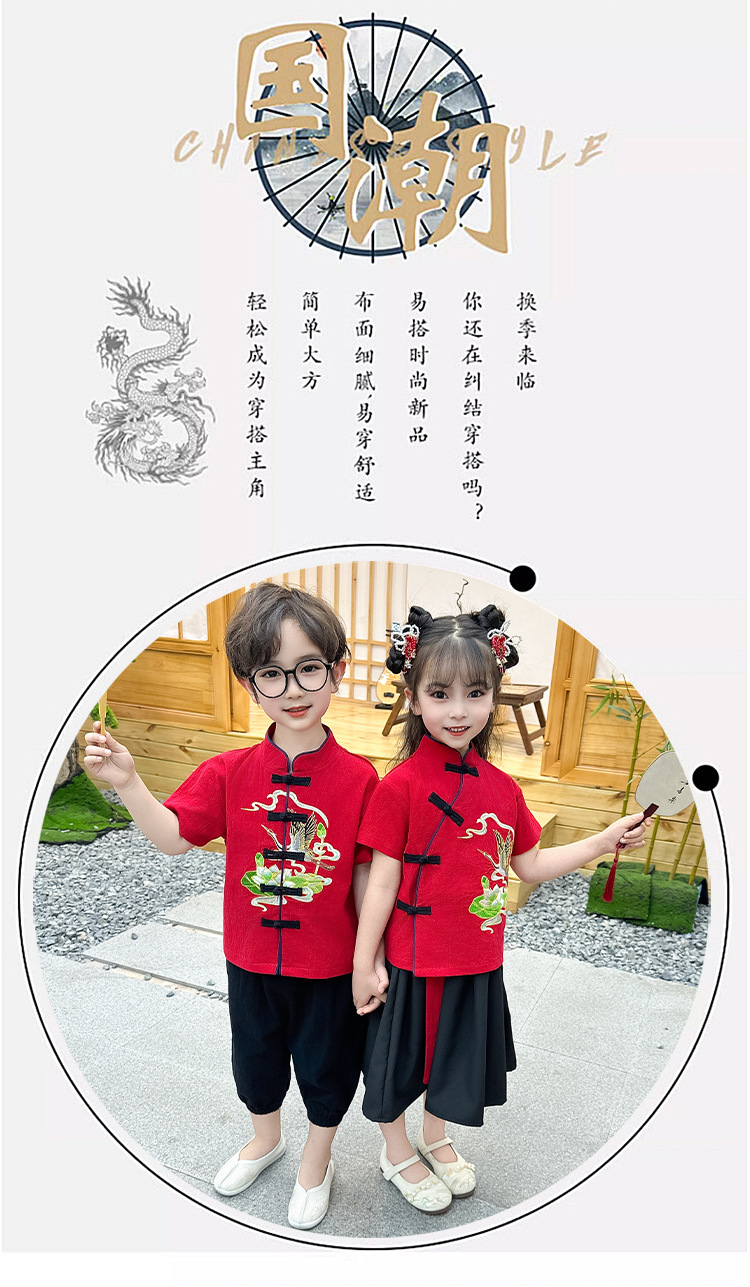男童夏季汉服女童夏款儿童唐装民族风刺绣薄款中小童国学套装表演