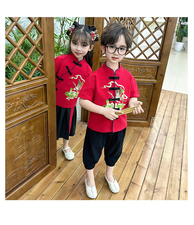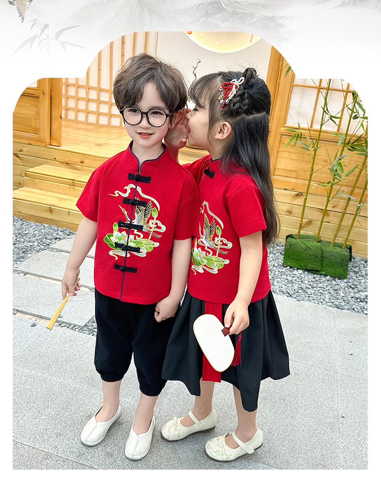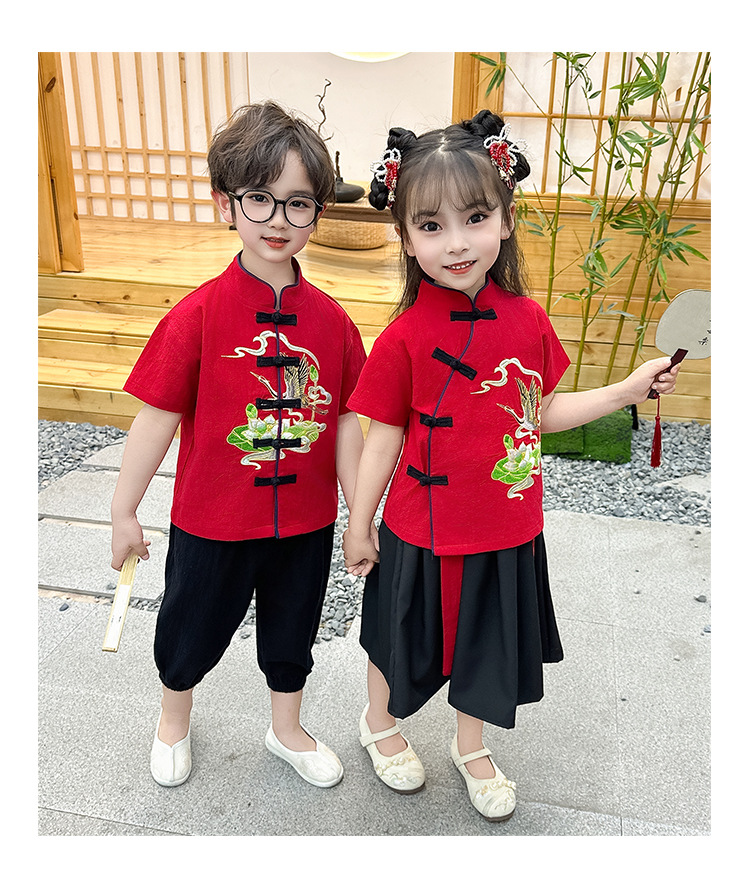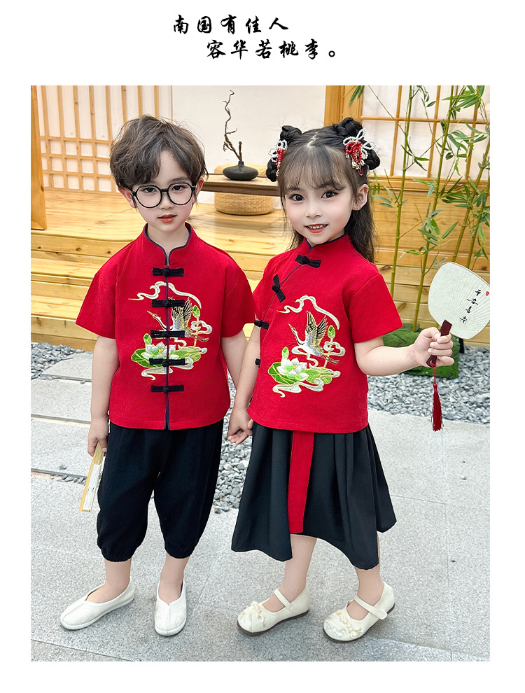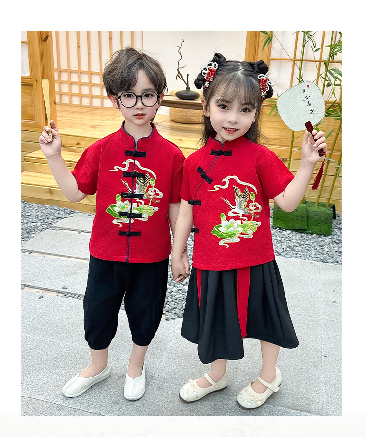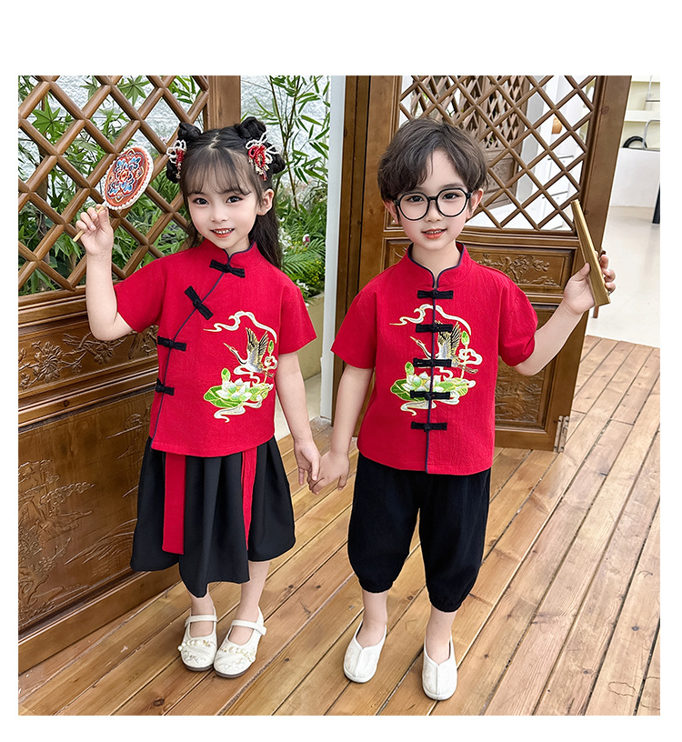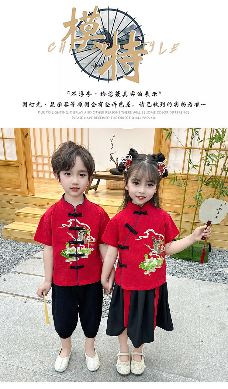 男童夏季汉服女童夏款儿童唐装民族风刺绣薄款中小童国学套装表演