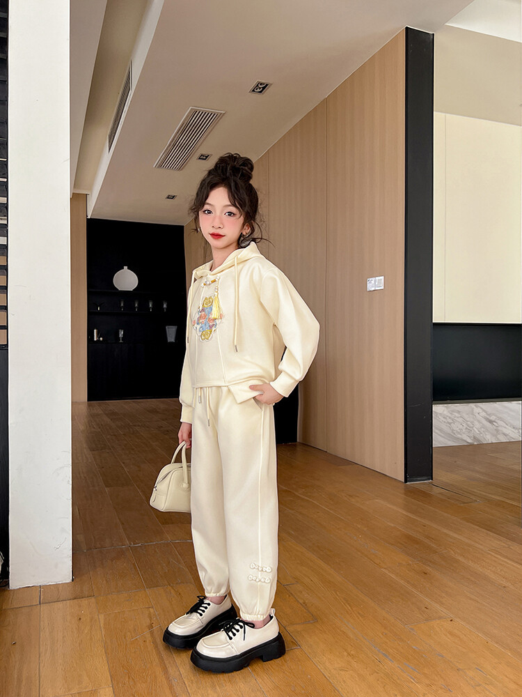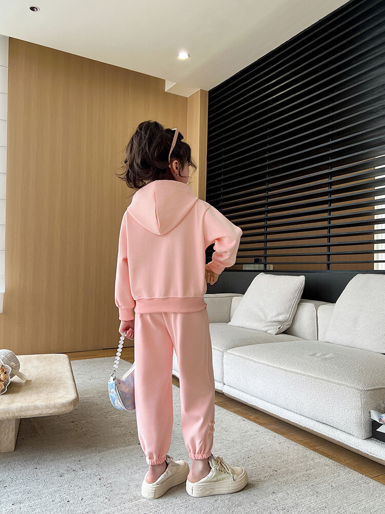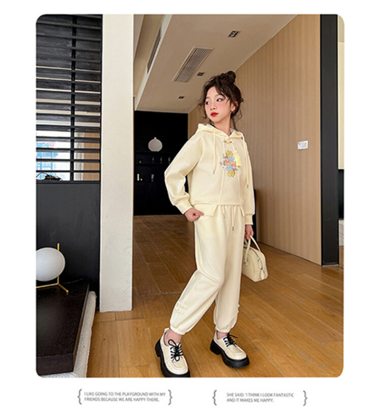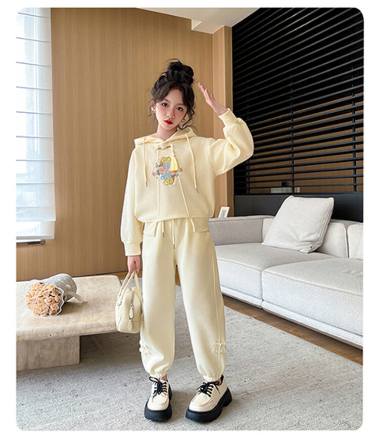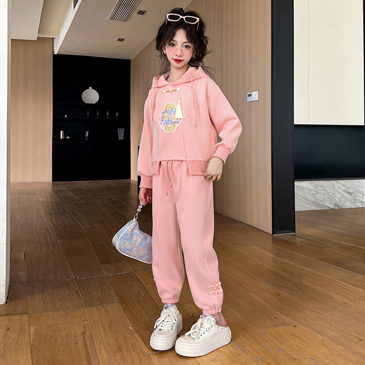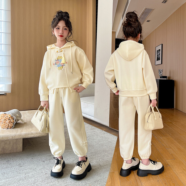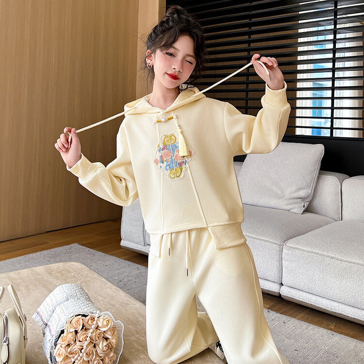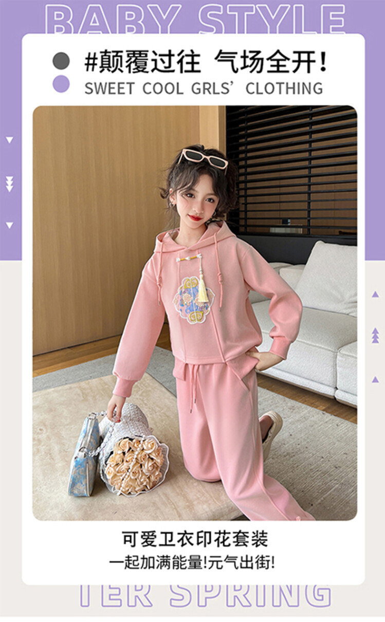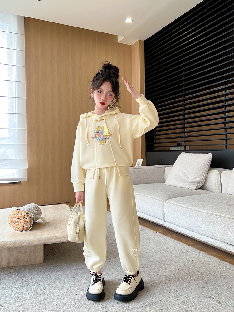 2024国风新款刺绣中式连帽女童时尚中国洋气儿童套装两件套