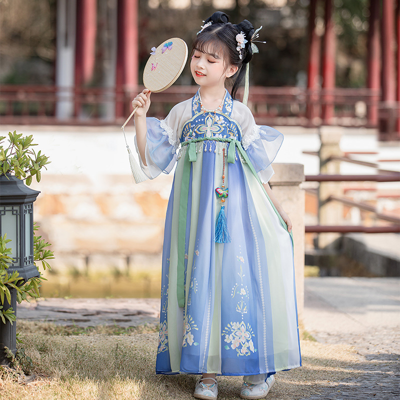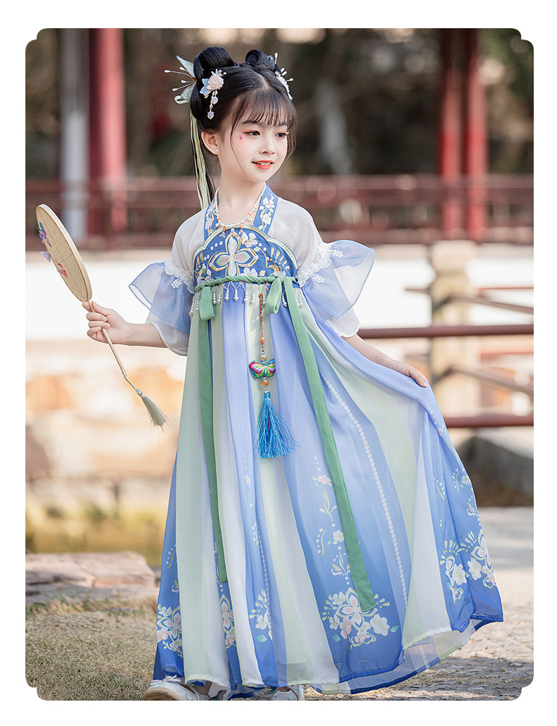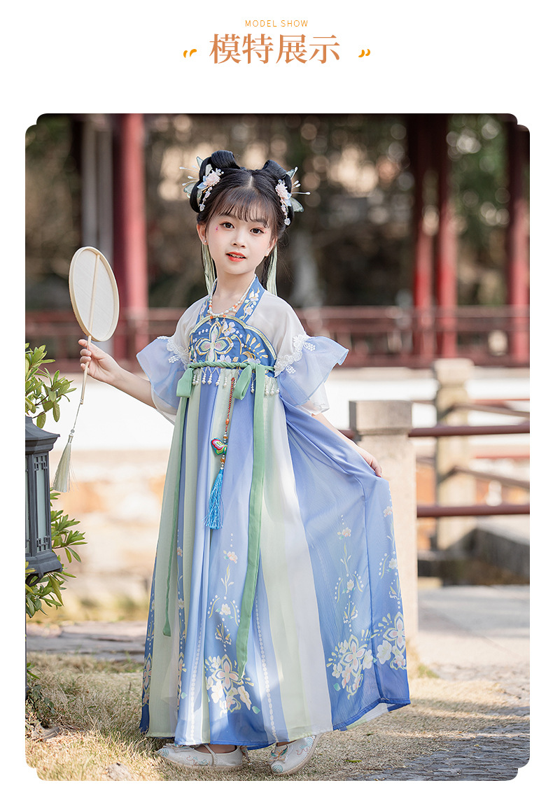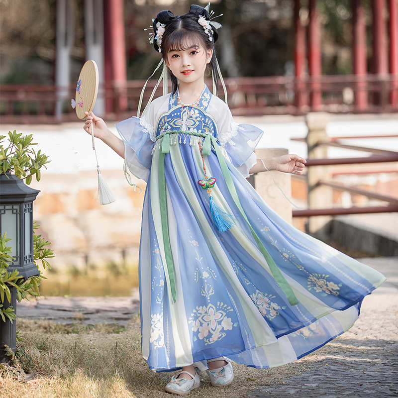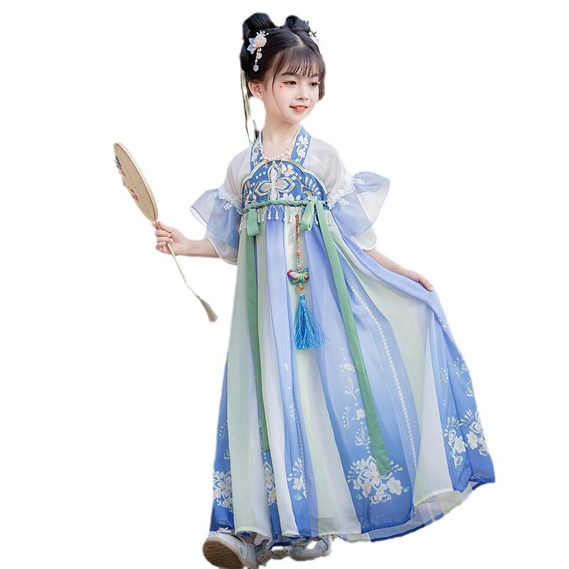 汉服女童夏季短袖儿童古装襦裙古风高端唐装中国风公主连衣裙批发