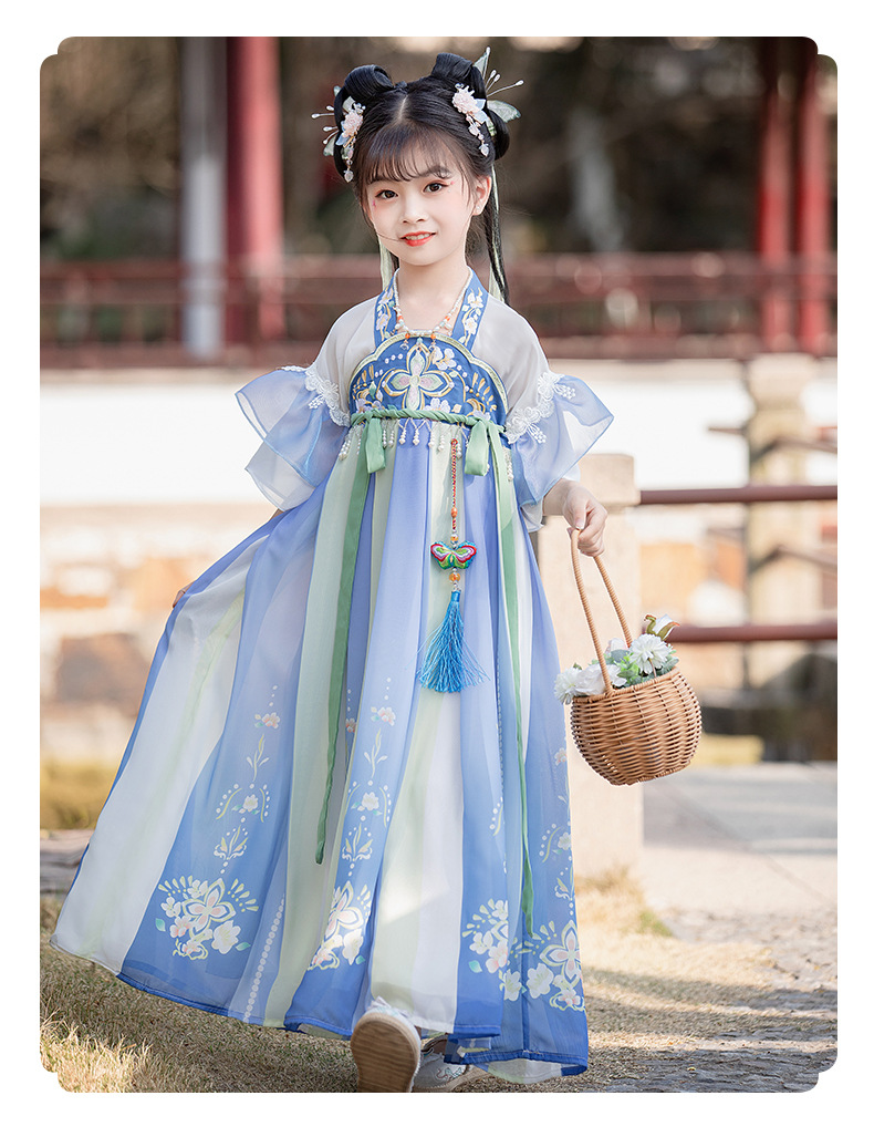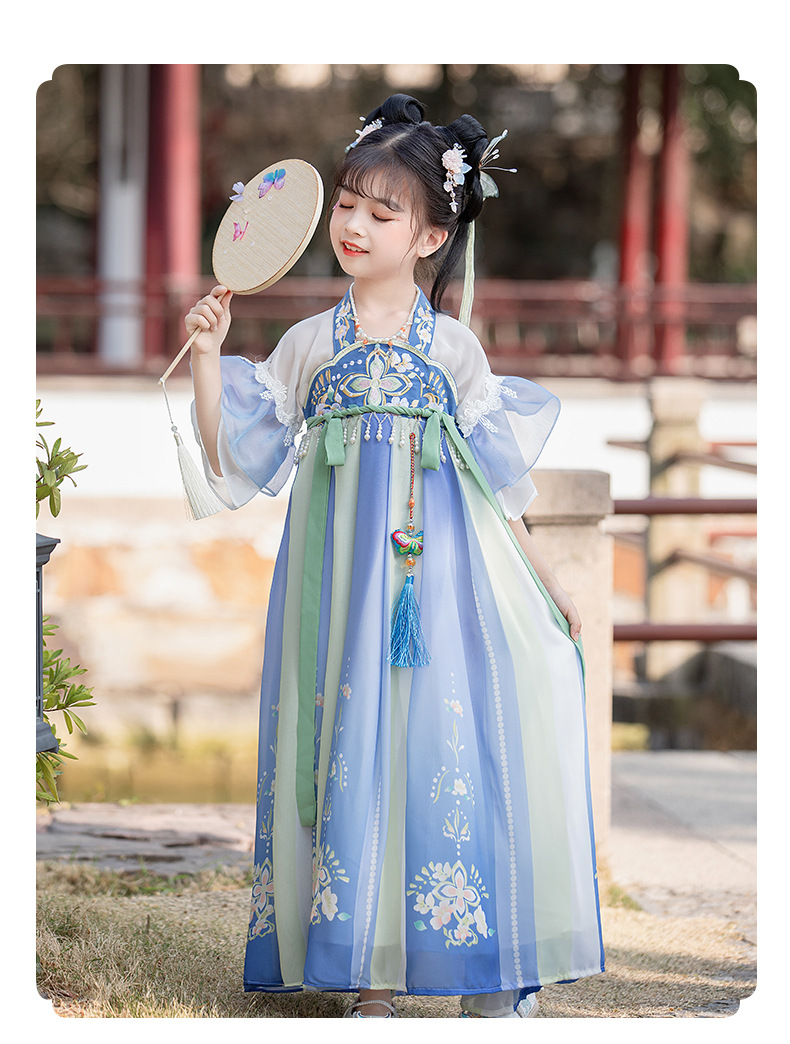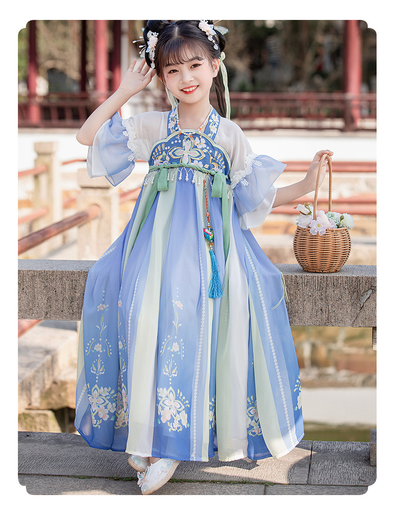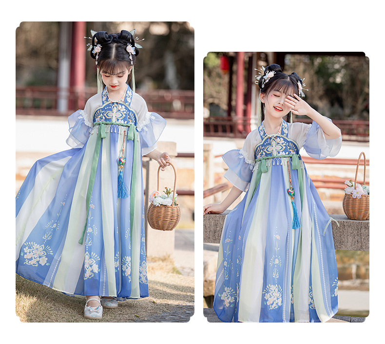 汉服女童夏季短袖儿童古装襦裙古风高端唐装中国风公主连衣裙批发
