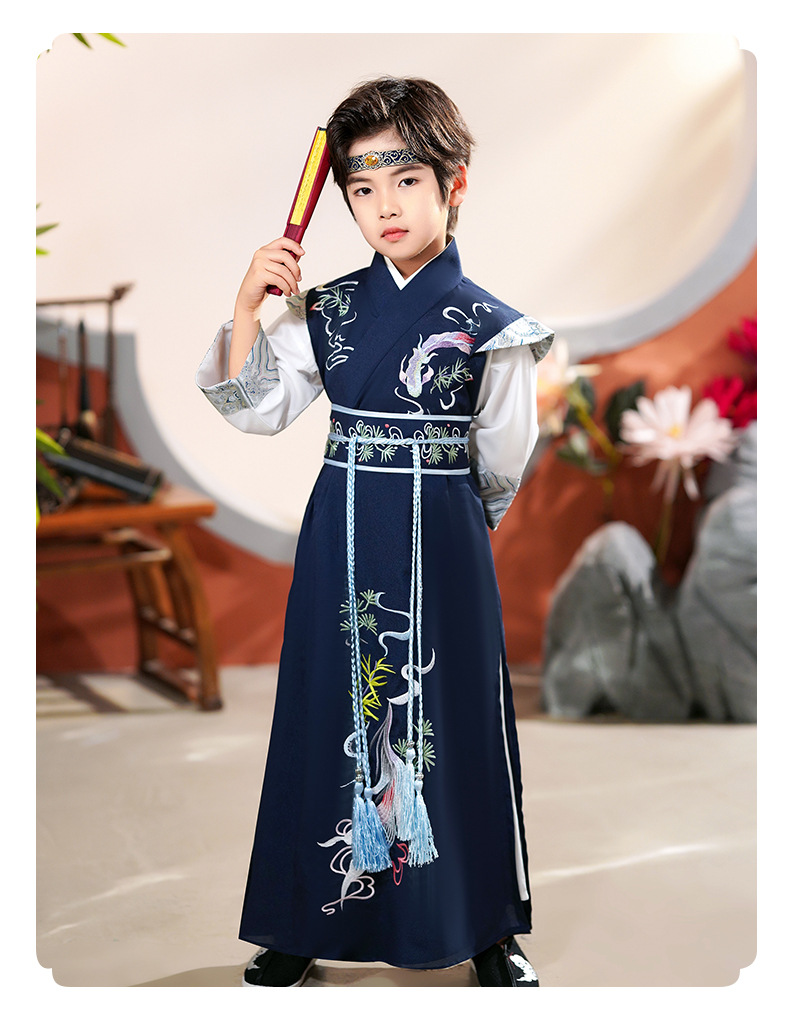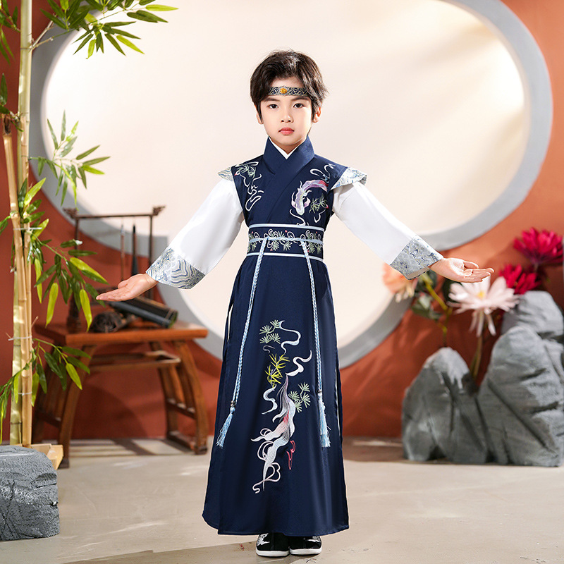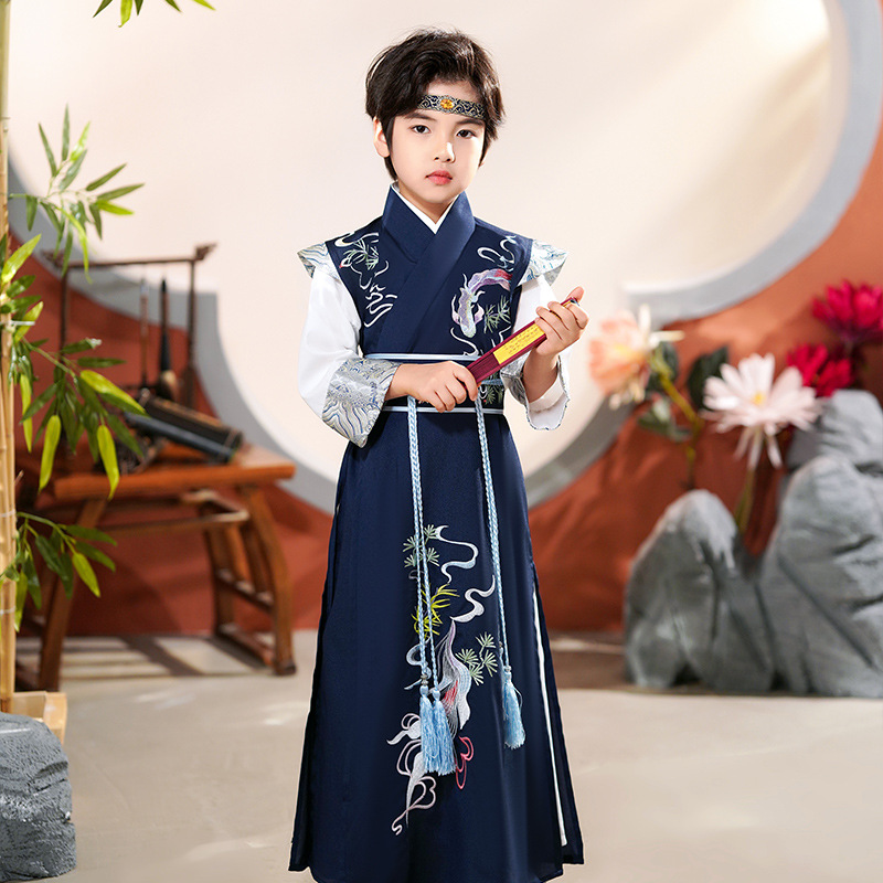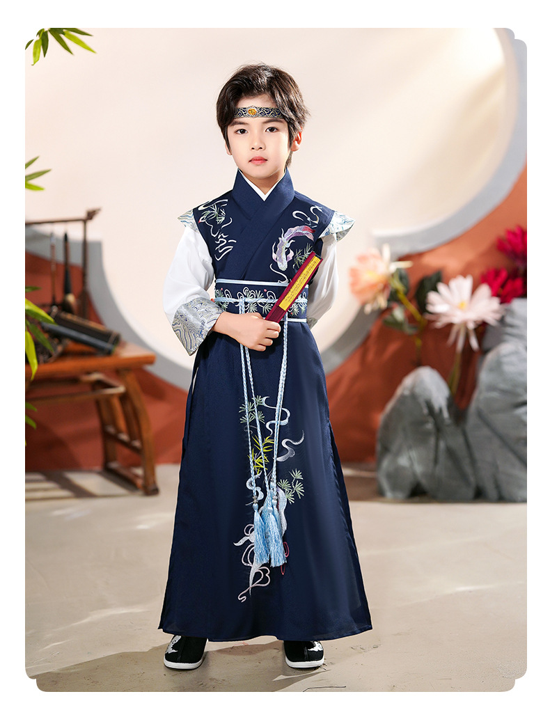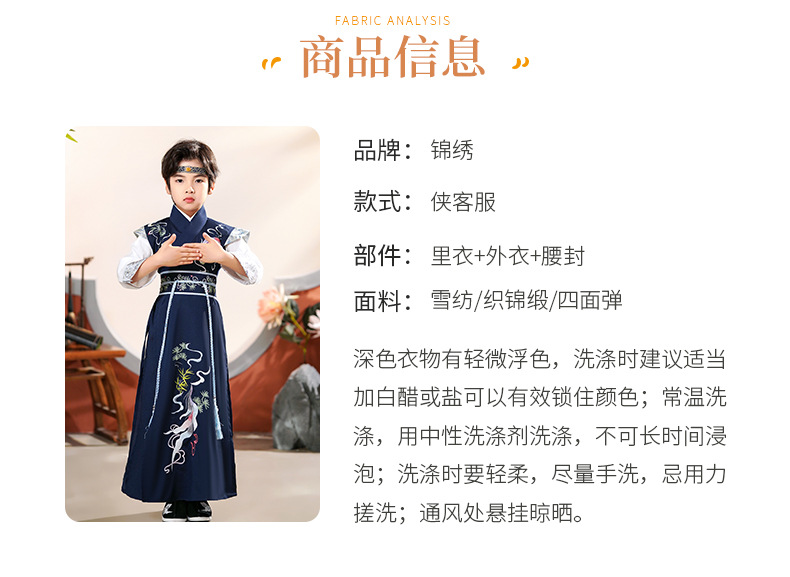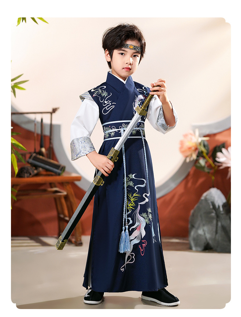 汉服男童2024年春季新款改良款儿童刺绣帅气侠客服套装演出服批发