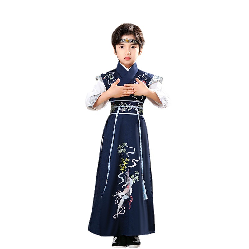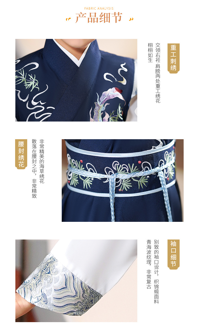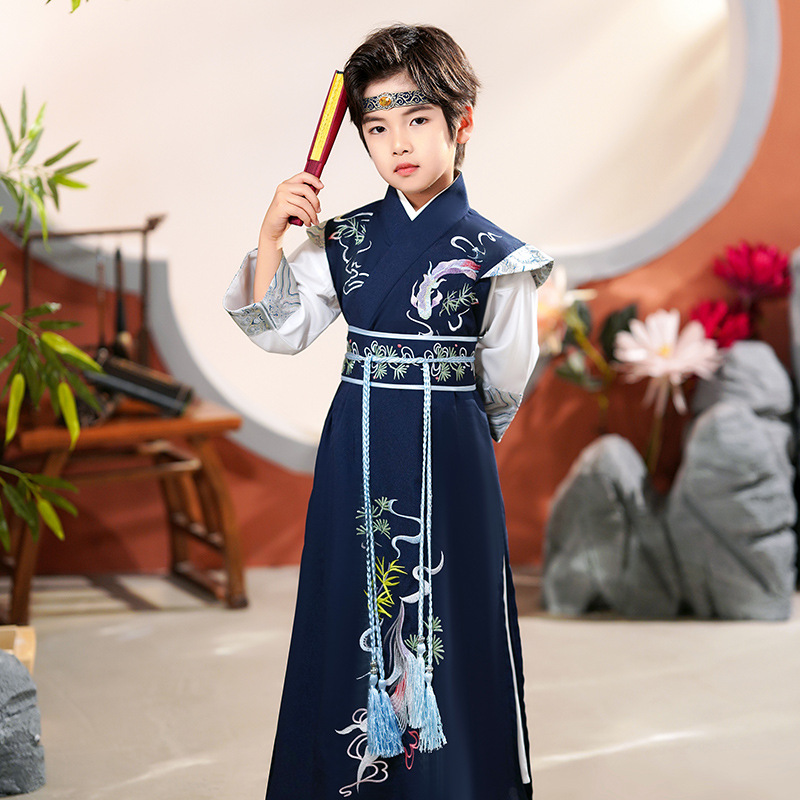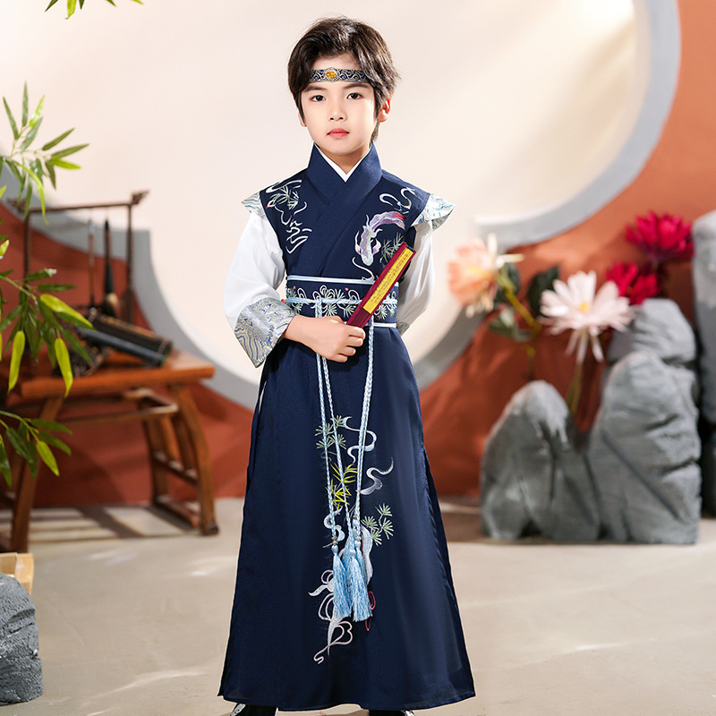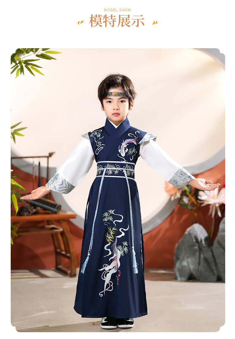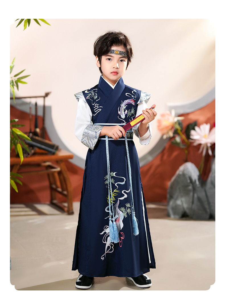 汉服男童2024年春季新款改良款儿童刺绣帅气侠客服套装演出服批发