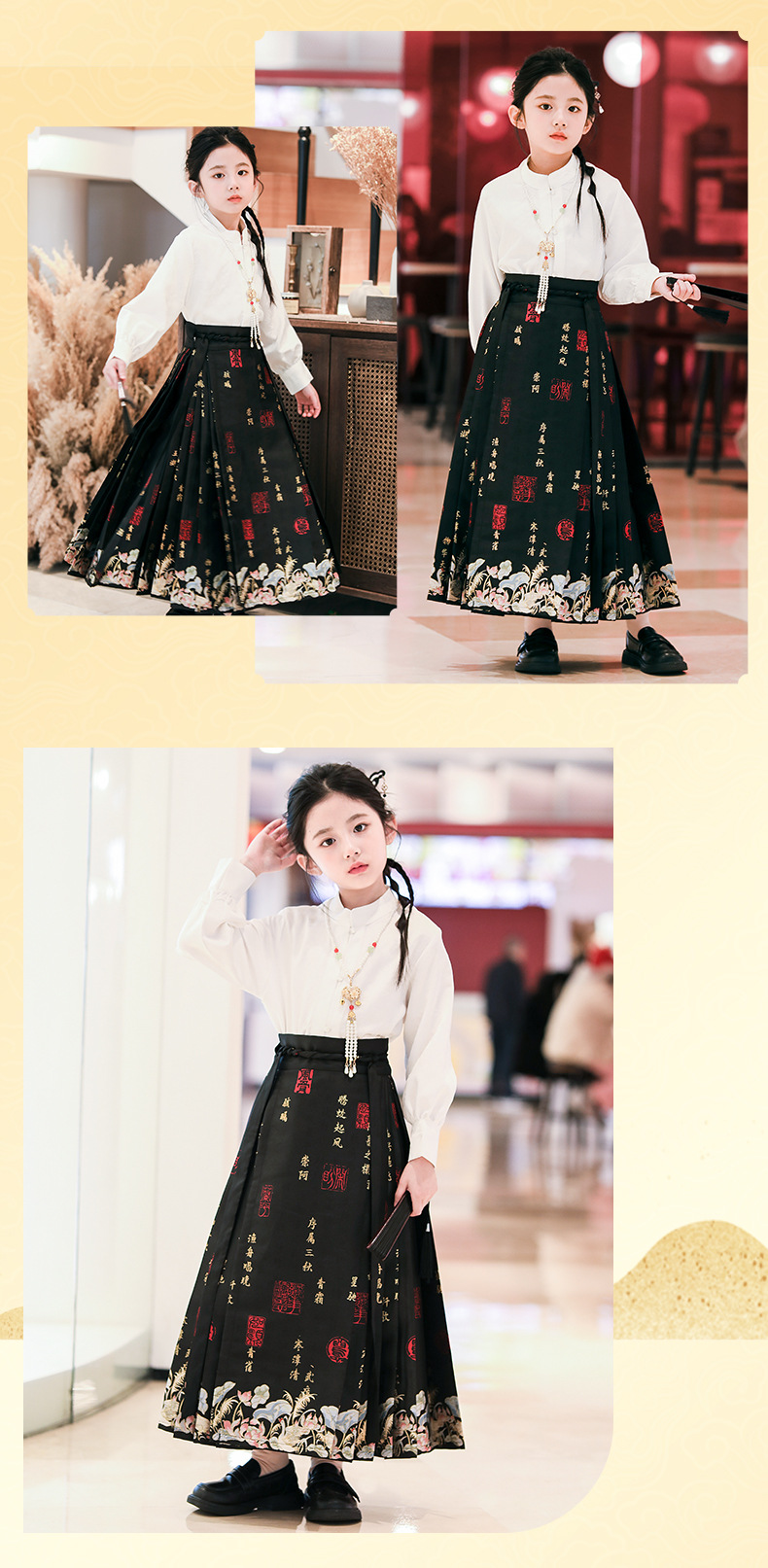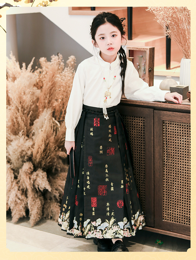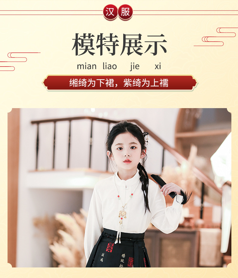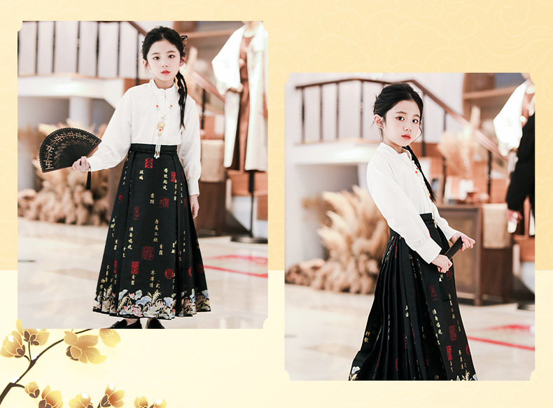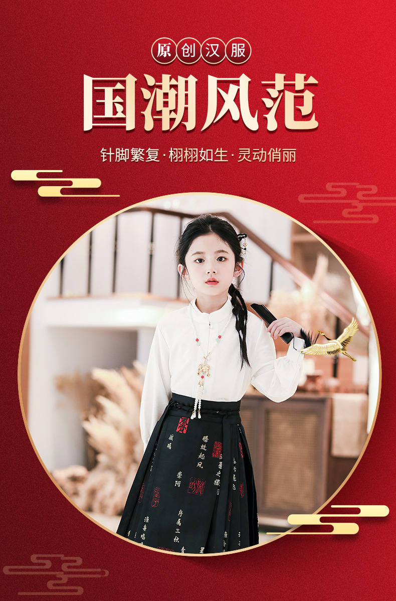 2024春秋新款高端女童汉服中国风唐装新中式马面裙古装演出服批发