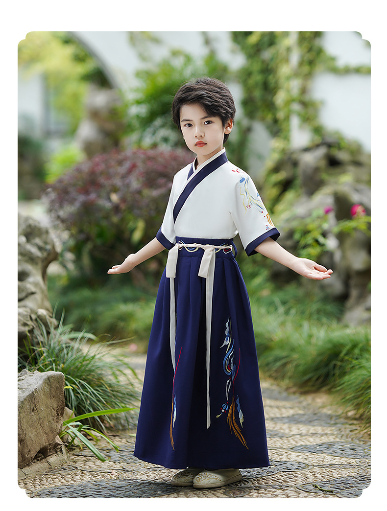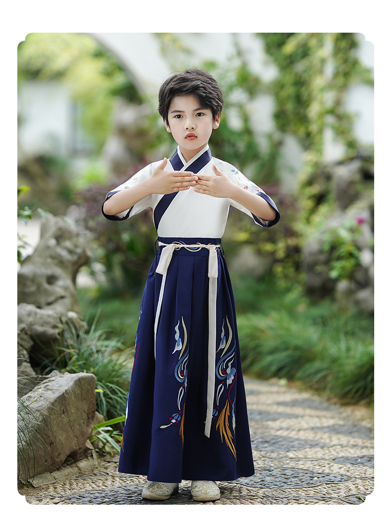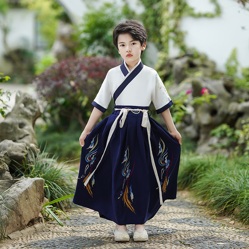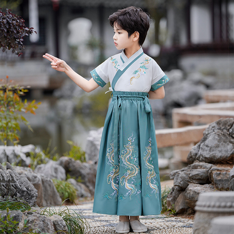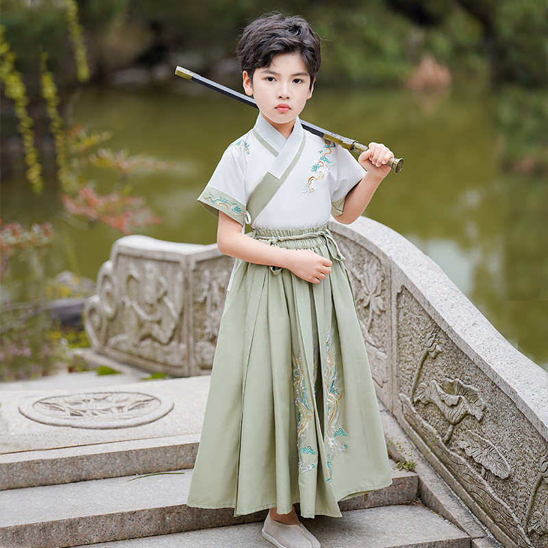 2024新款夏季汉服男童短袖儿童国学少爷古装演出服唐装中国风批发