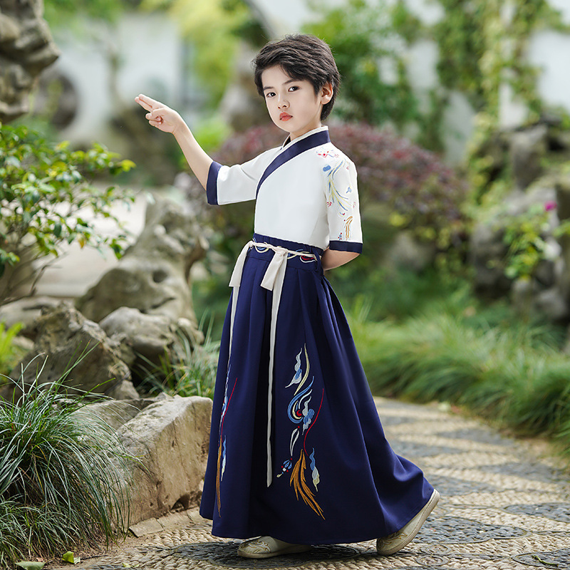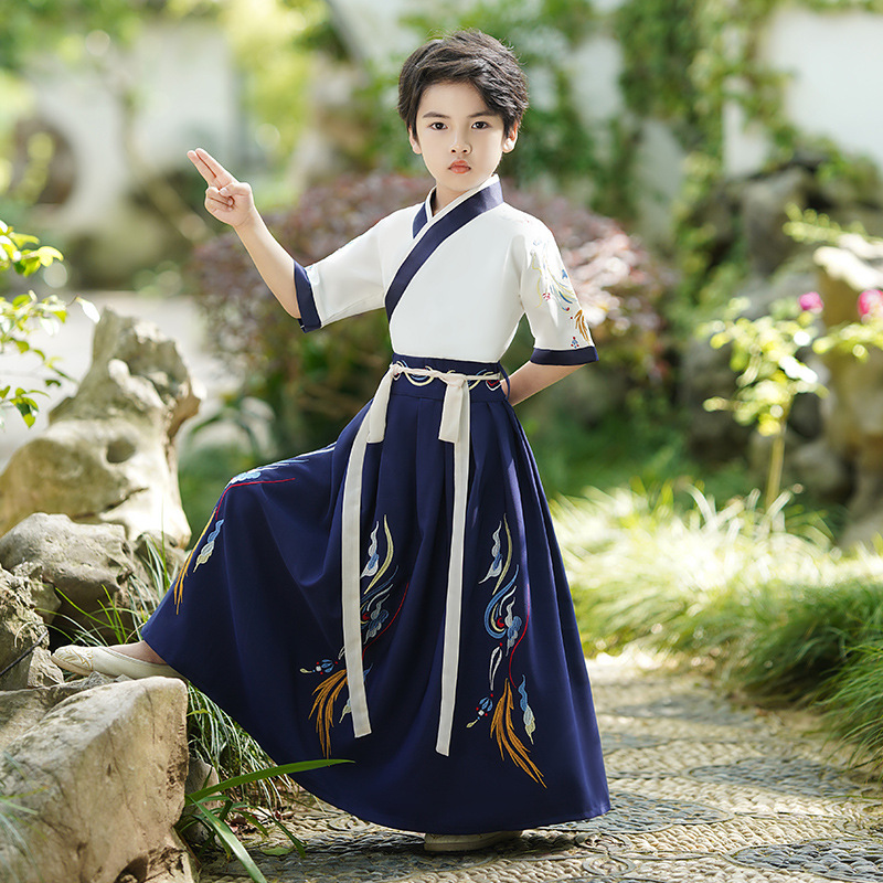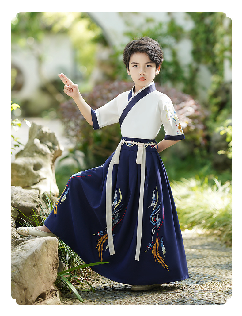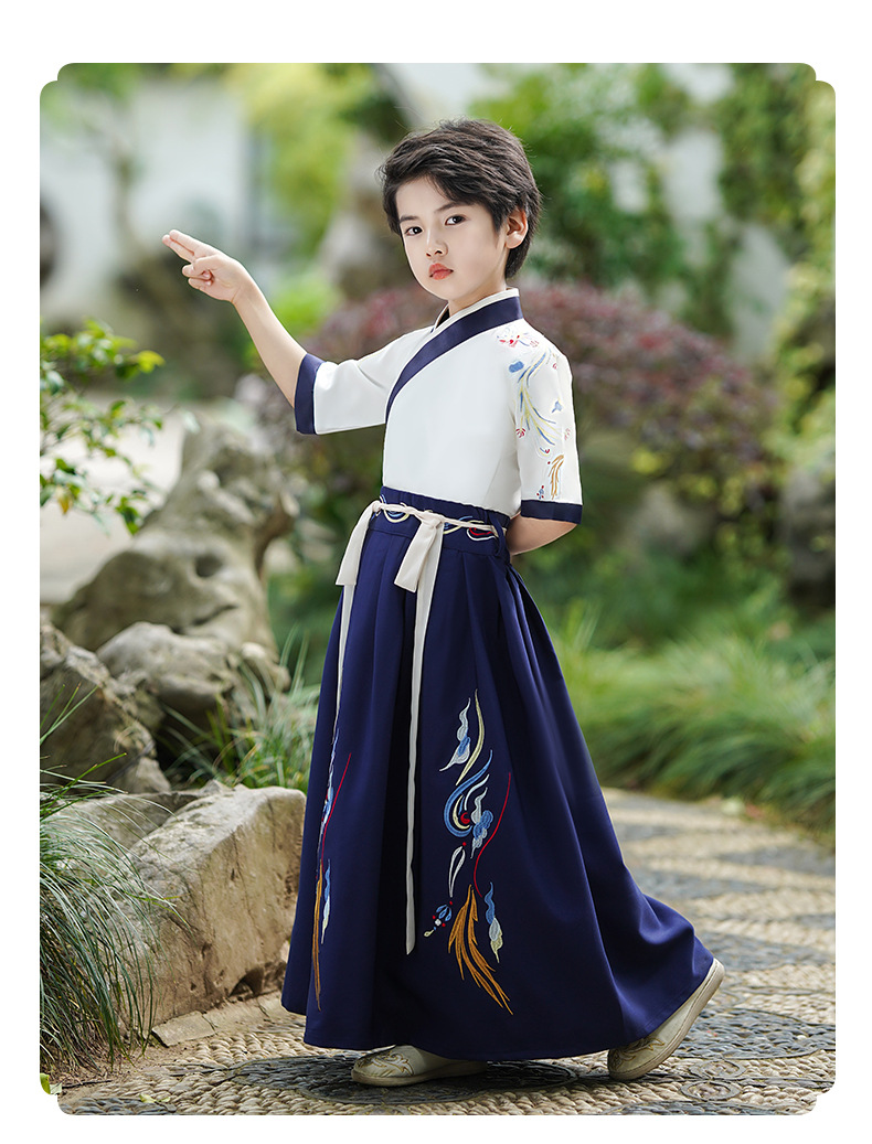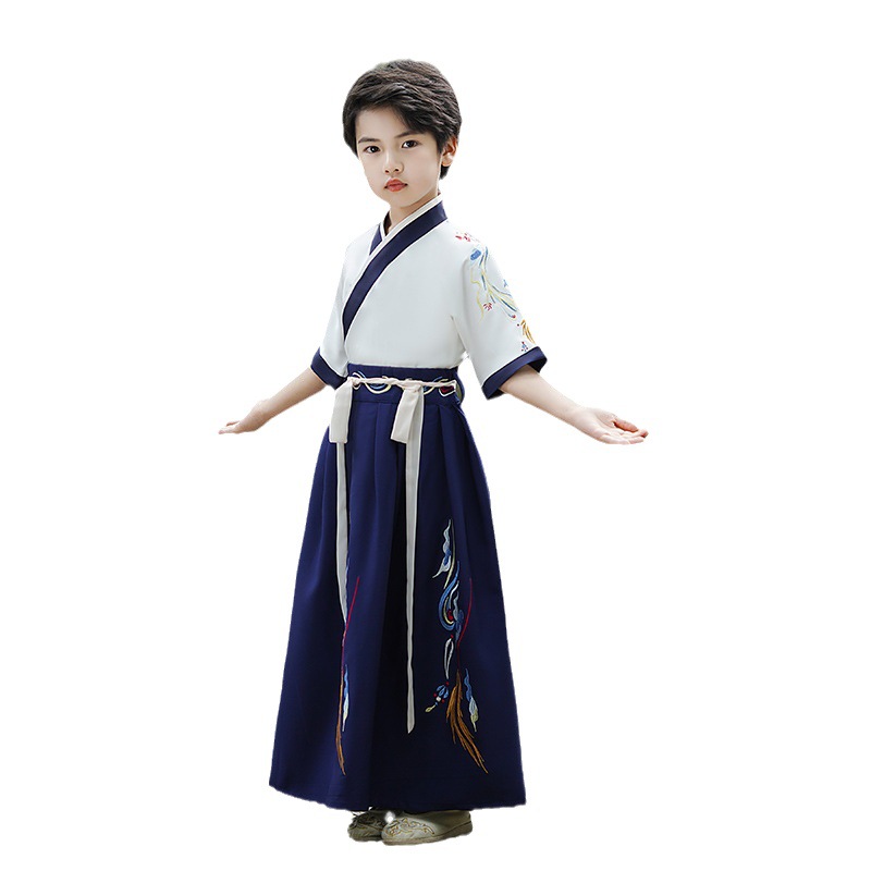 2024新款夏季汉服男童短袖儿童国学少爷古装演出服唐装中国风批发