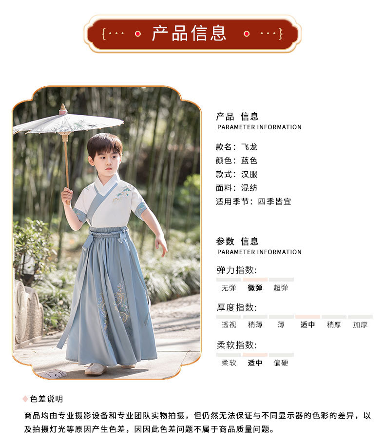 男童汉服夏季薄款2024新款中国风儿童古装唐装古风演出服套装批发