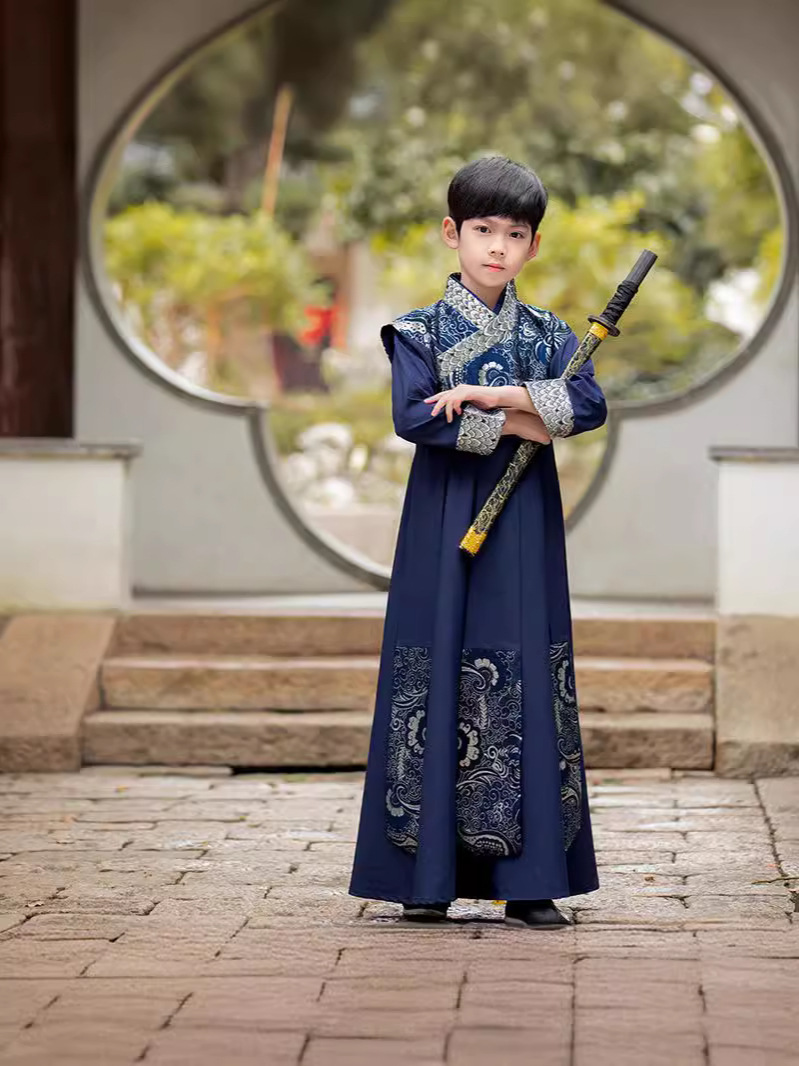 2024新款汉服男童春秋唐装儿童古装中国风帅气武侠古风演出服批发