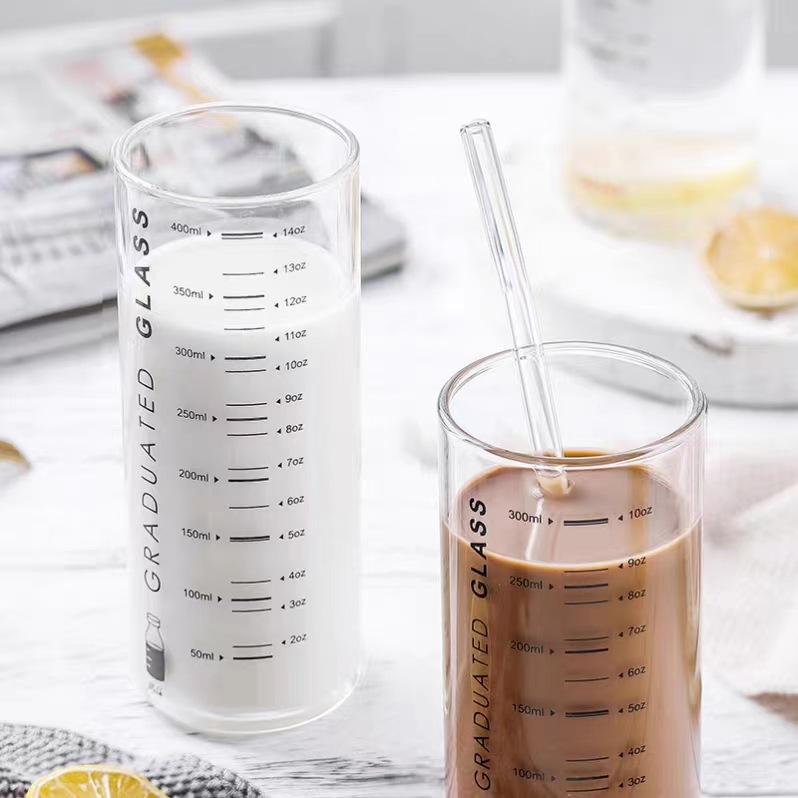 牛奶杯儿童泡奶粉早餐水杯喝奶杯子带刻度玻璃杯家用量杯男女成人