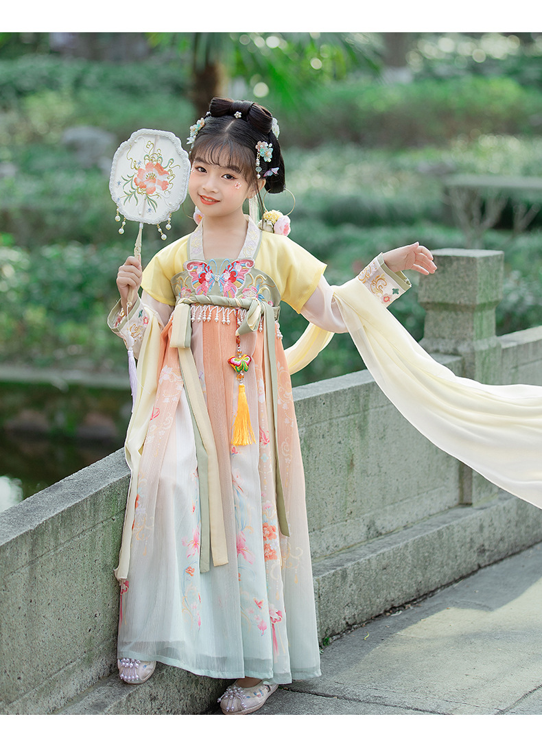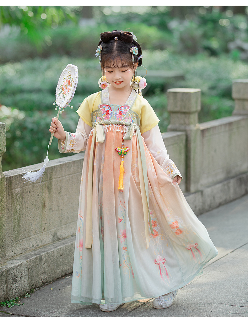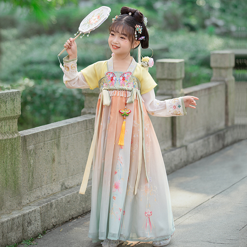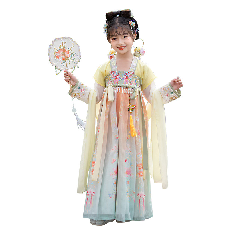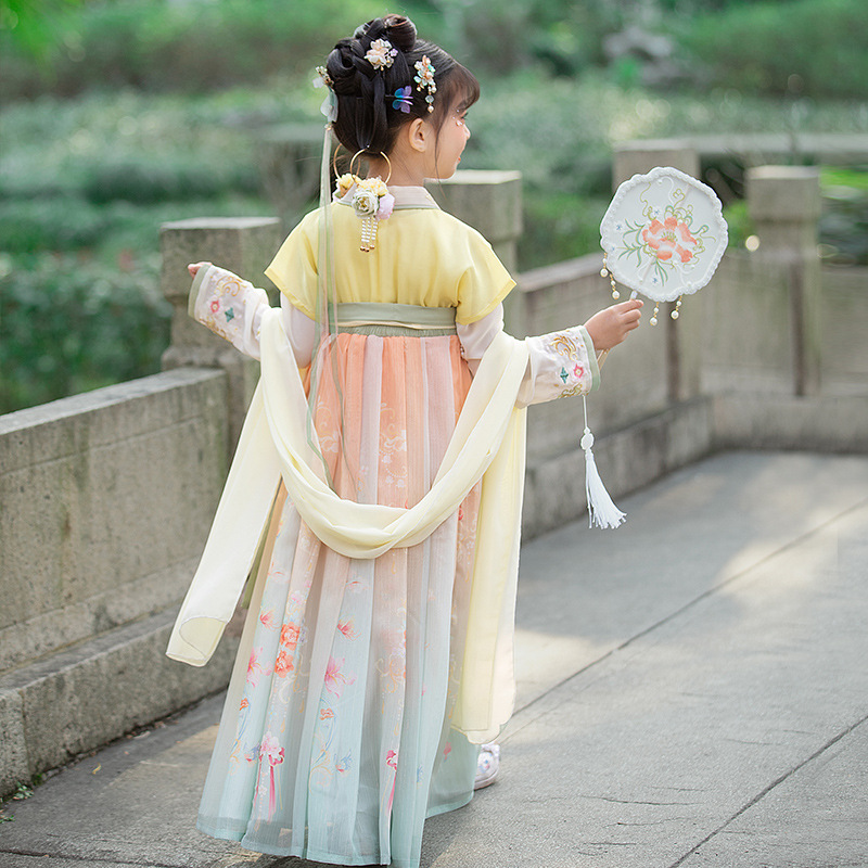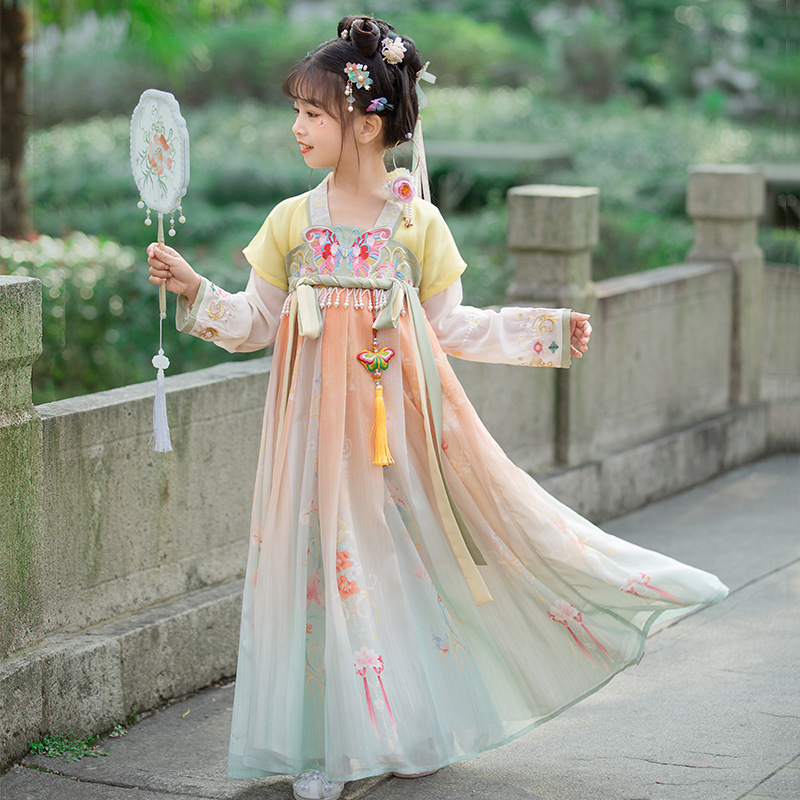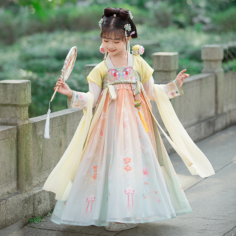 汉服女童2023夏款绣花齐胸襦裙小女孩超仙古风儿童古装连衣裙批发