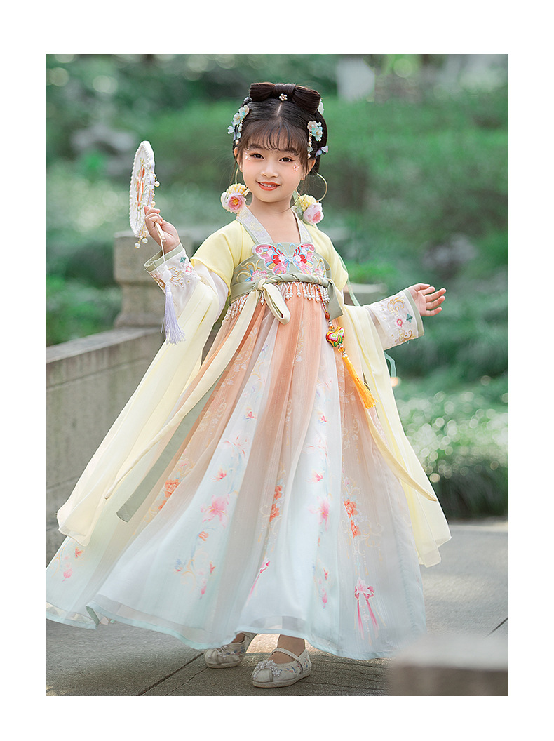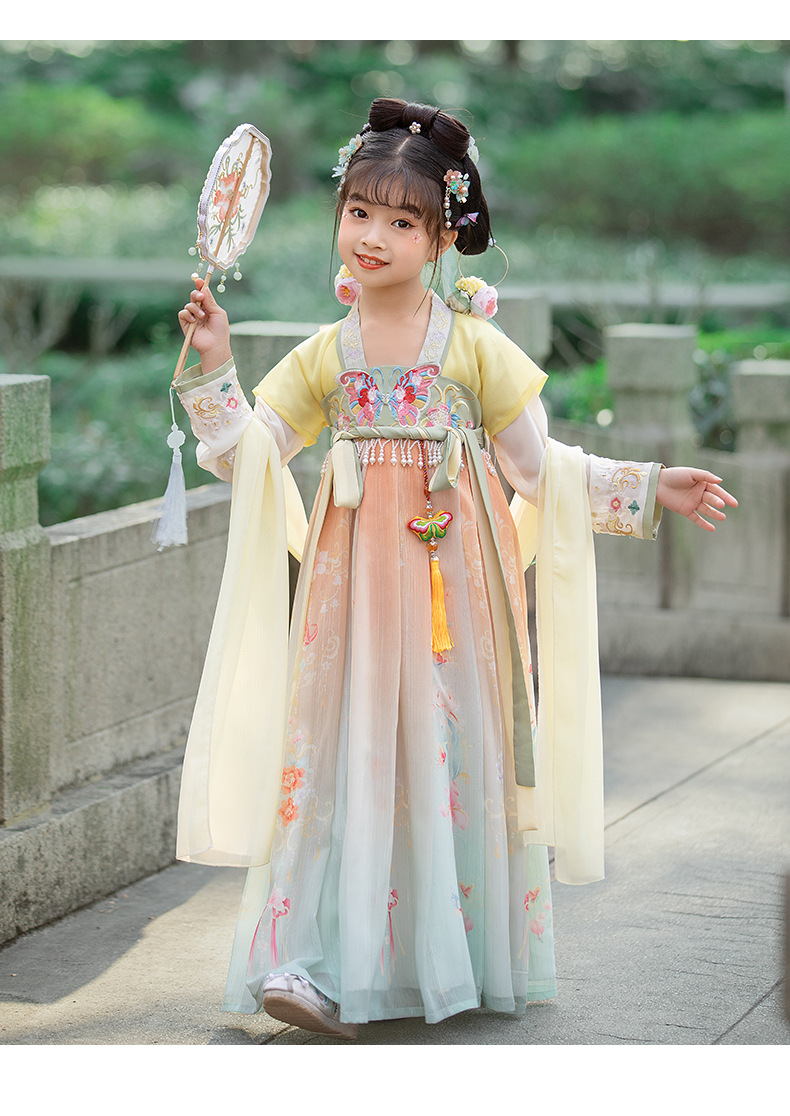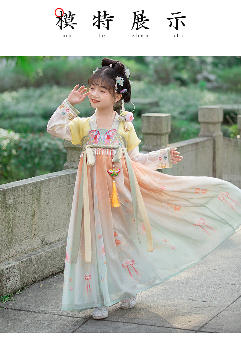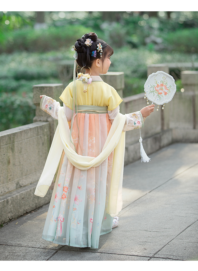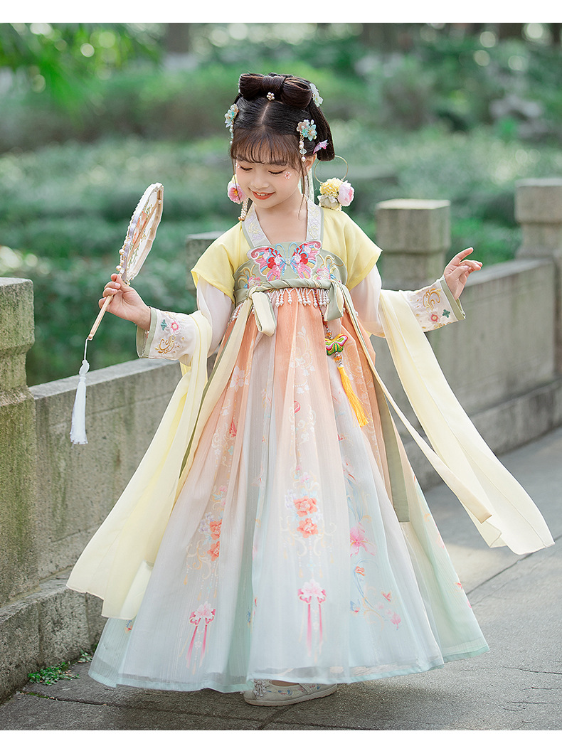 汉服女童2023夏款绣花齐胸襦裙小女孩超仙古风儿童古装连衣裙批发