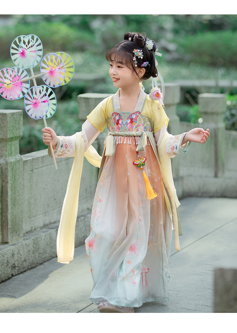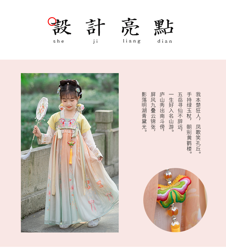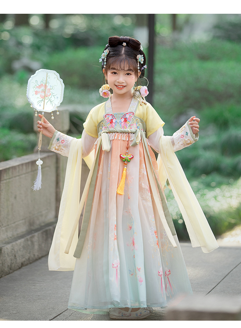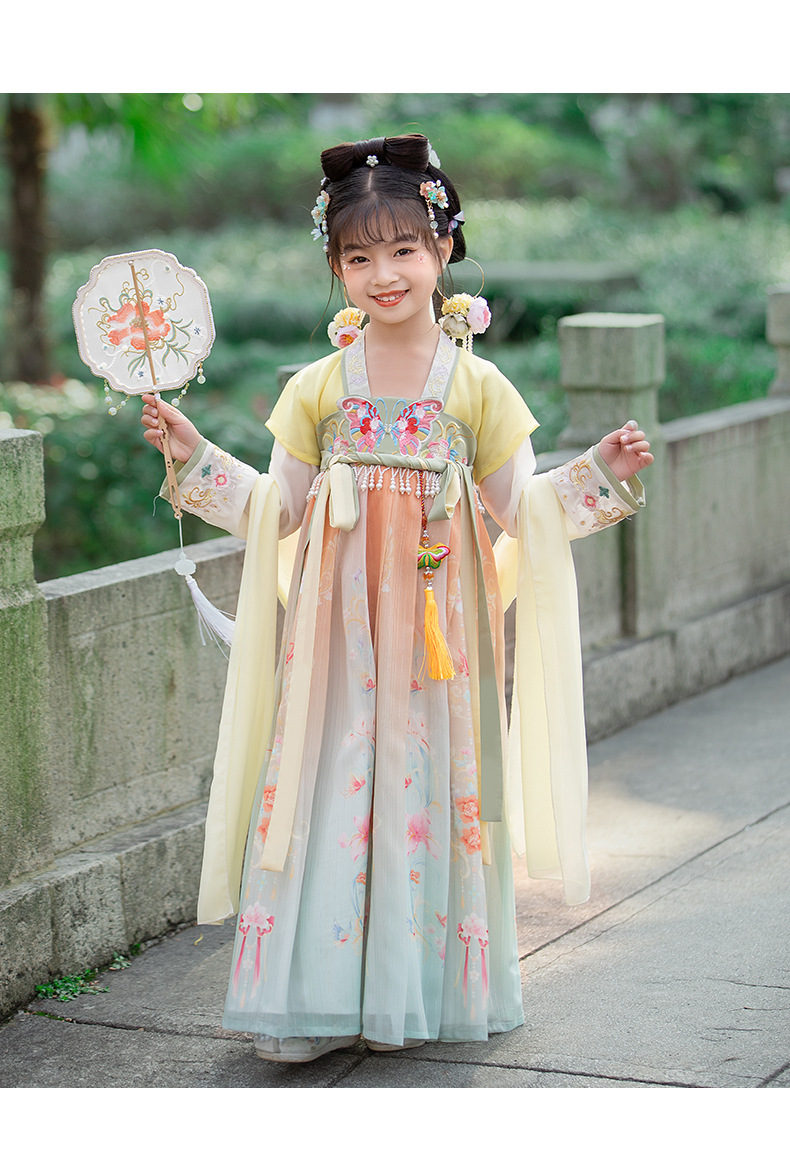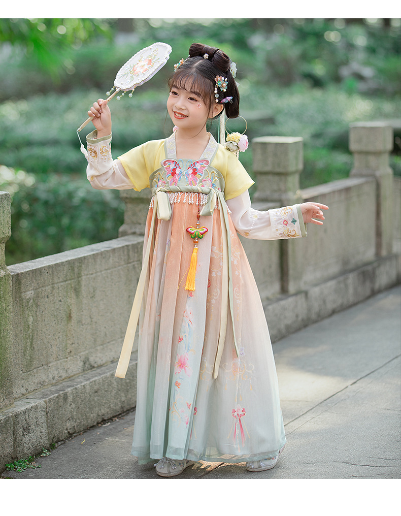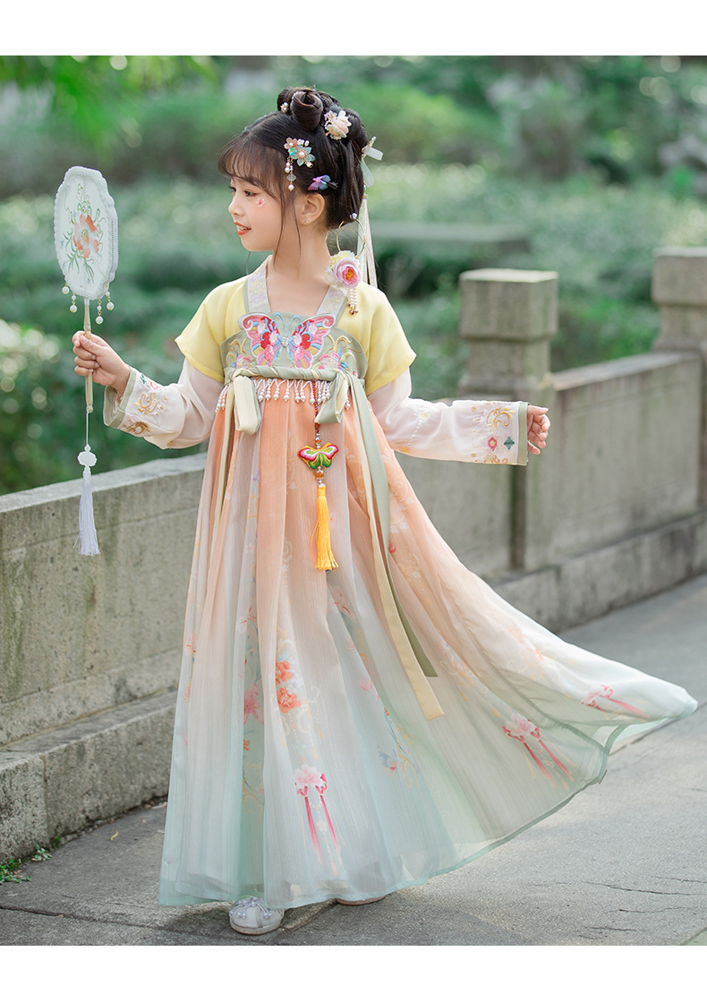 汉服女童2023夏款绣花齐胸襦裙小女孩超仙古风儿童古装连衣裙批发
