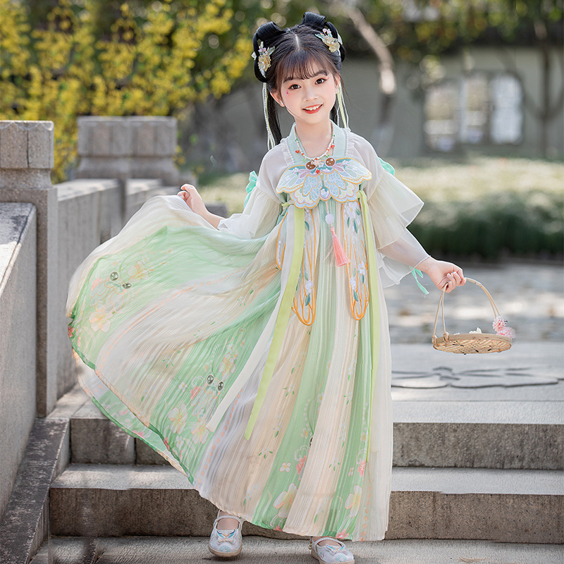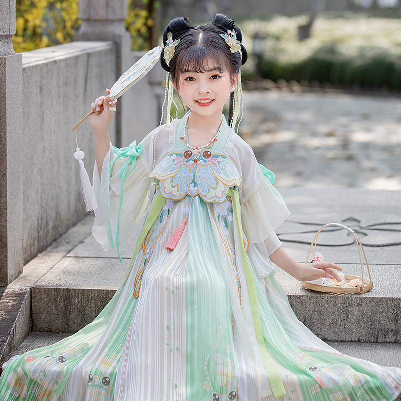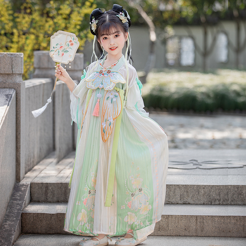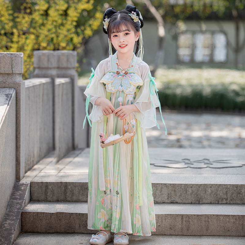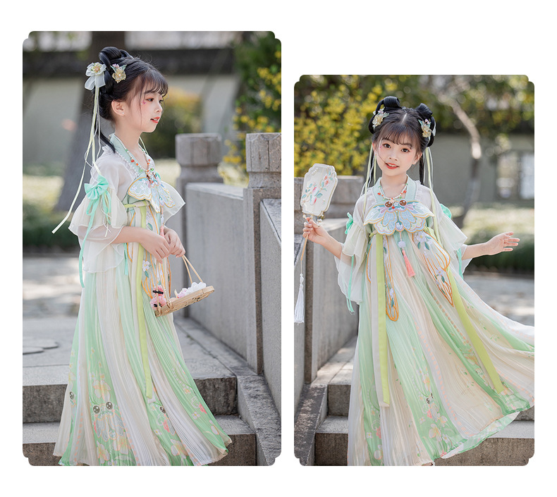 汉服女童短袖新款襦裙古风超仙原创儿童古装绣花改良中国风夏批发