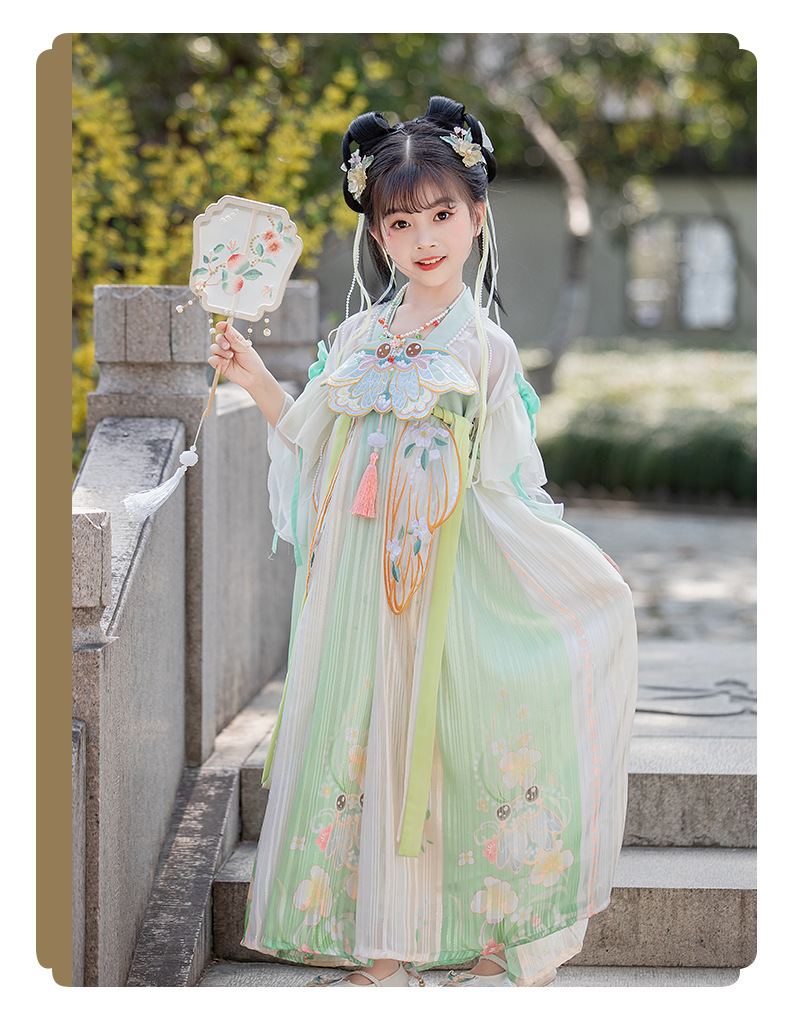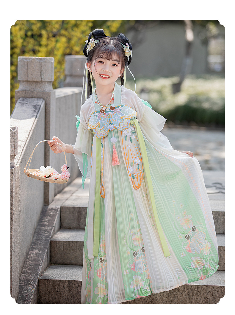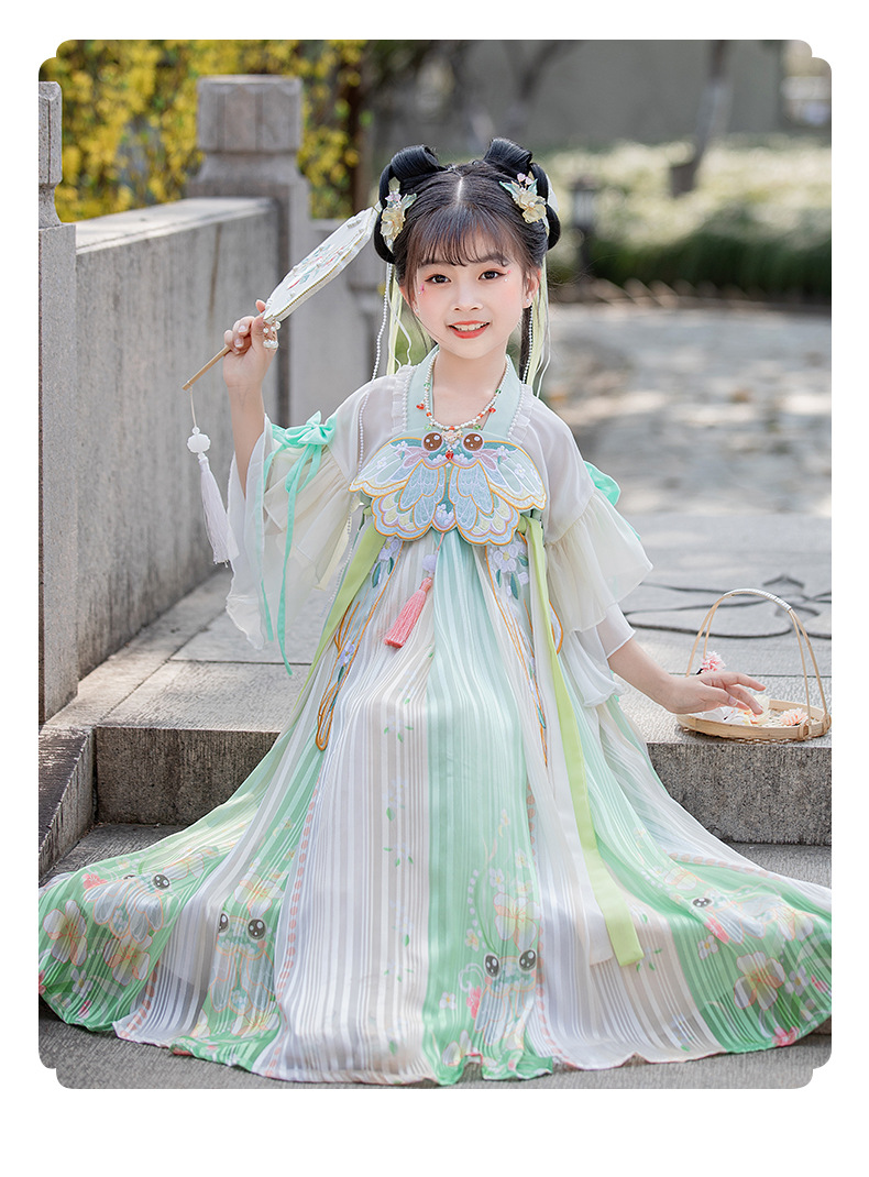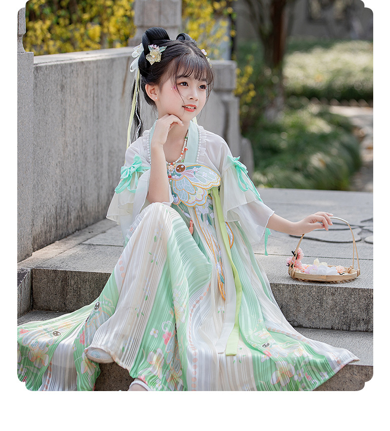 汉服女童短袖新款襦裙古风超仙原创儿童古装绣花改良中国风夏批发