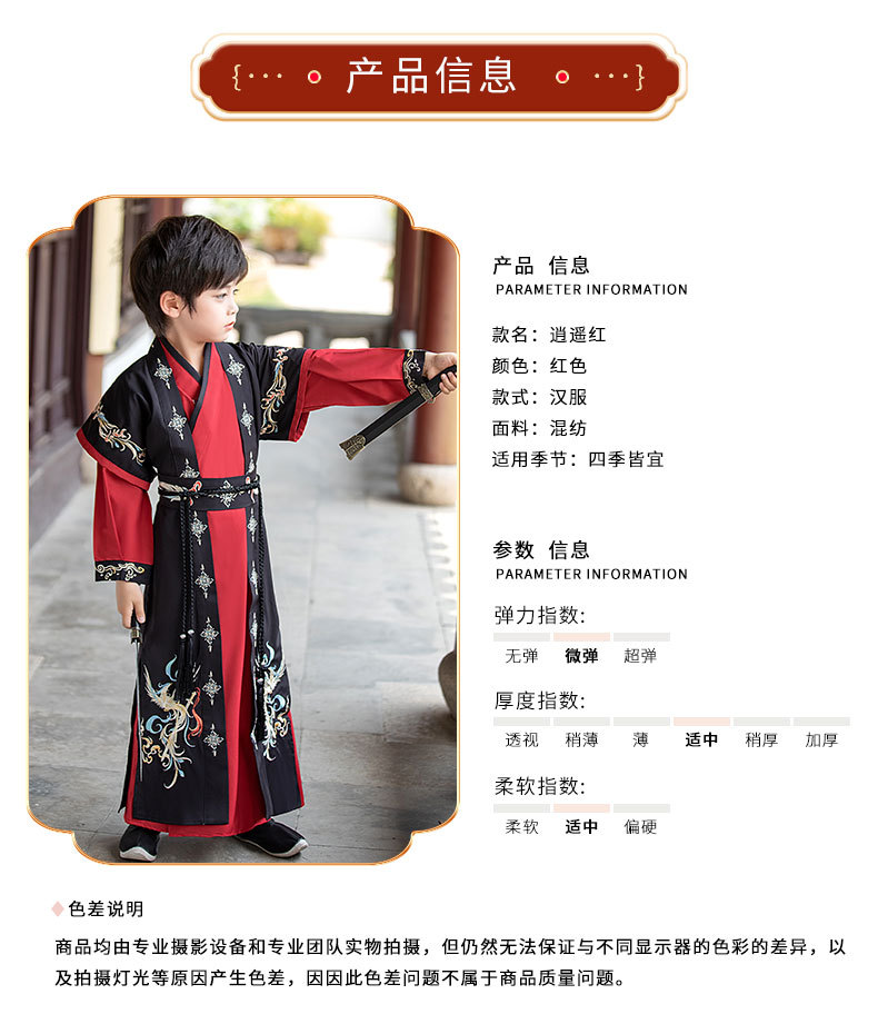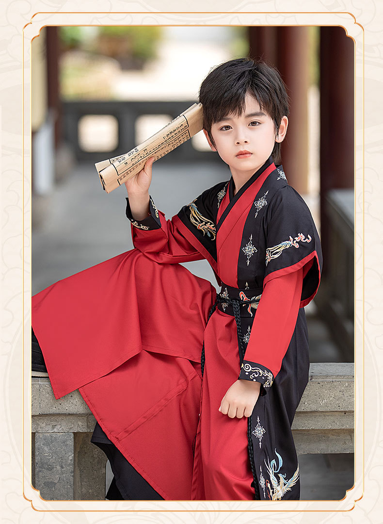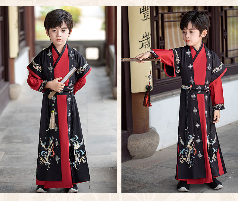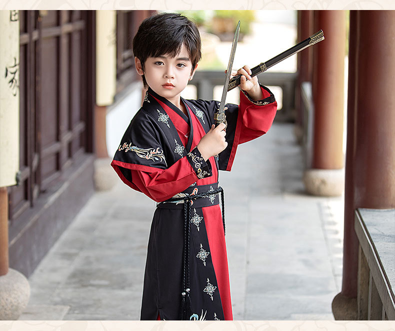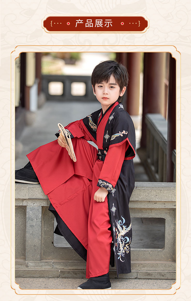 2024春秋新款儿童汉服中国风少爷国学套装帅气演出服男童古装批发