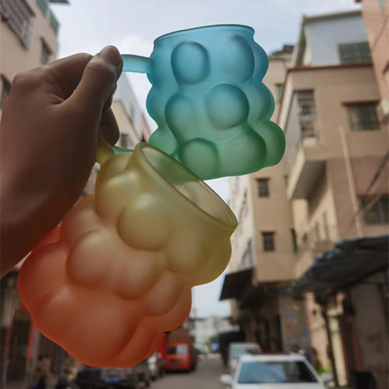 出口ins小众设计彩色玻璃杯 高颜值高硼硅玻璃水杯咖啡牛奶杯