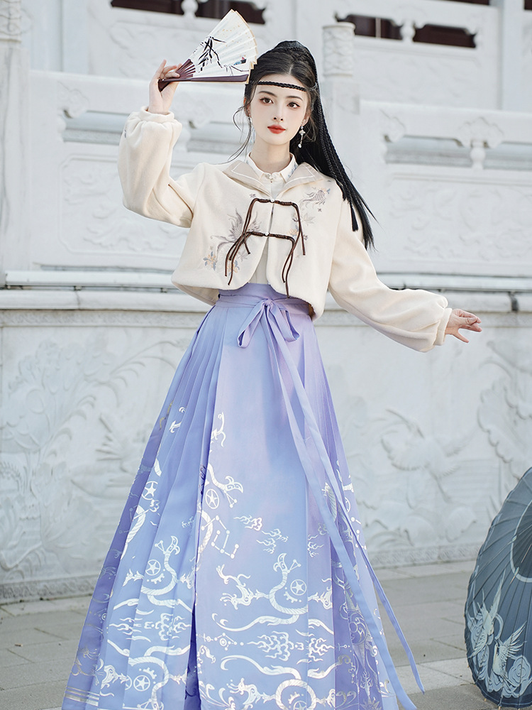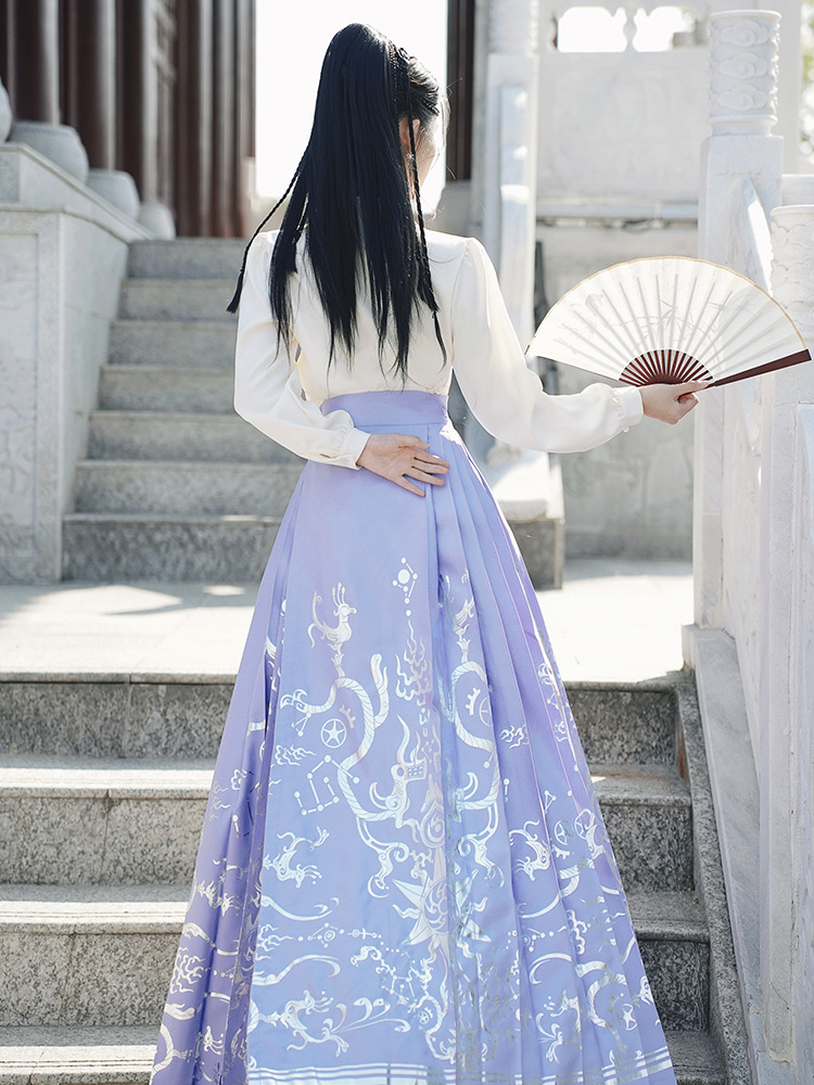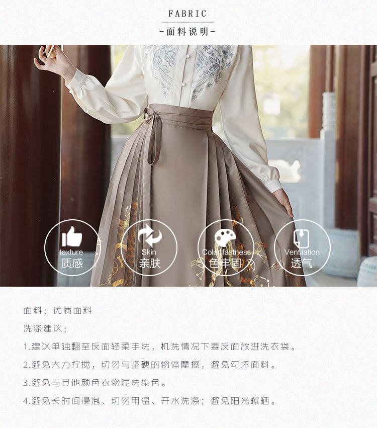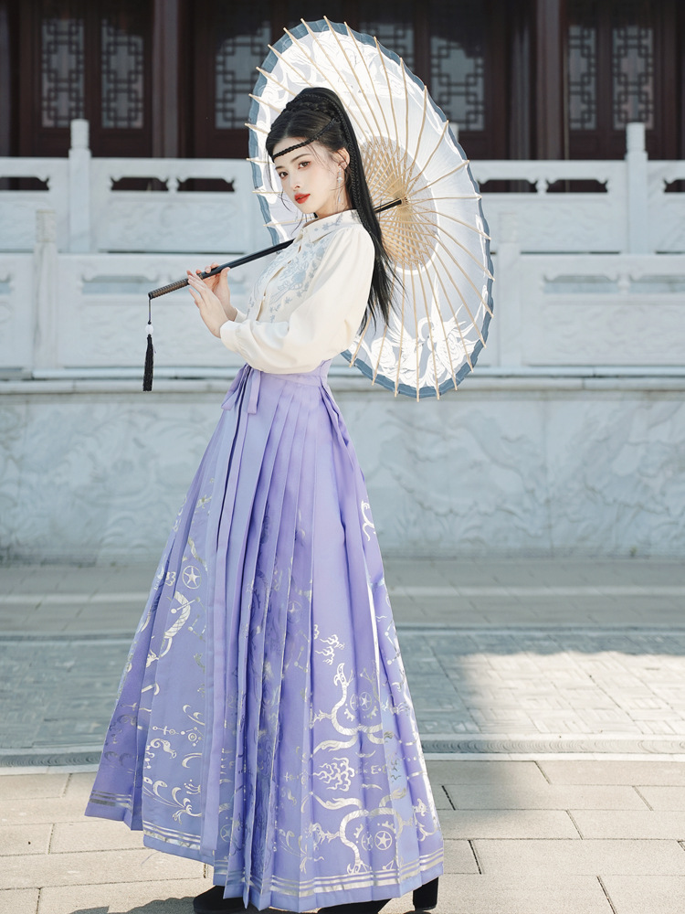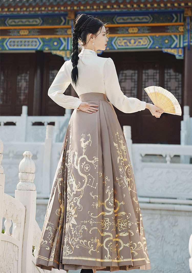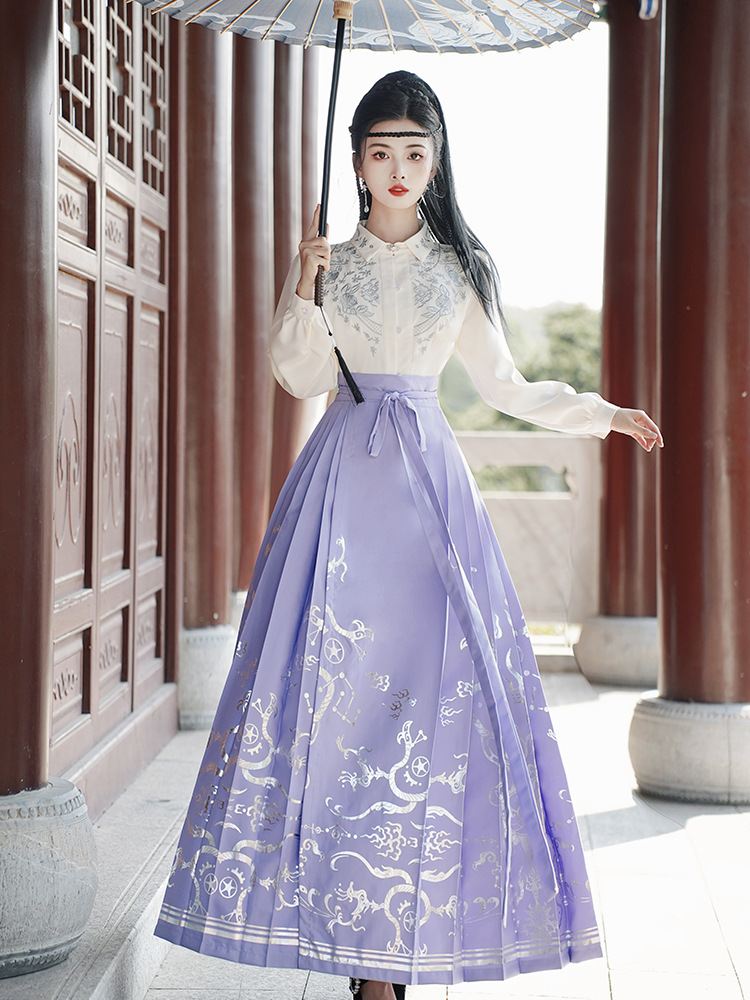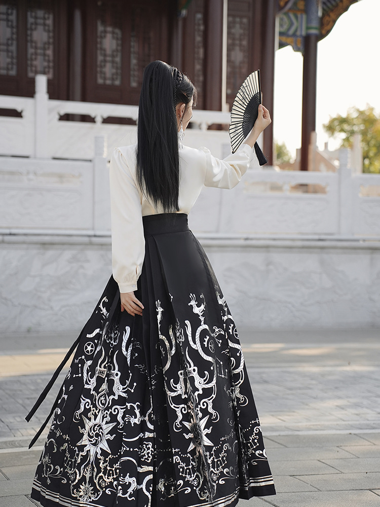 中国风女装长袖绣花衬衣优雅气质烫金马面裙改良新中式日常套装女