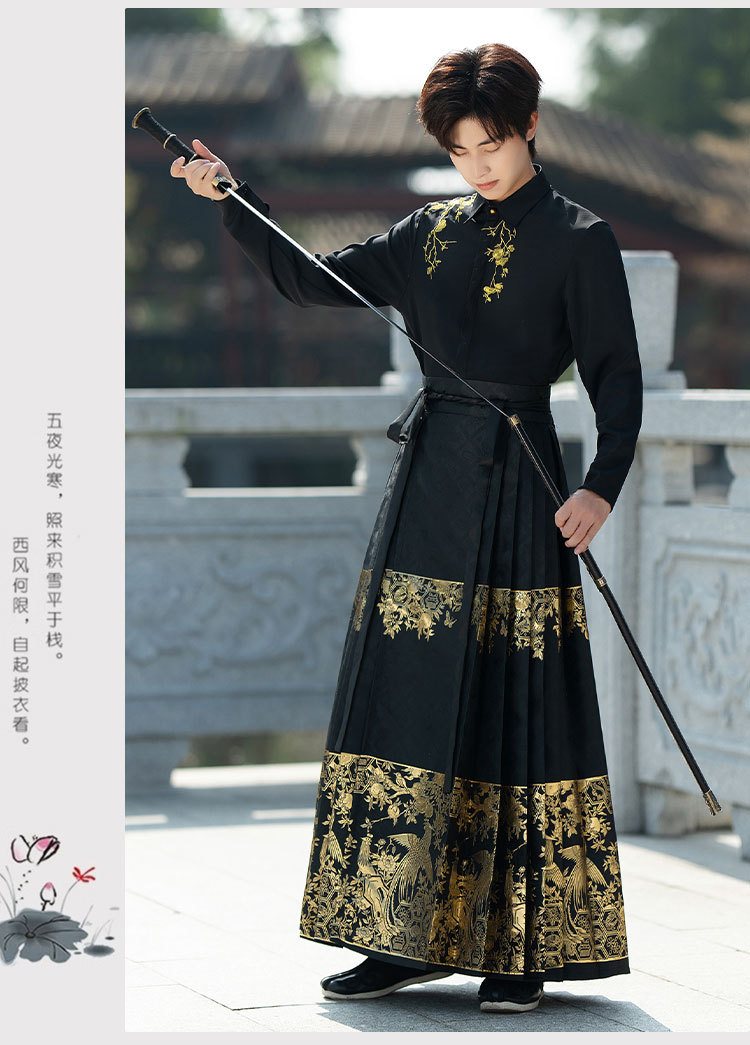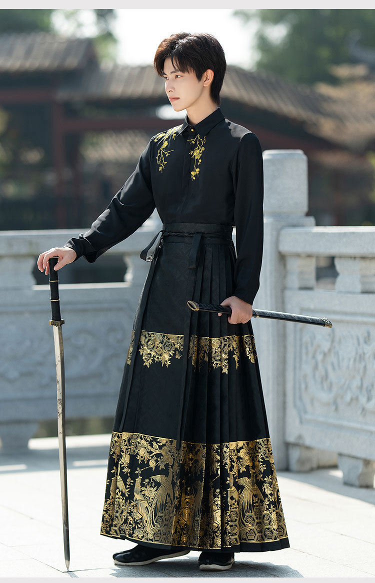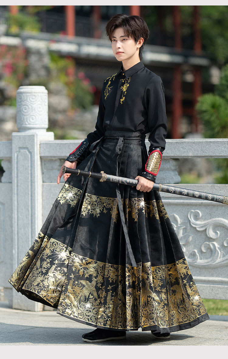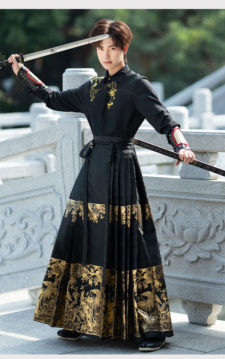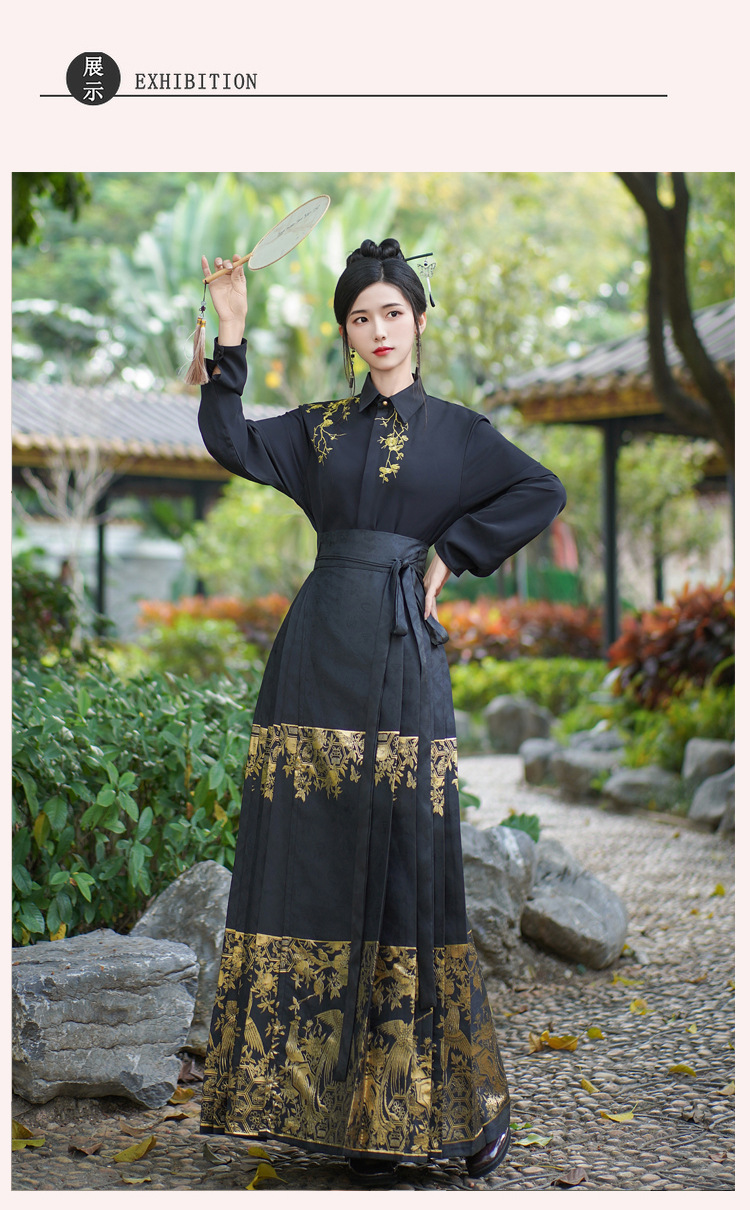中国风明制织金马面裙新中式汉服男女同款凤凰锦绣古风大码套装春