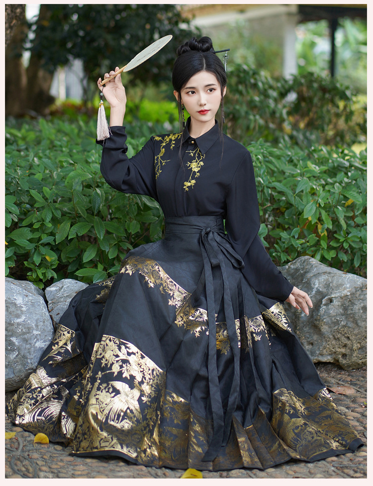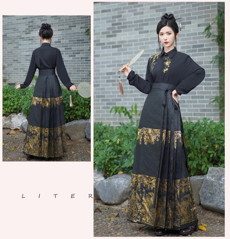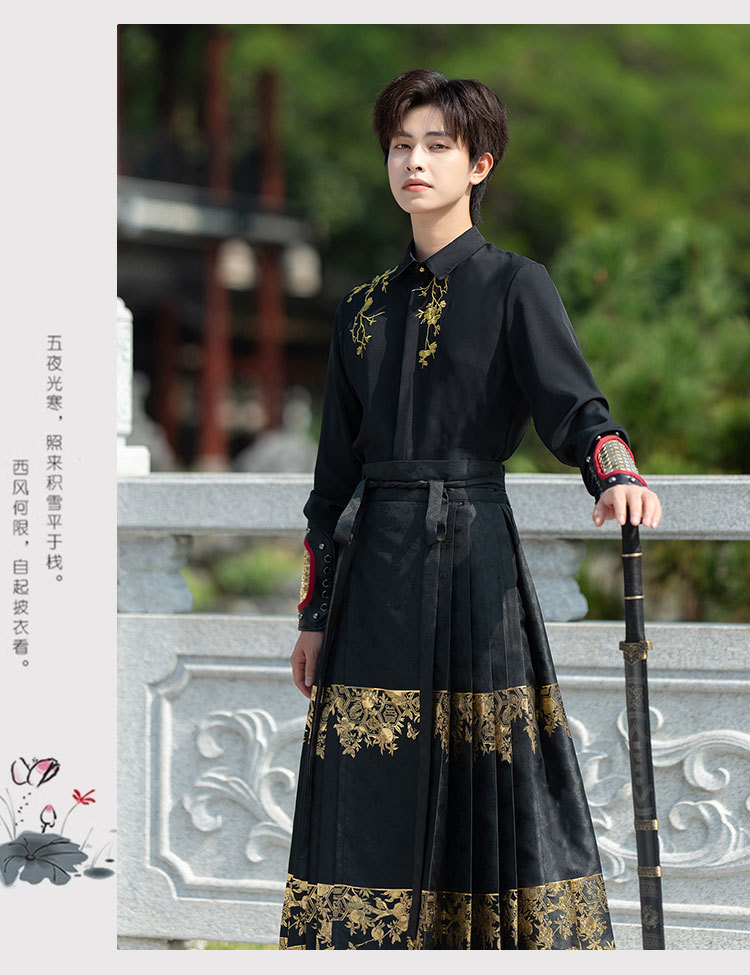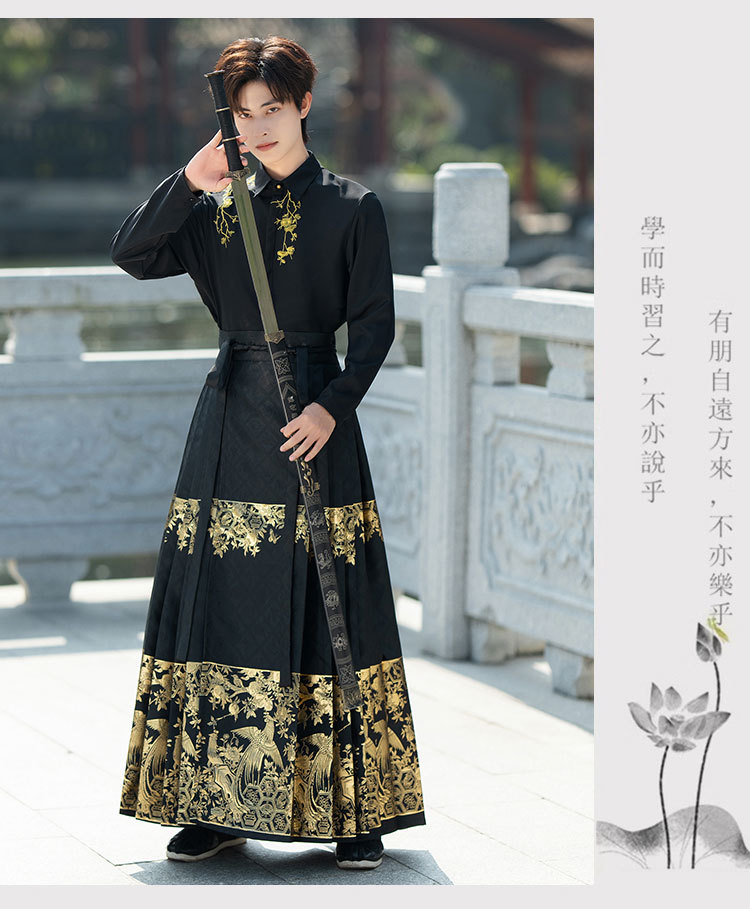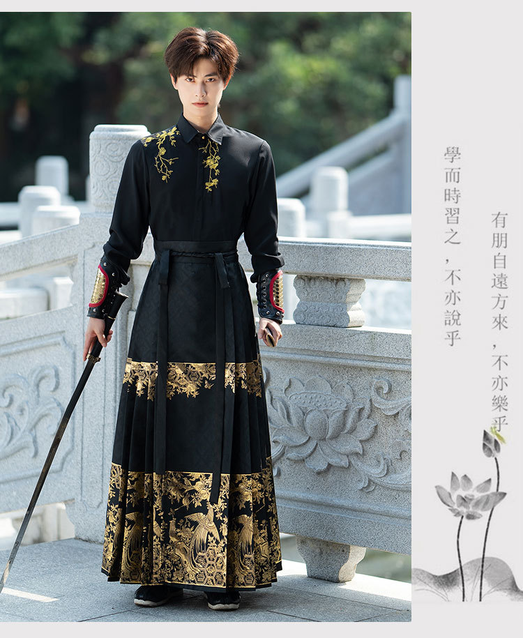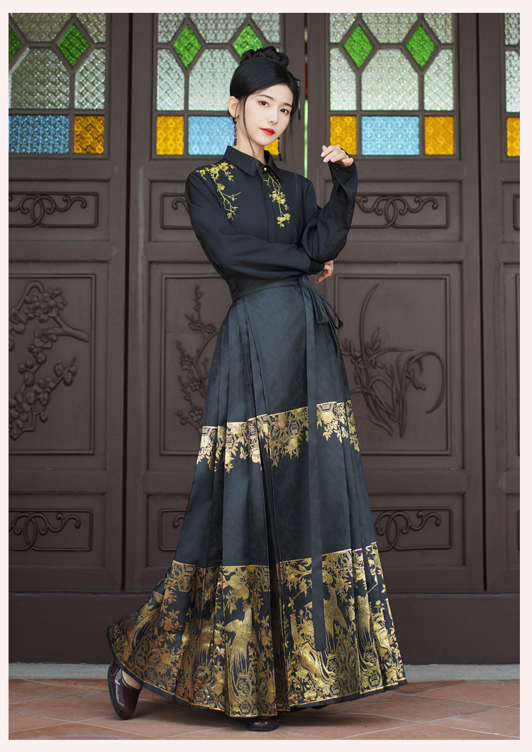 中国风明制织金马面裙新中式汉服男女同款凤凰锦绣古风大码套装春