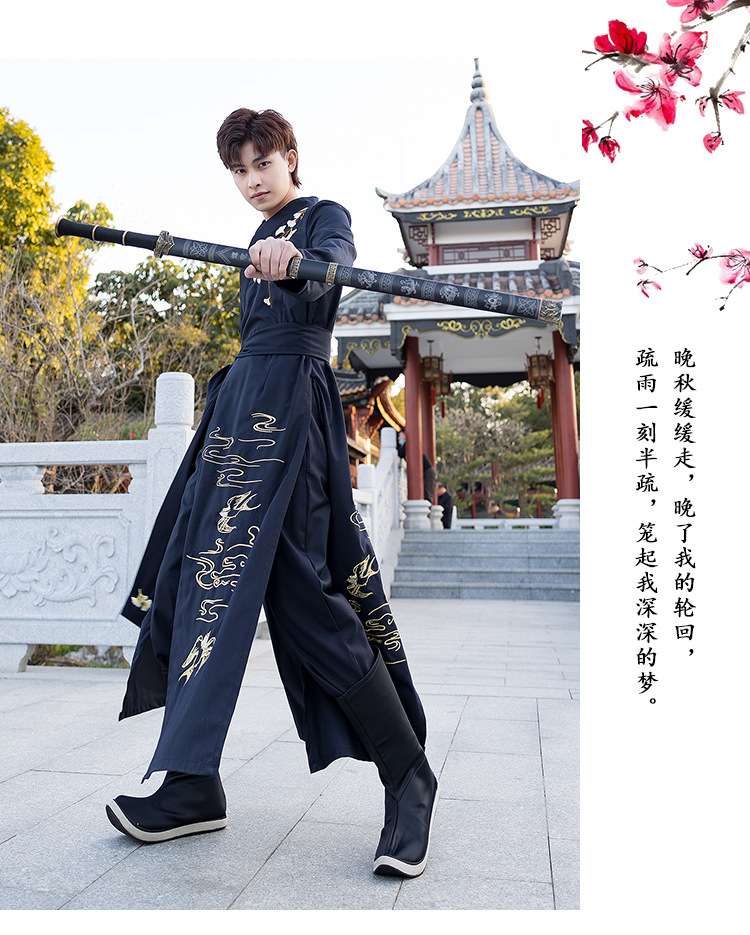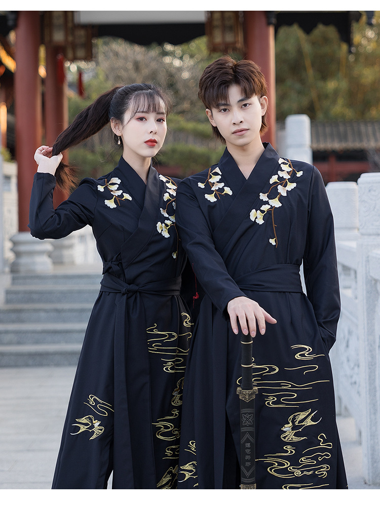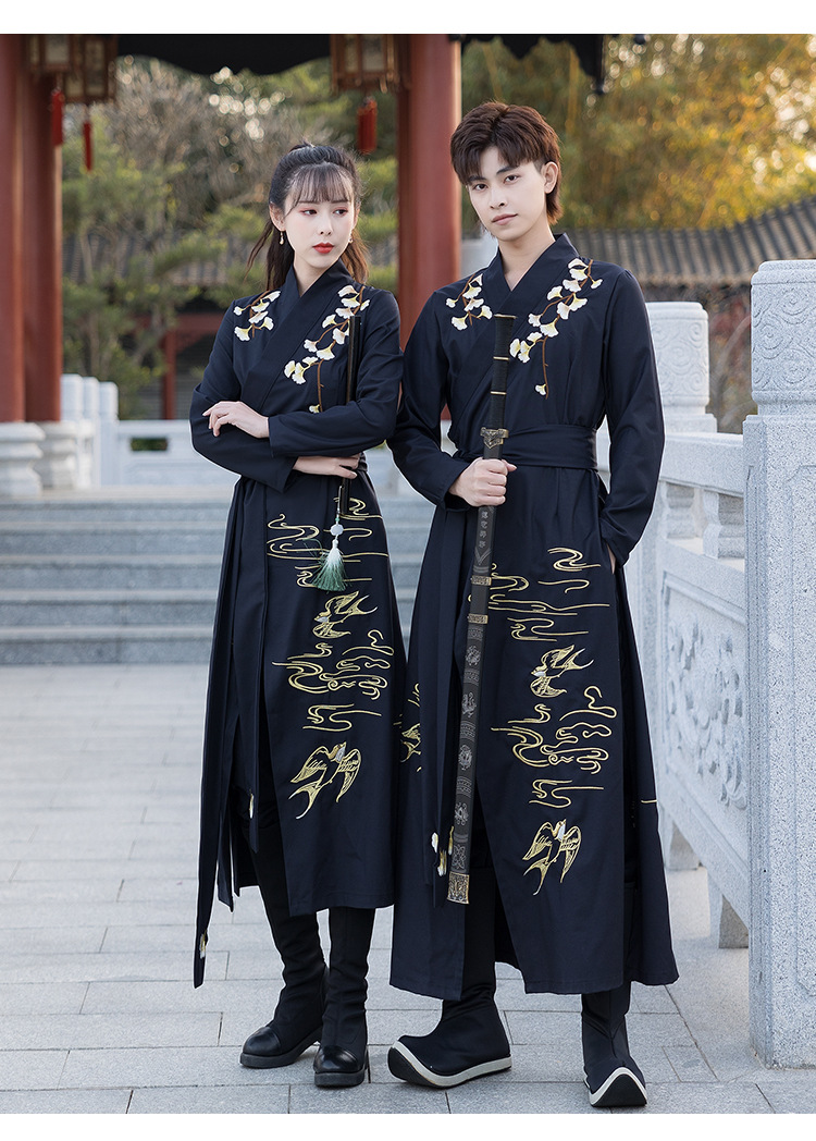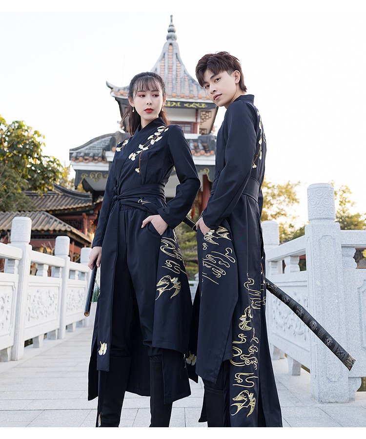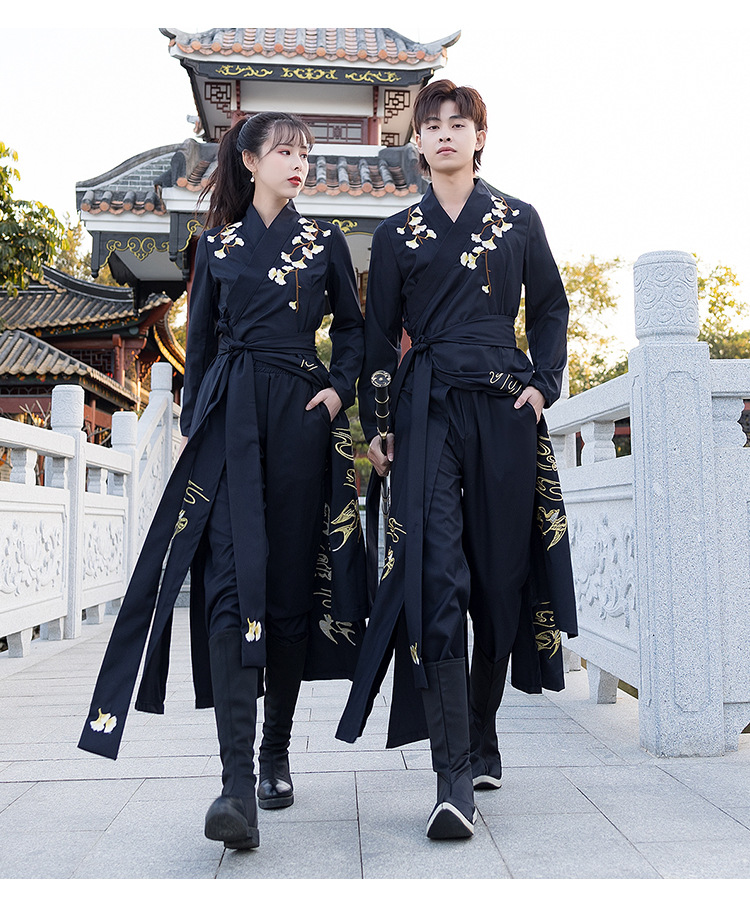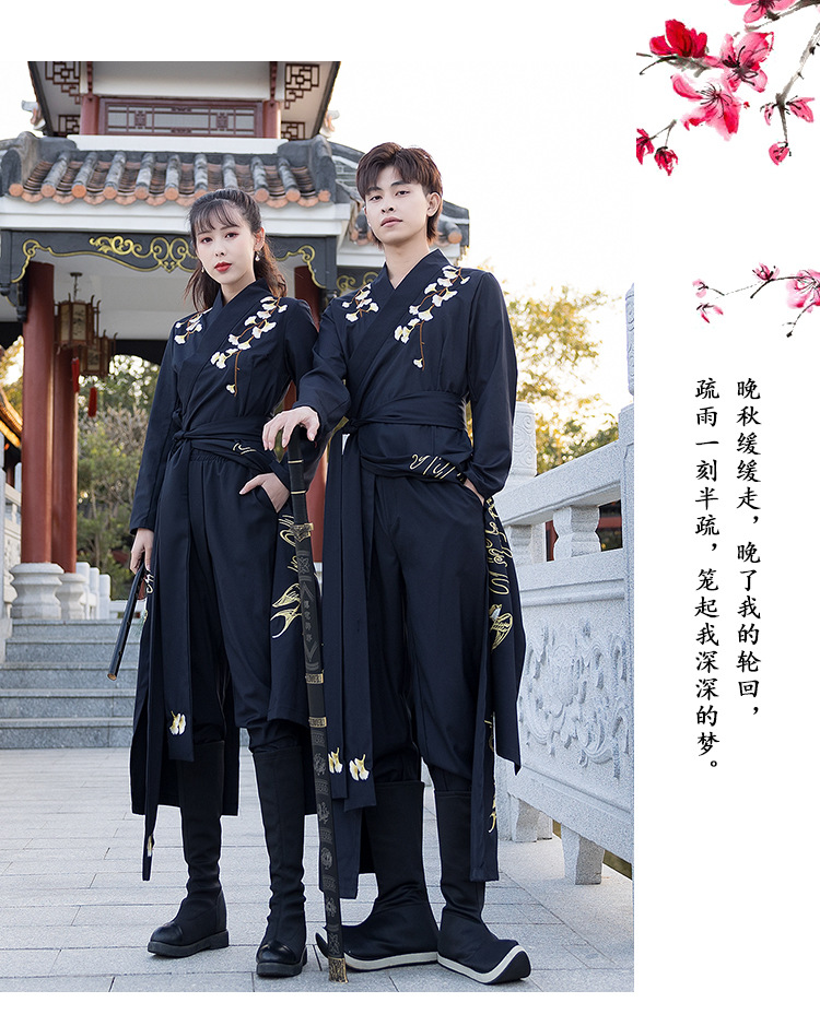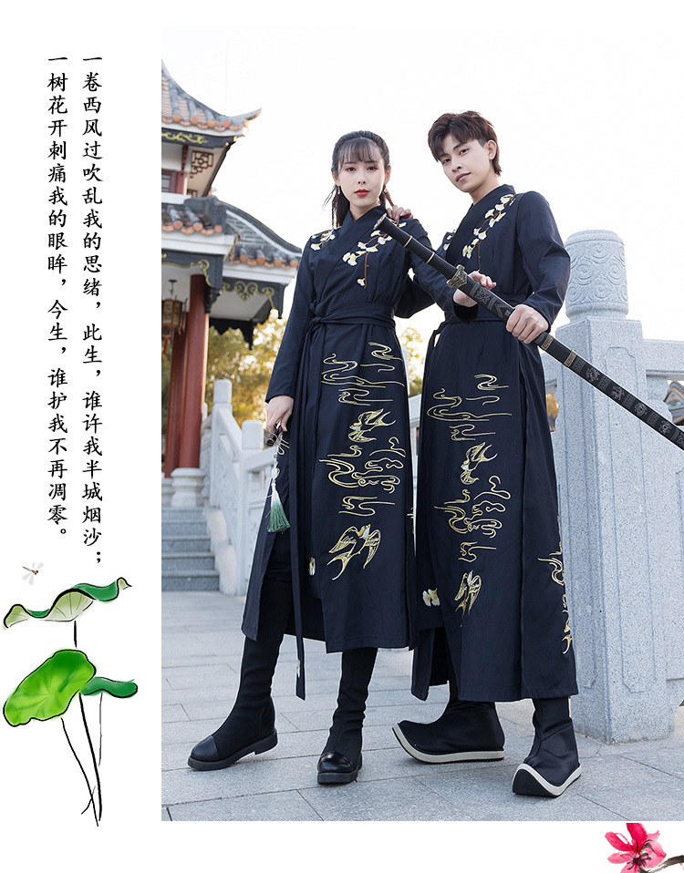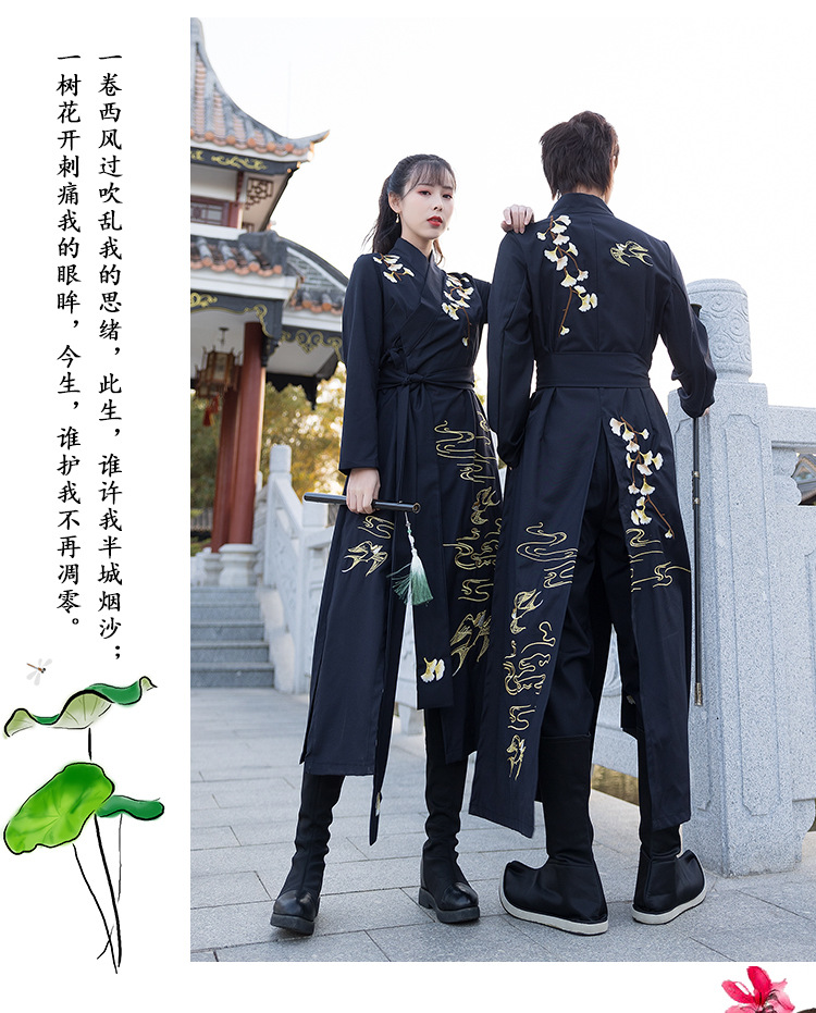 春夏新款薄款改良对襟长衫裤子日常情侣cp舞台服装男女古风演出付