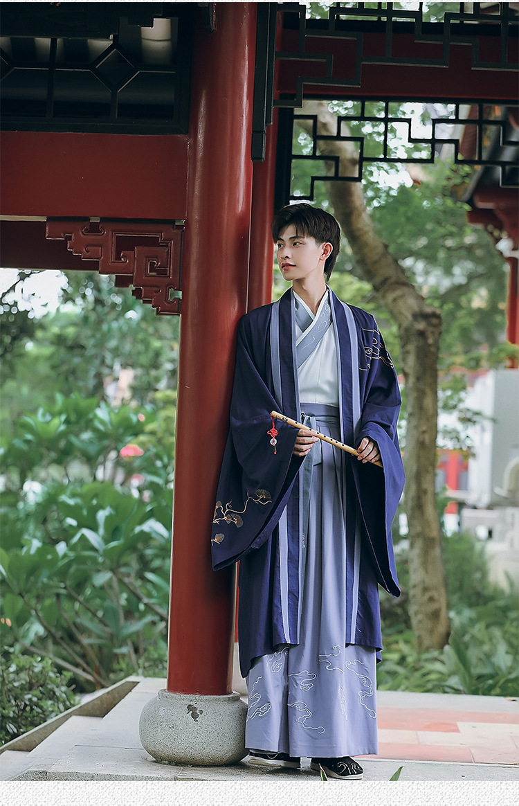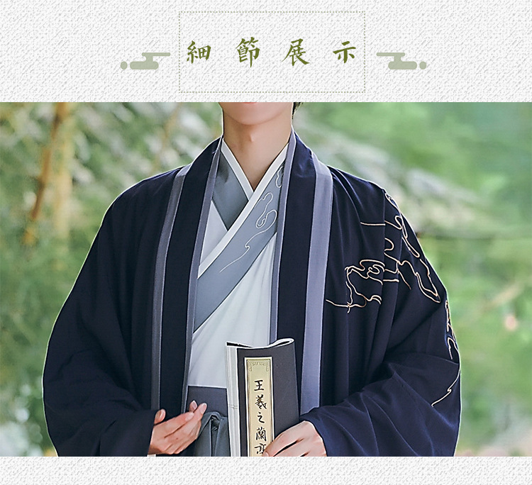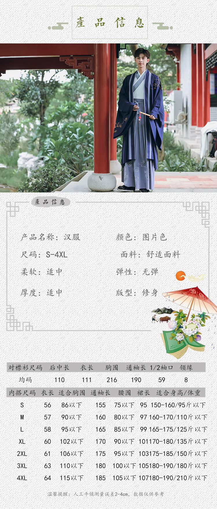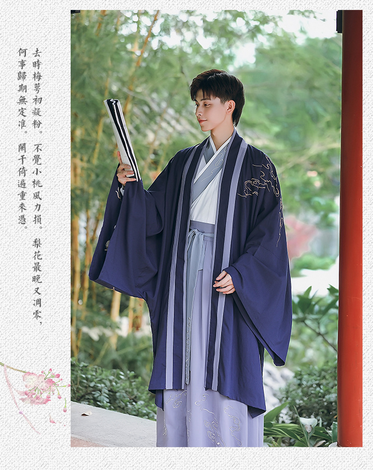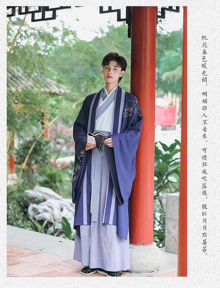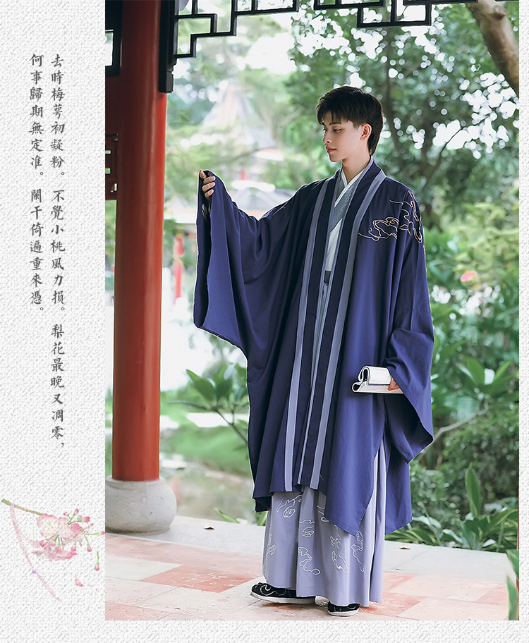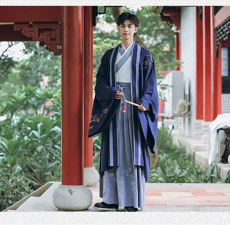 宋制男士汉服绣花对襟披风大码古装书生交领长袖一片式襦裙三件套
