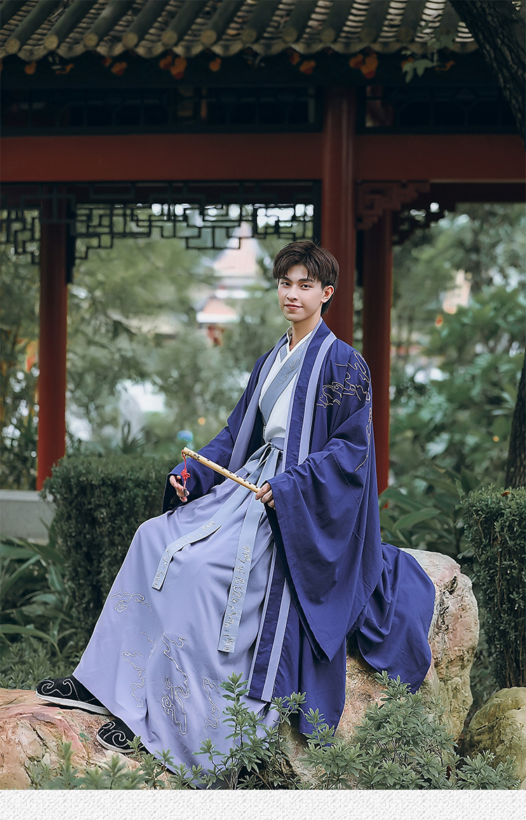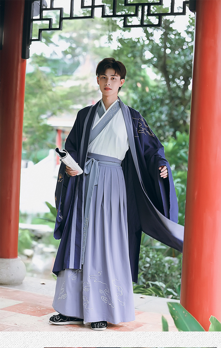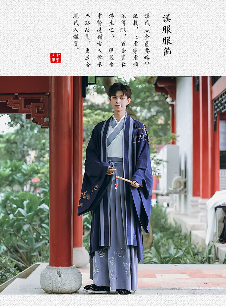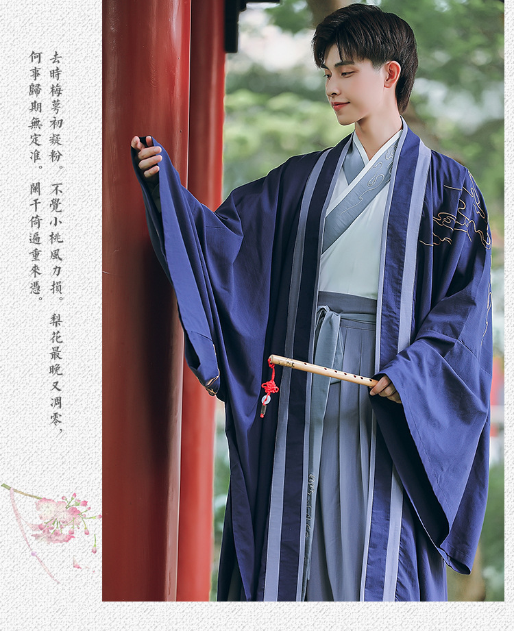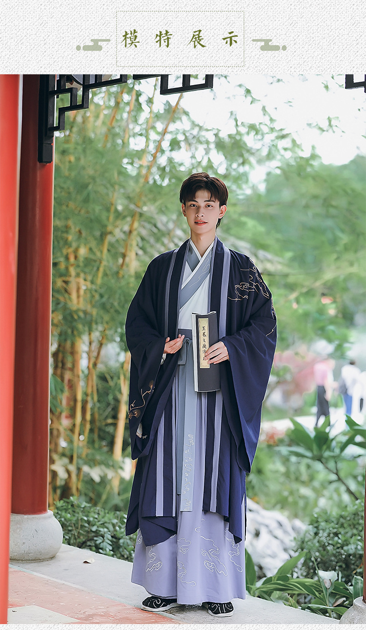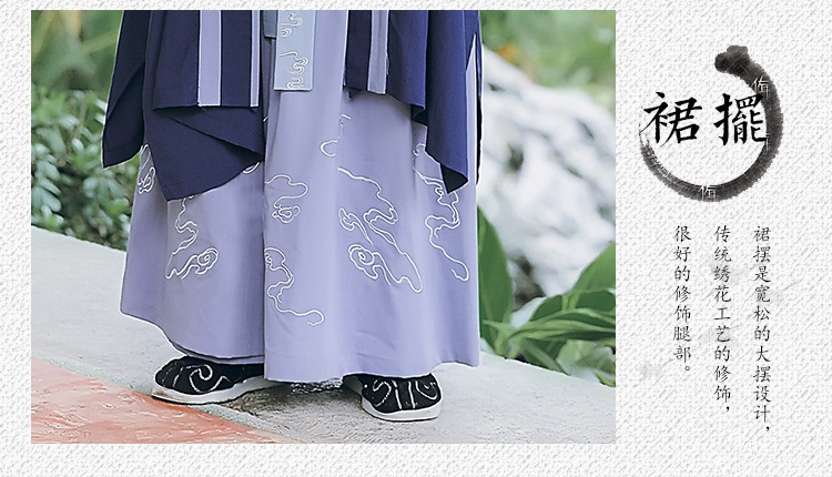 宋制男士汉服绣花对襟披风大码古装书生交领长袖一片式襦裙三件套