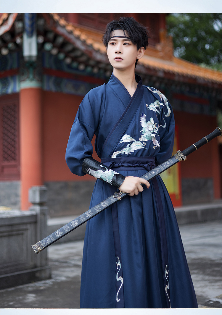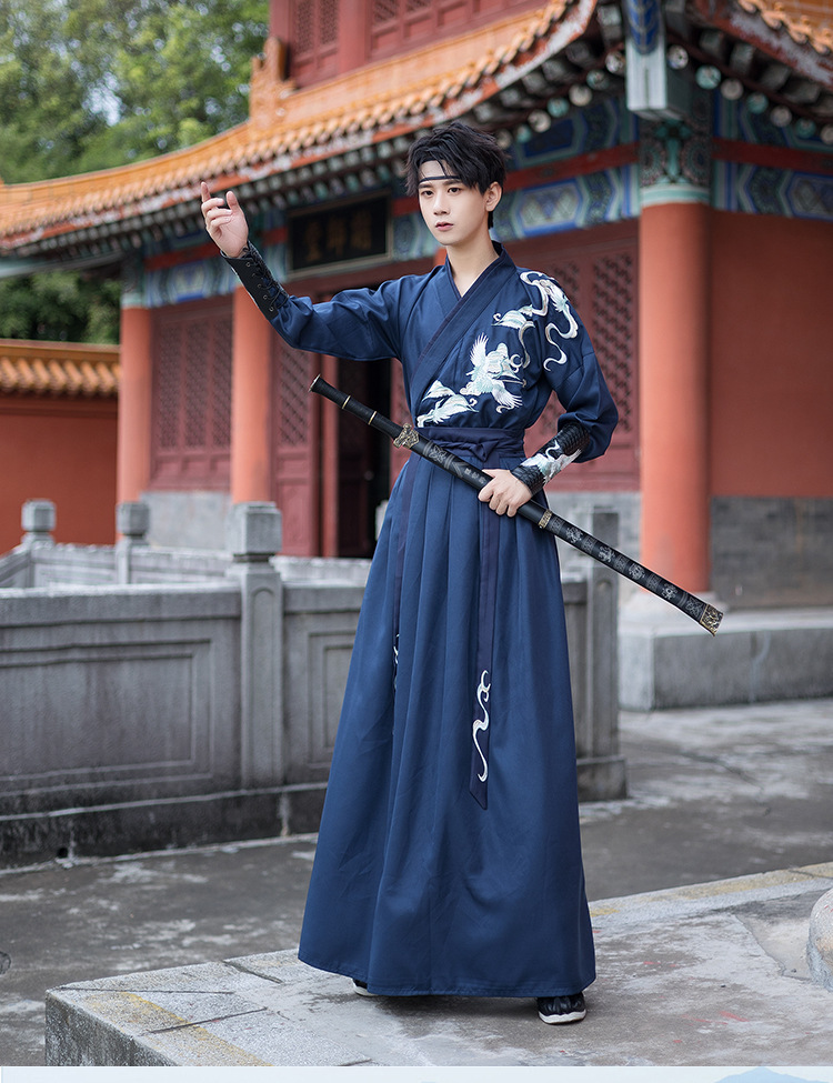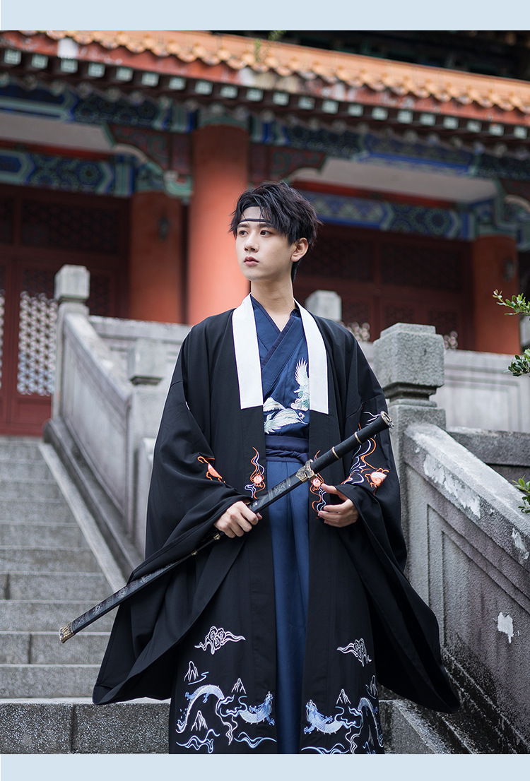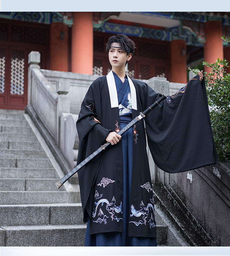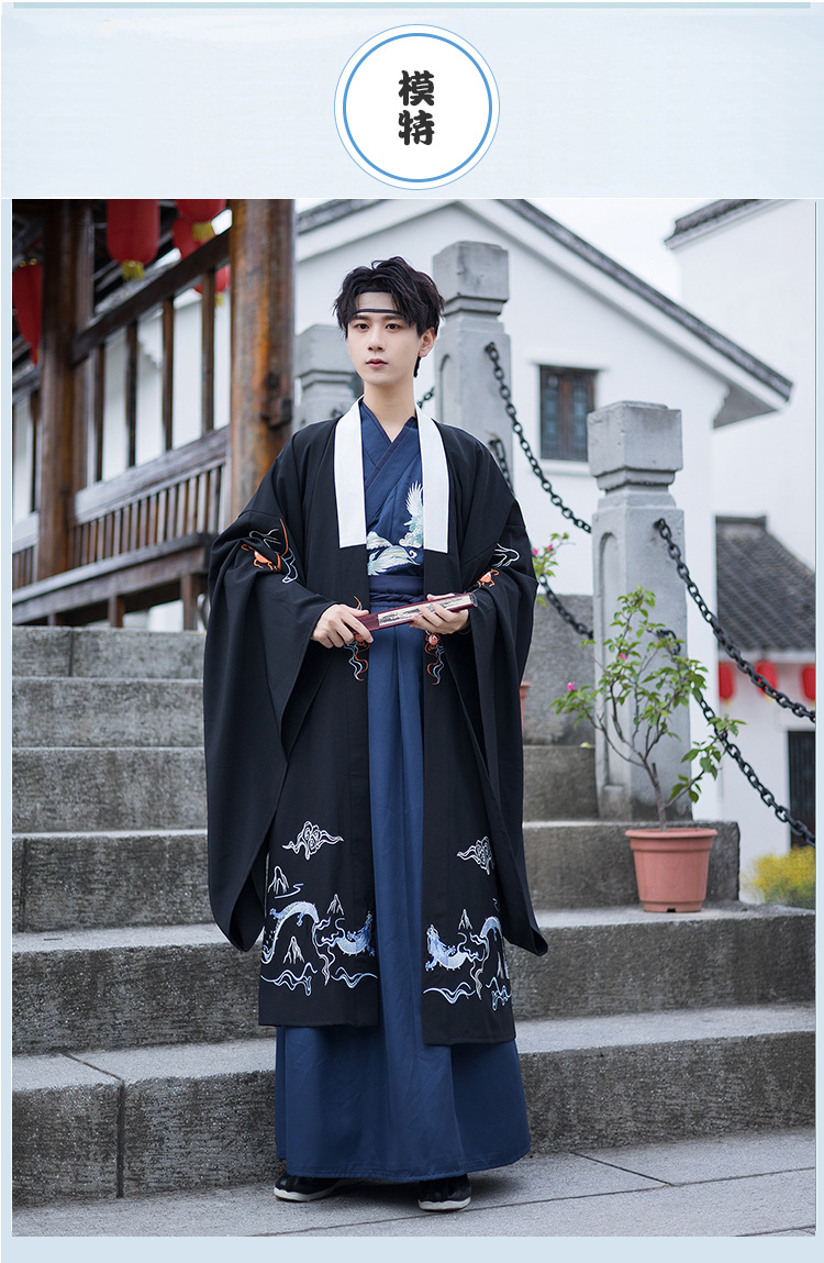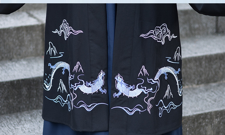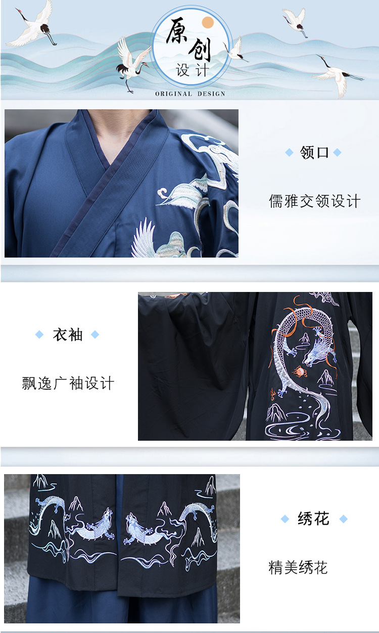 中国风大码男装汉元素古风长袖汉服男对襟道袍男款民族风演出班服