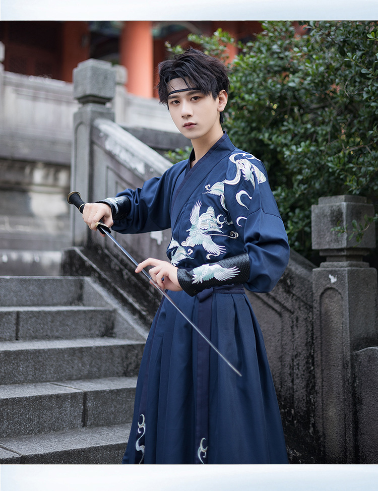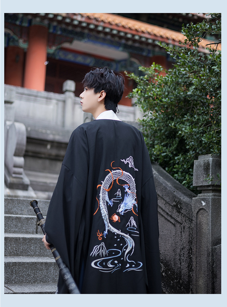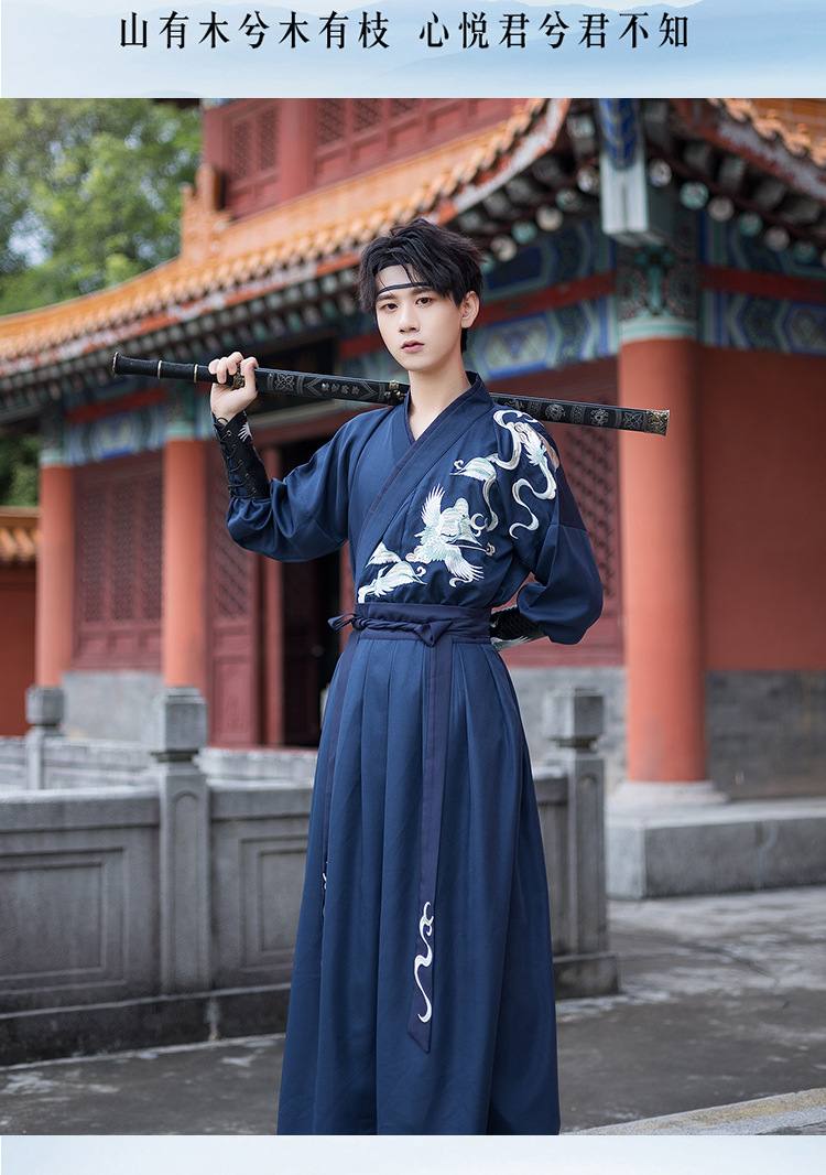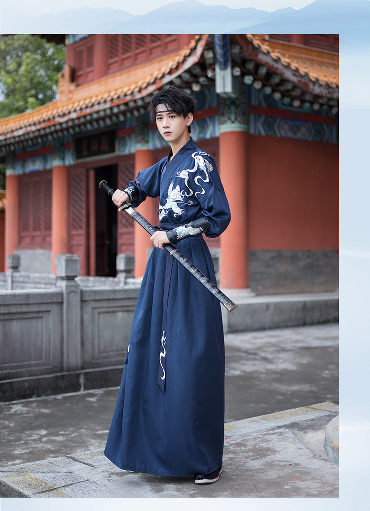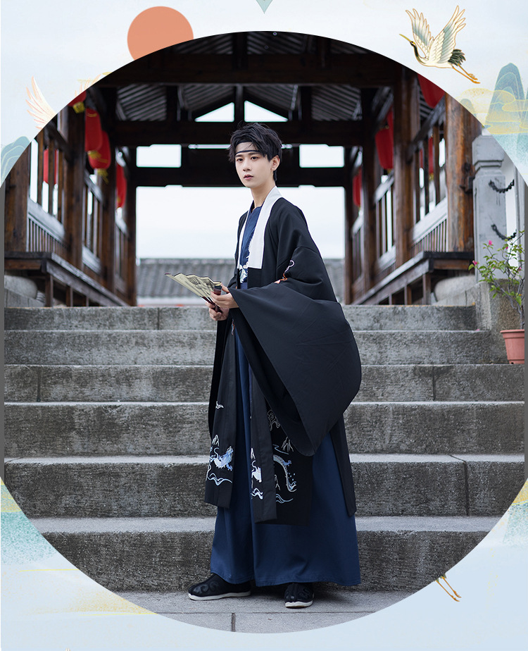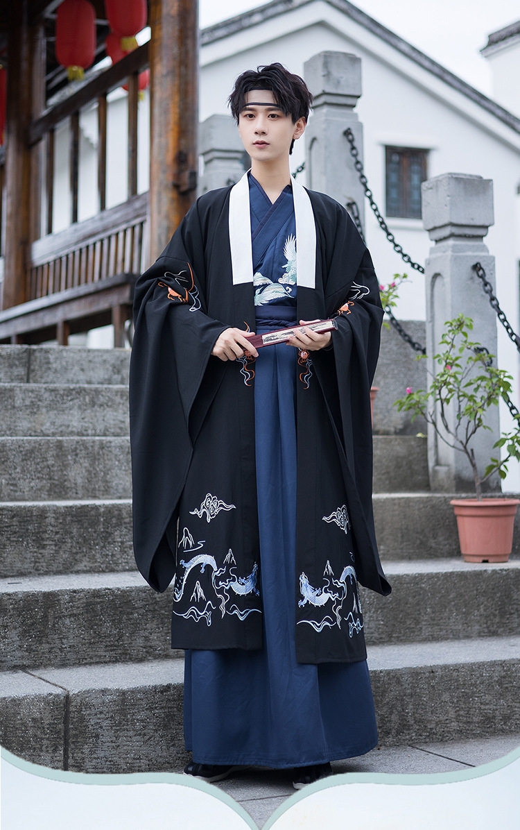 中国风大码男装汉元素古风长袖汉服男对襟道袍男款民族风演出班服