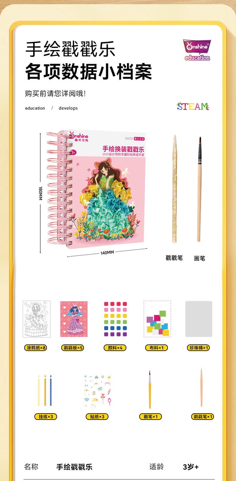 童年无限梦幻手绘公主戳戳乐换装本贴纸书女孩粘贴画儿童手工玩具
