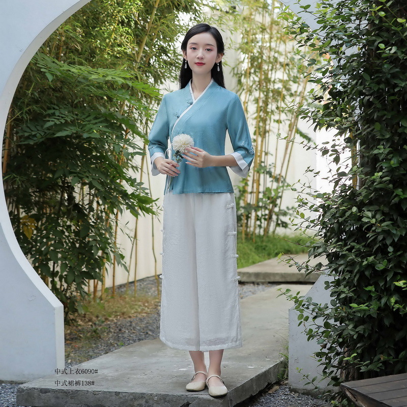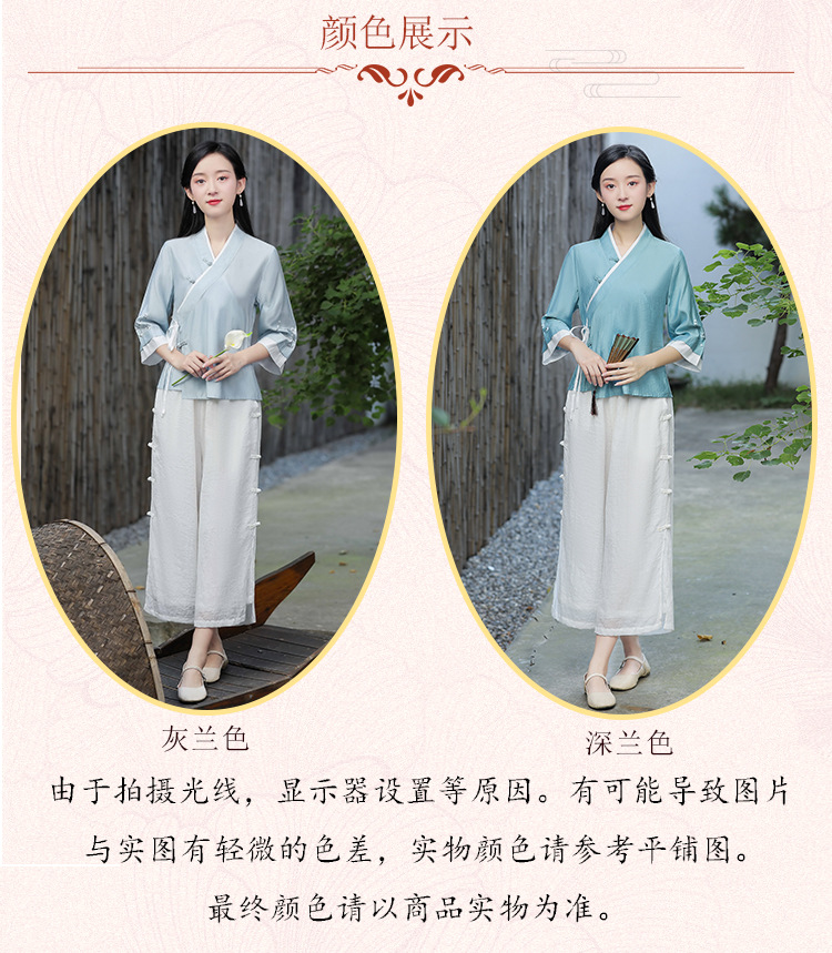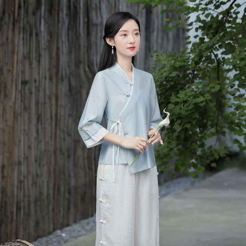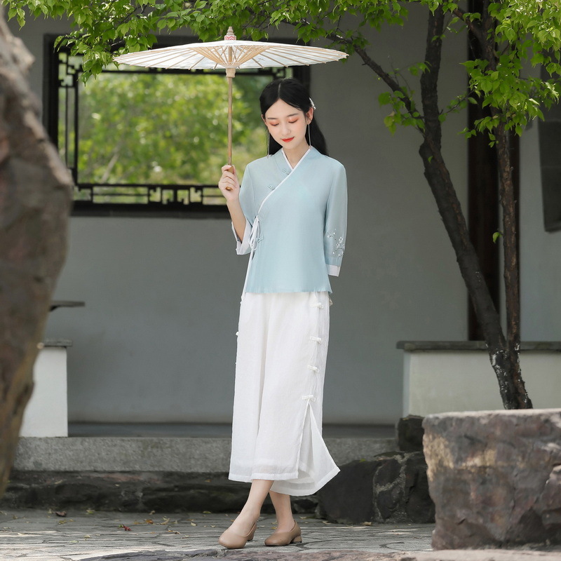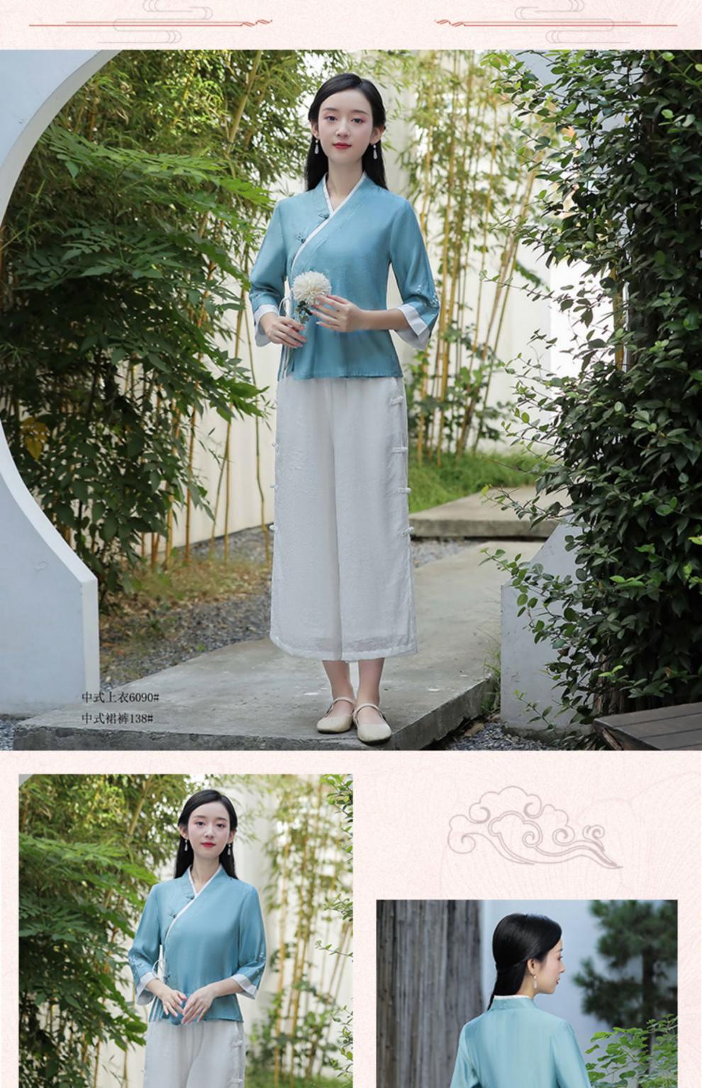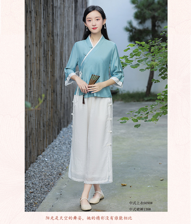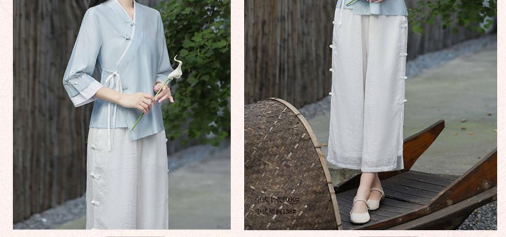 春夏中式日常交领系带休闲优雅大方宽松舒适裙裤套装女装茶服禅服