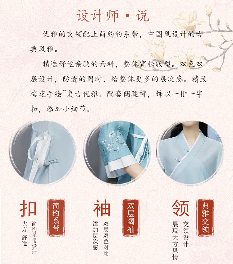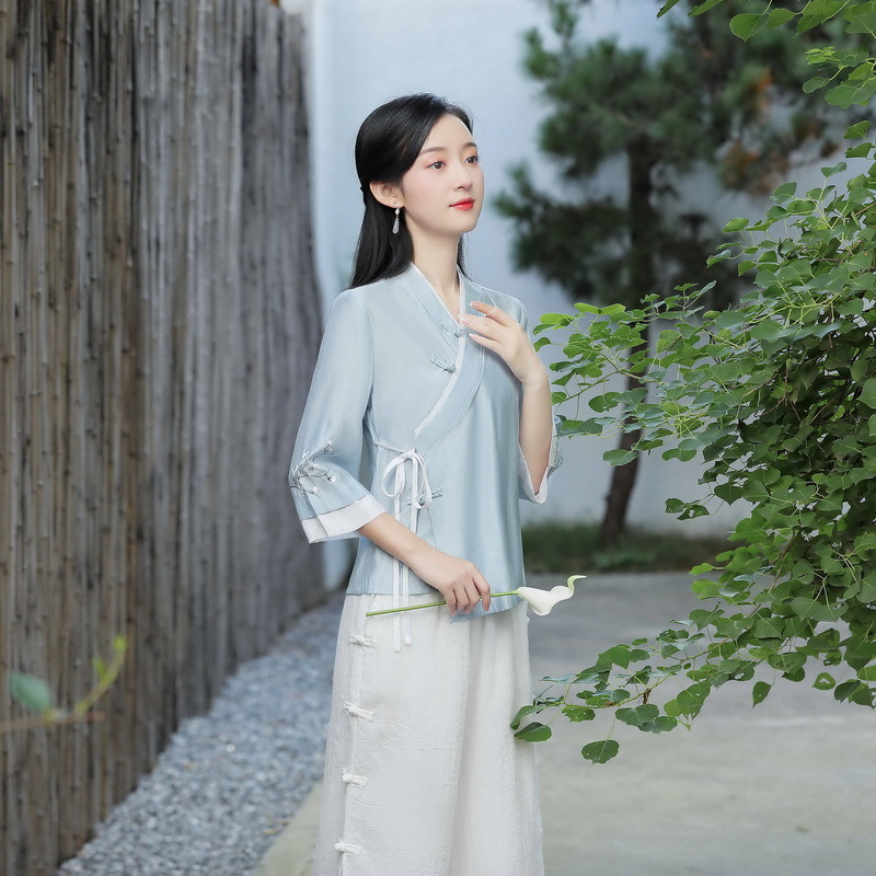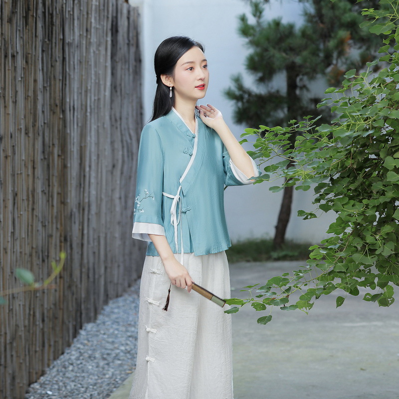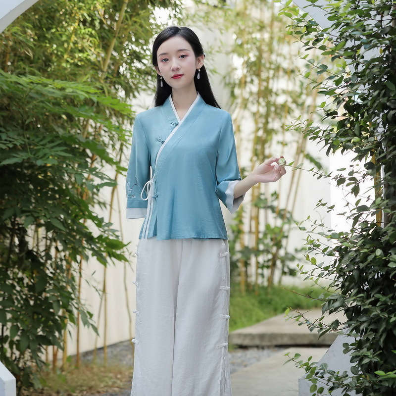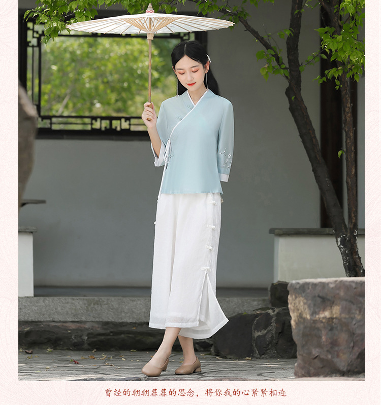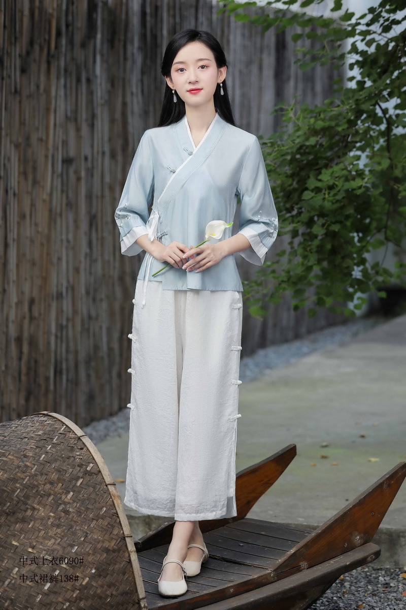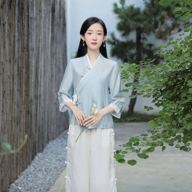 春夏中式日常交领系带休闲优雅大方宽松舒适裙裤套装女装茶服禅服
