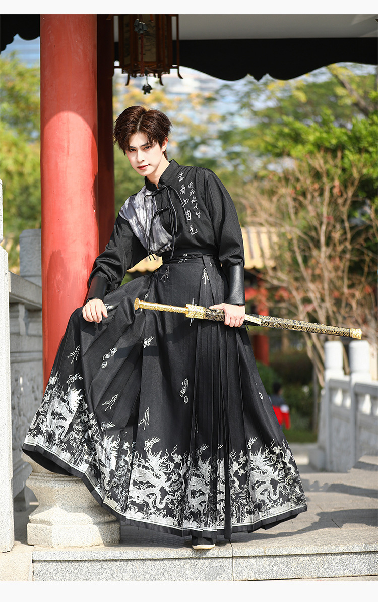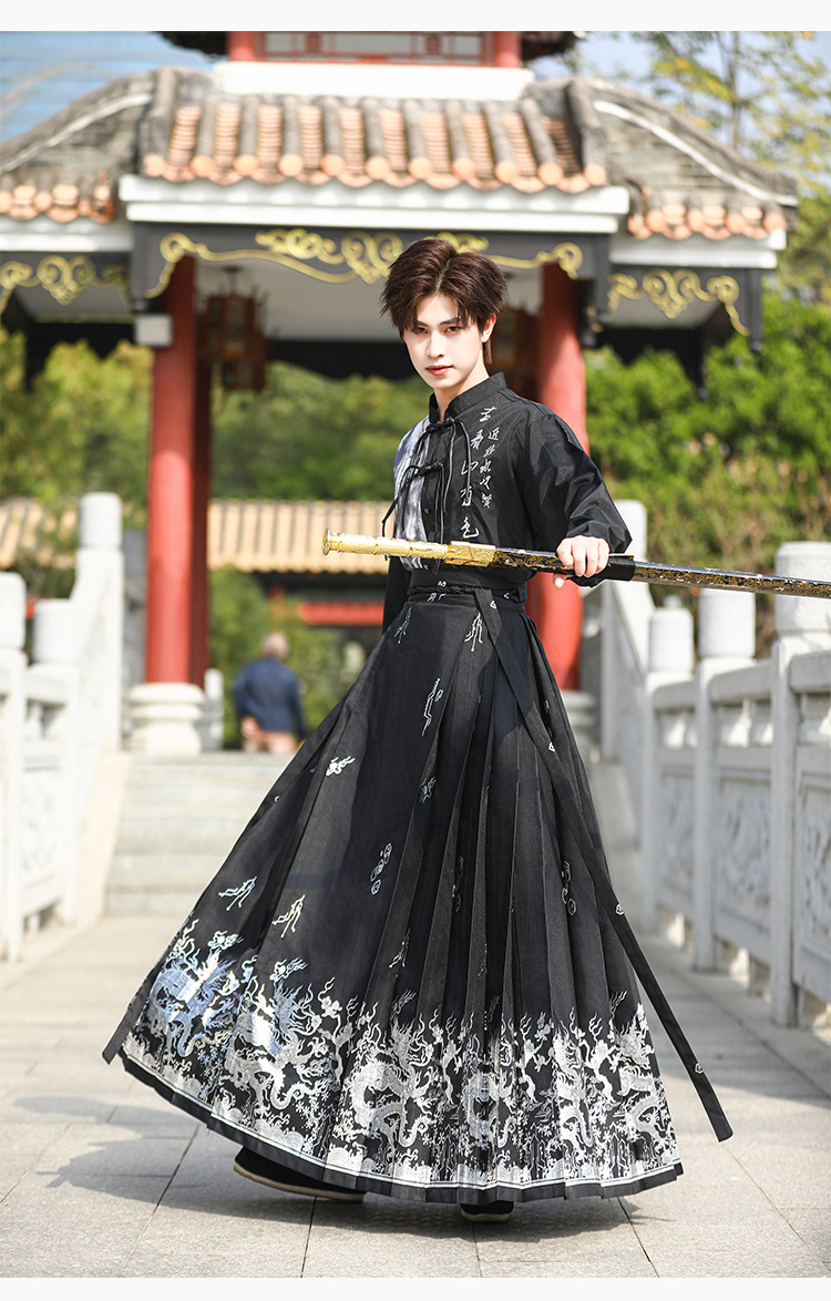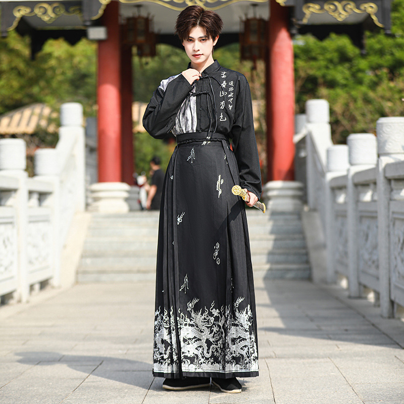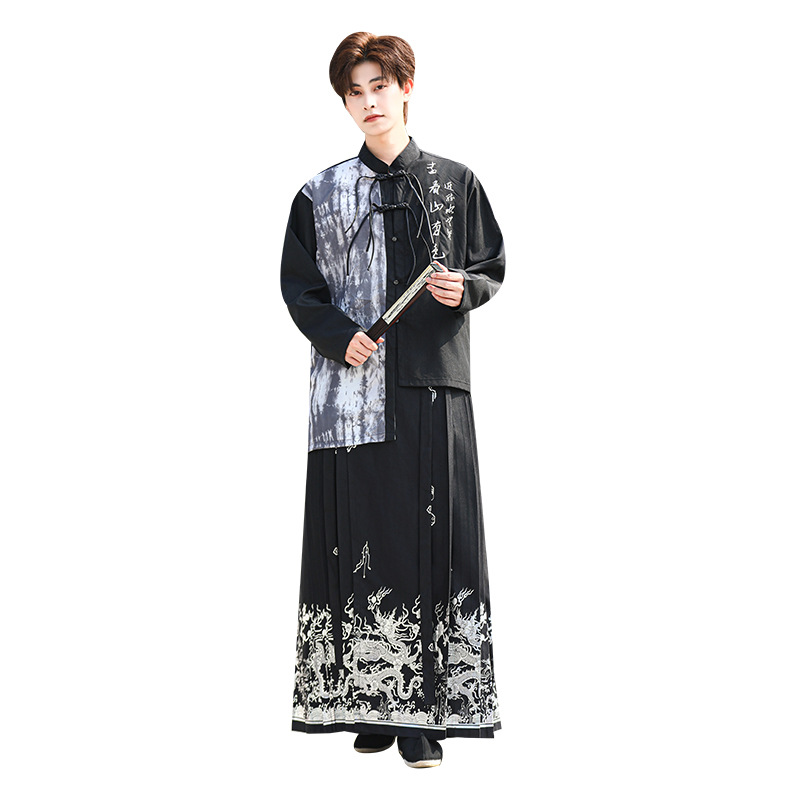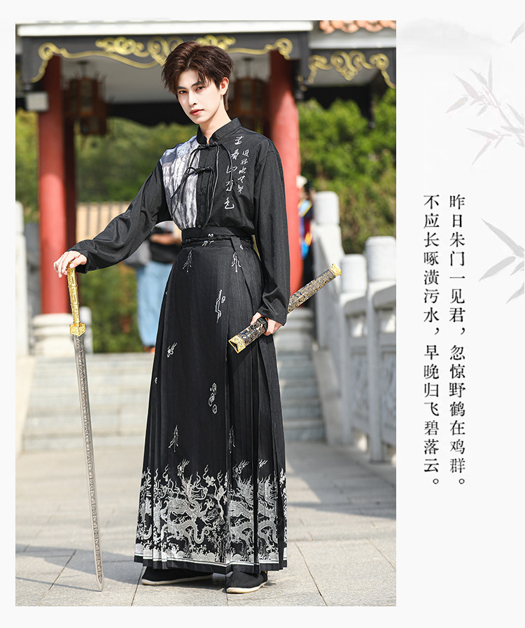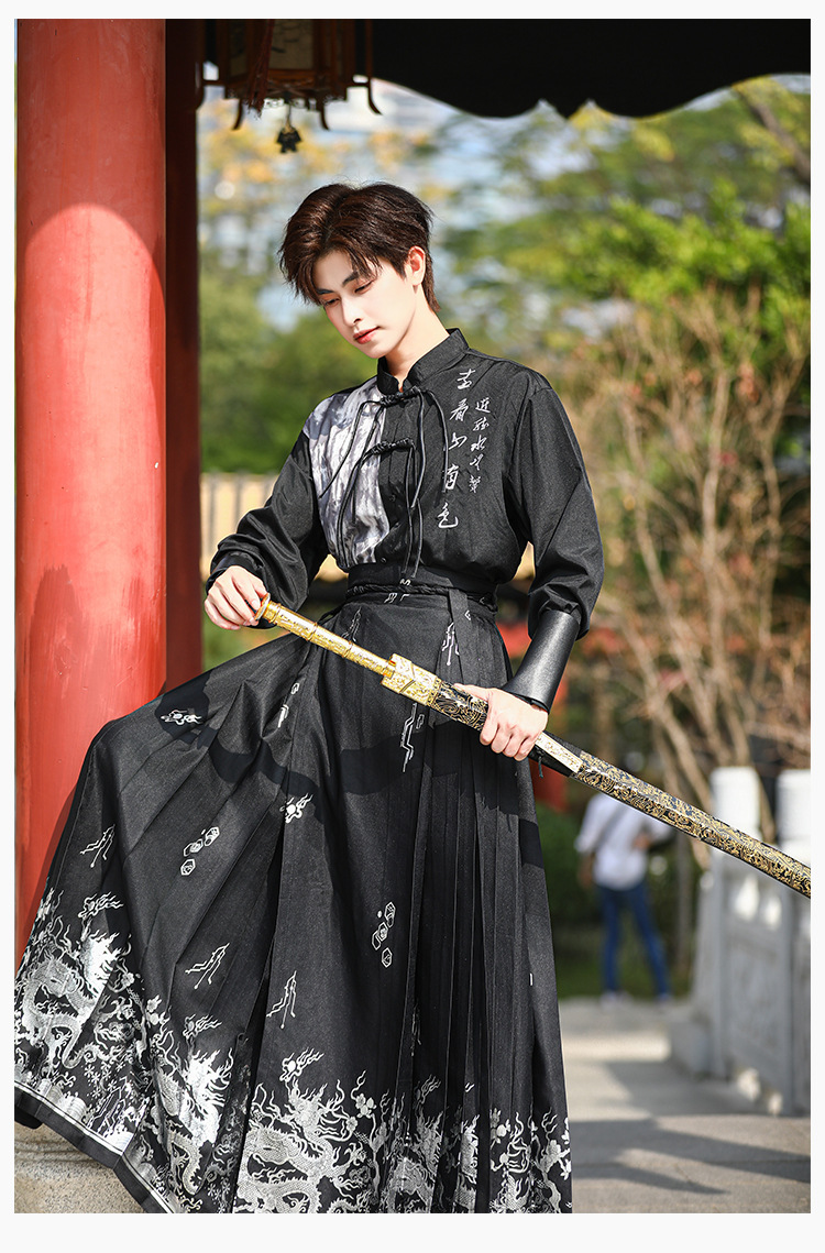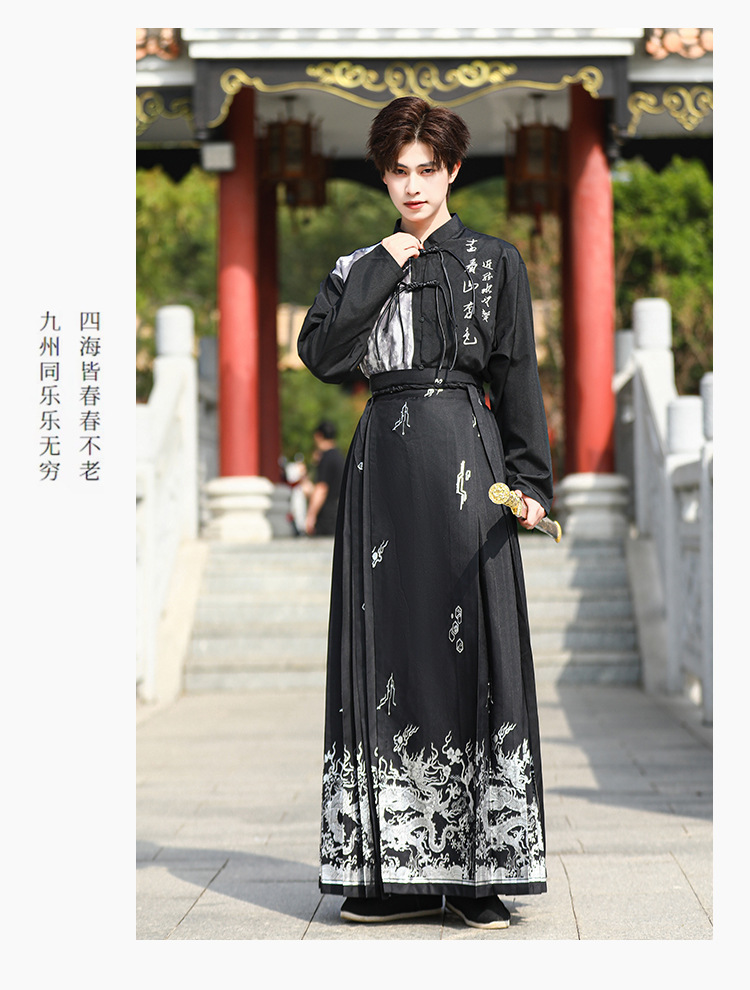 中国风明制黑色游龙马面裙男装优雅新中式衬衫长袖汉服古风汉元素