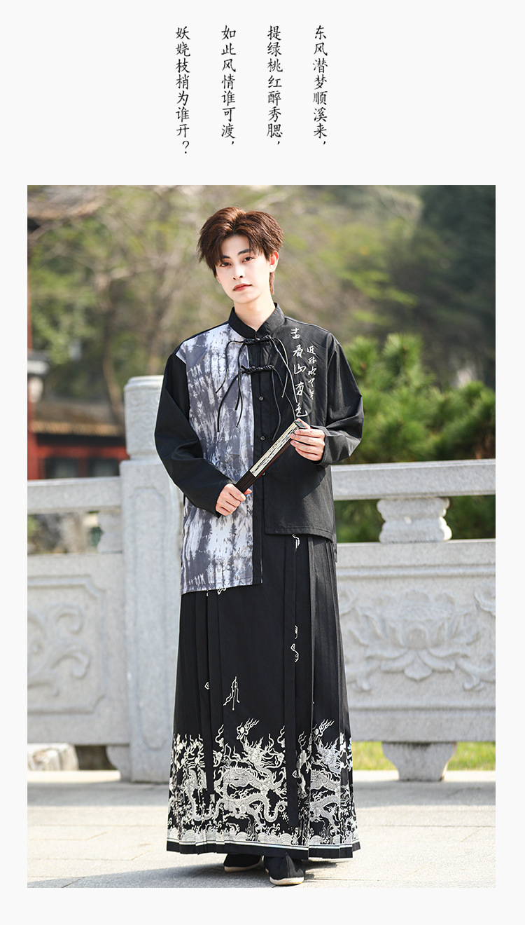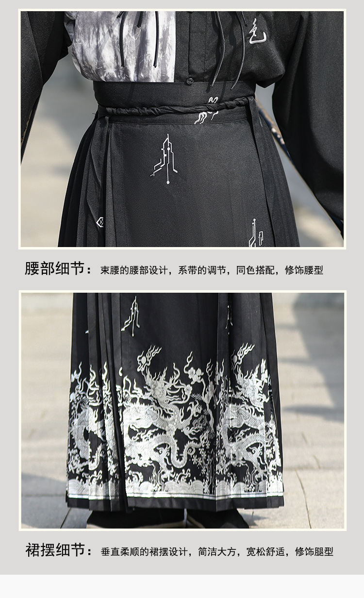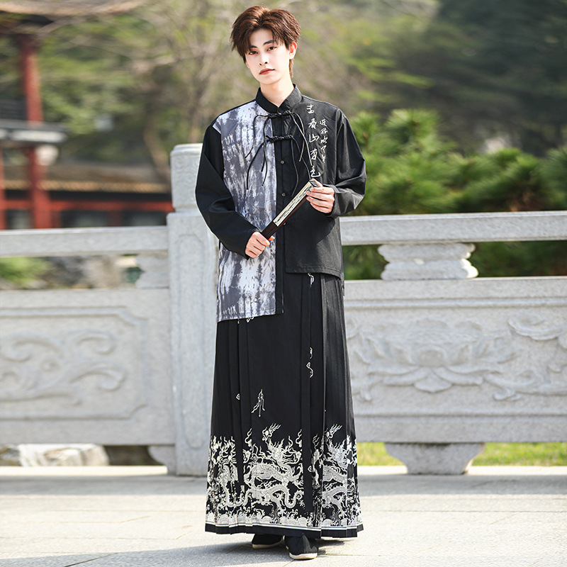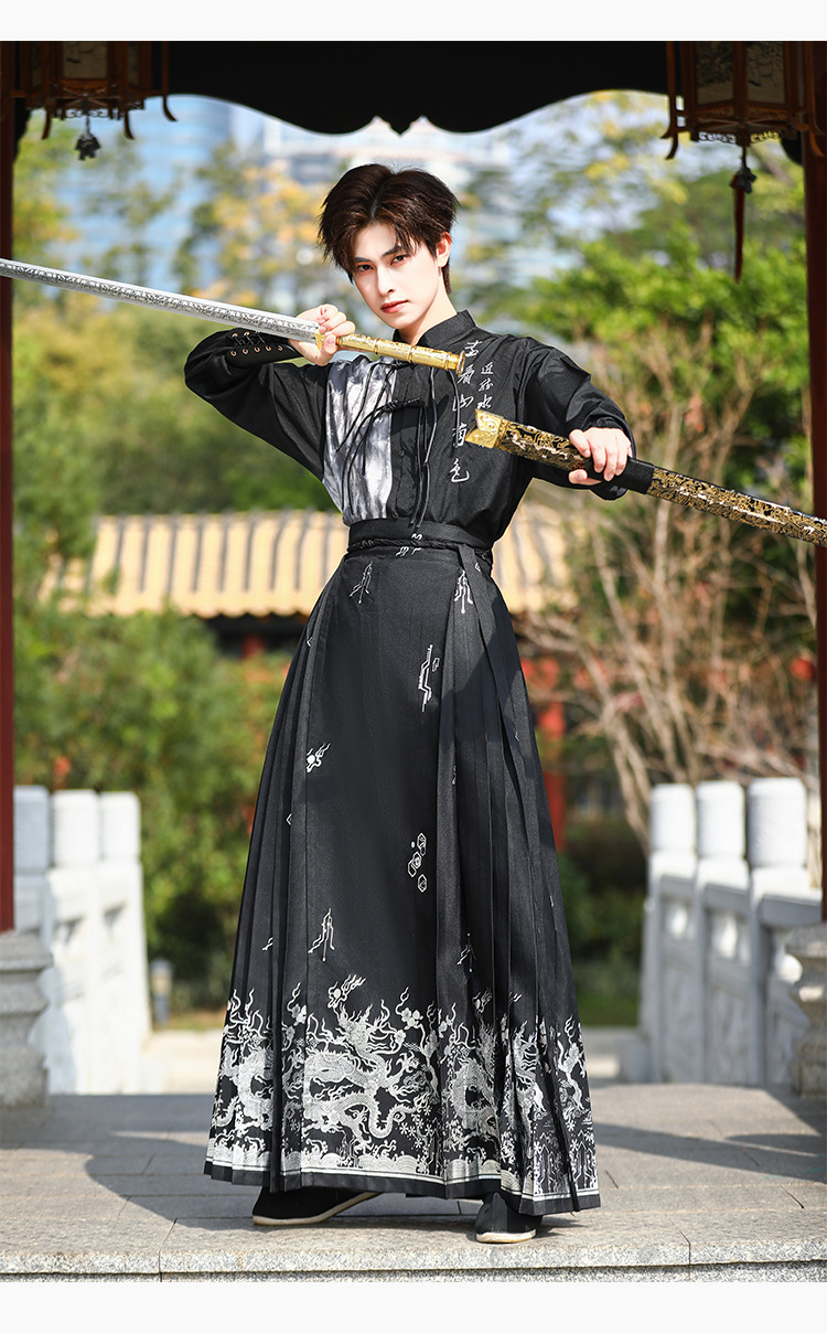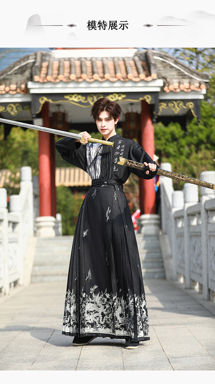 中国风明制黑色游龙马面裙男装优雅新中式衬衫长袖汉服古风汉元素