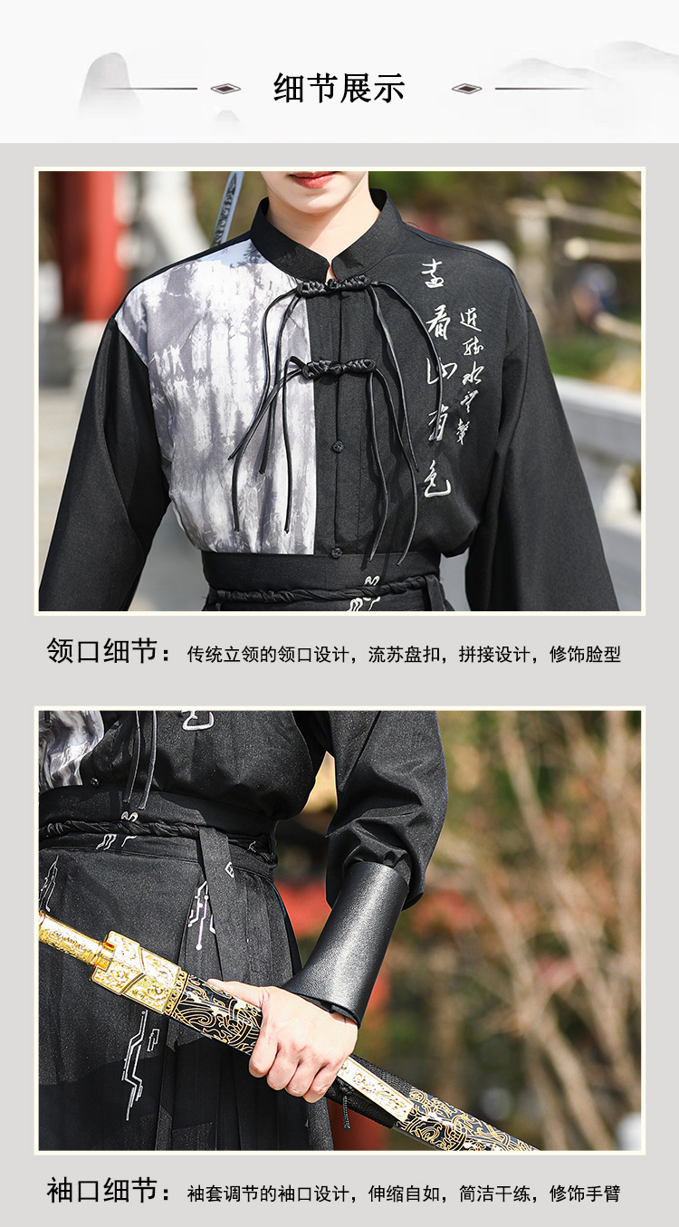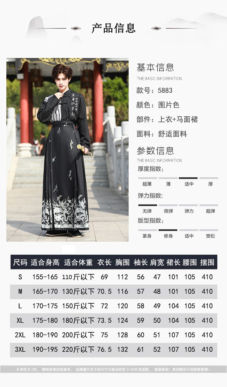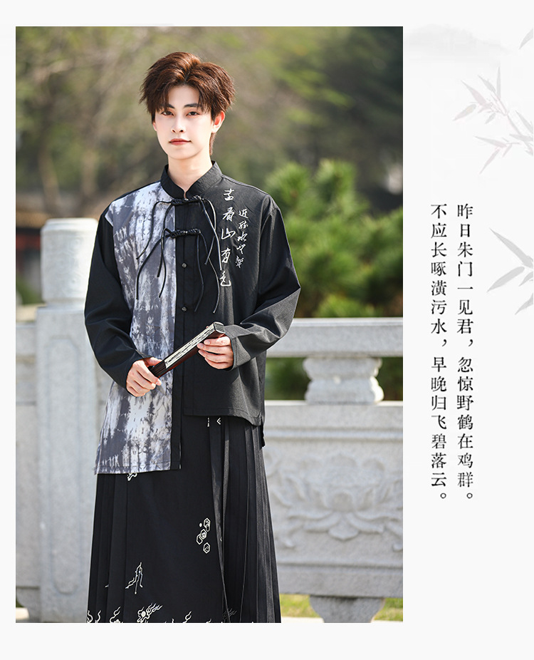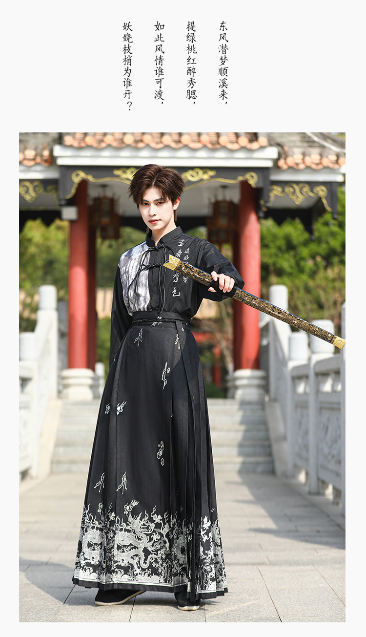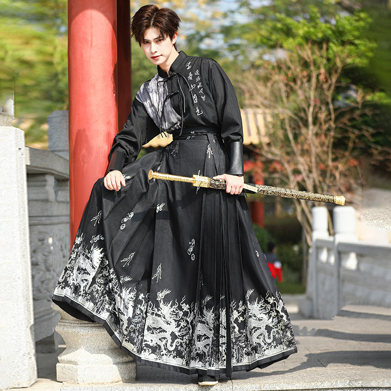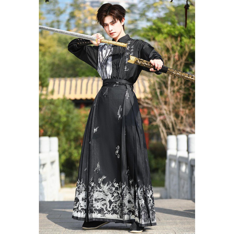 中国风明制黑色游龙马面裙男装优雅新中式衬衫长袖汉服古风汉元素