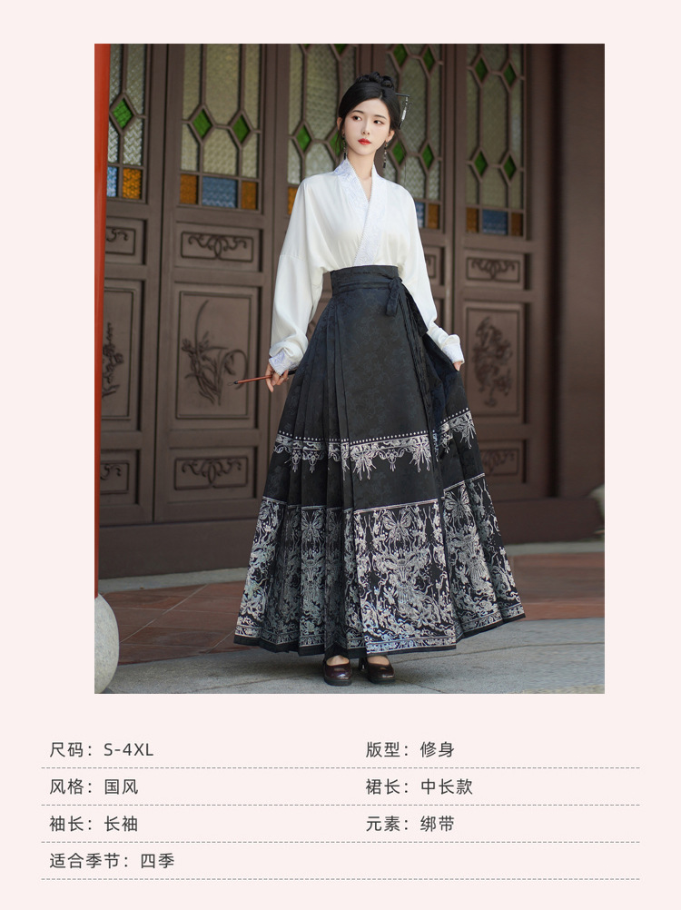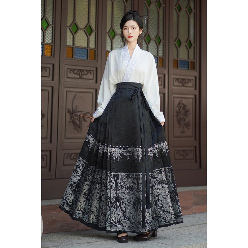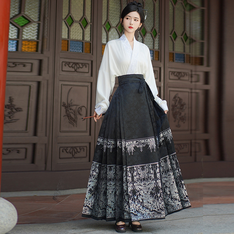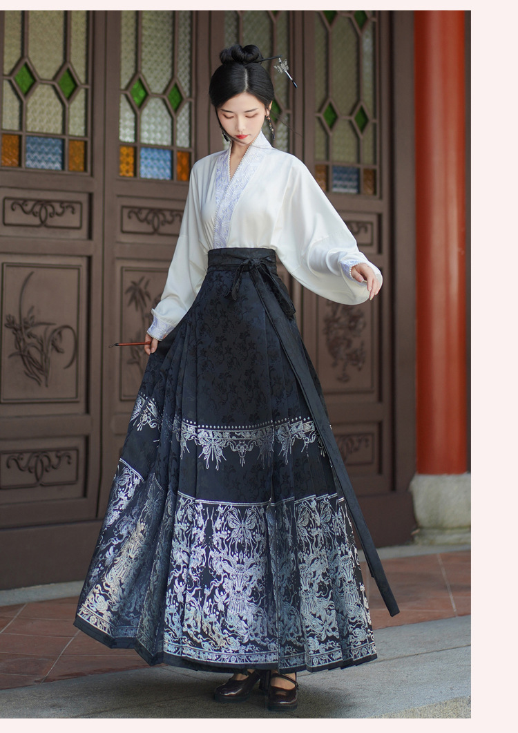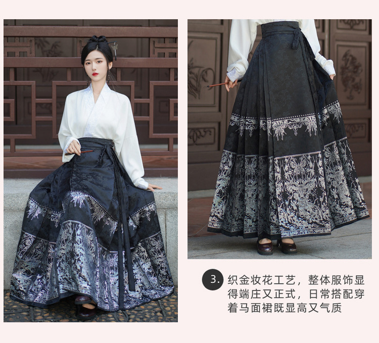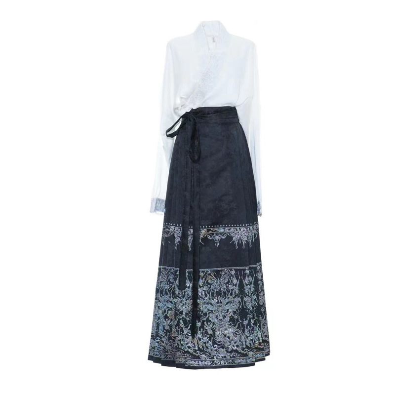 中国风明制织金马面裙新中式汉服男女同款古风套装鹿神织百褶裙春
