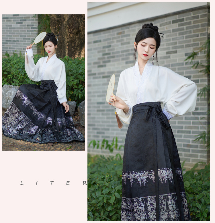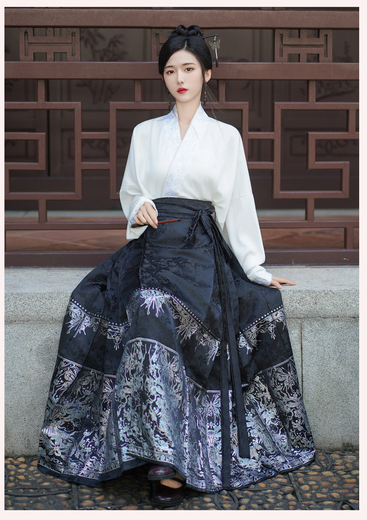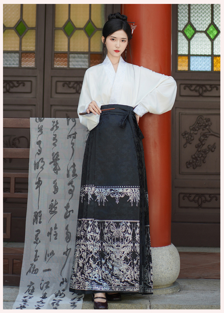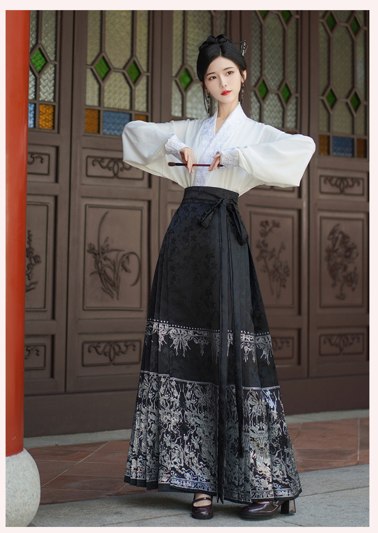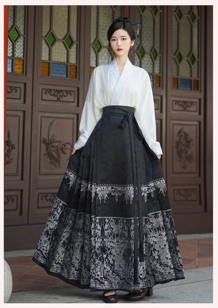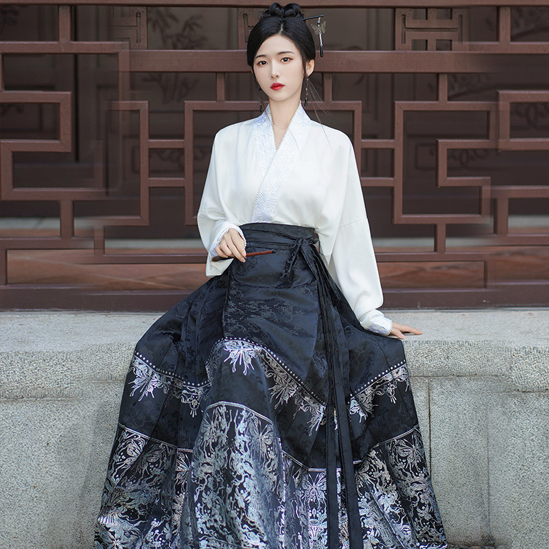 中国风明制织金马面裙新中式汉服男女同款古风套装鹿神织百褶裙春