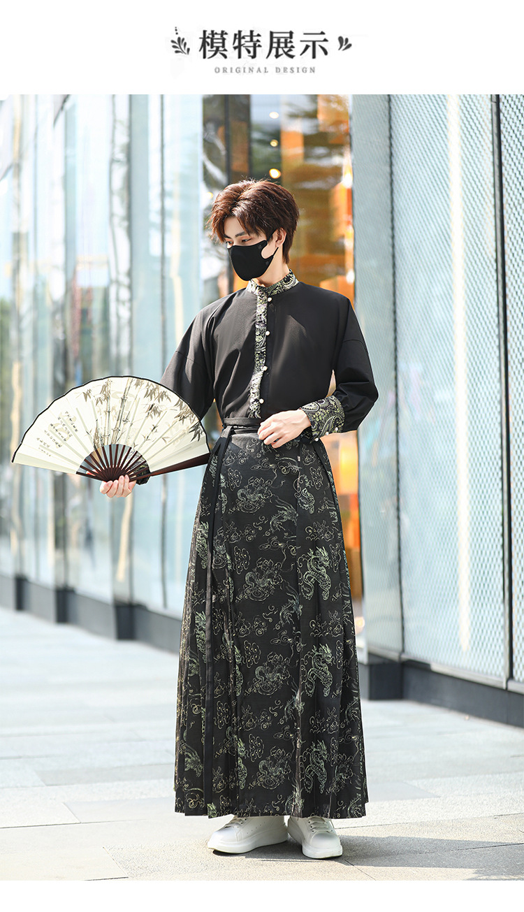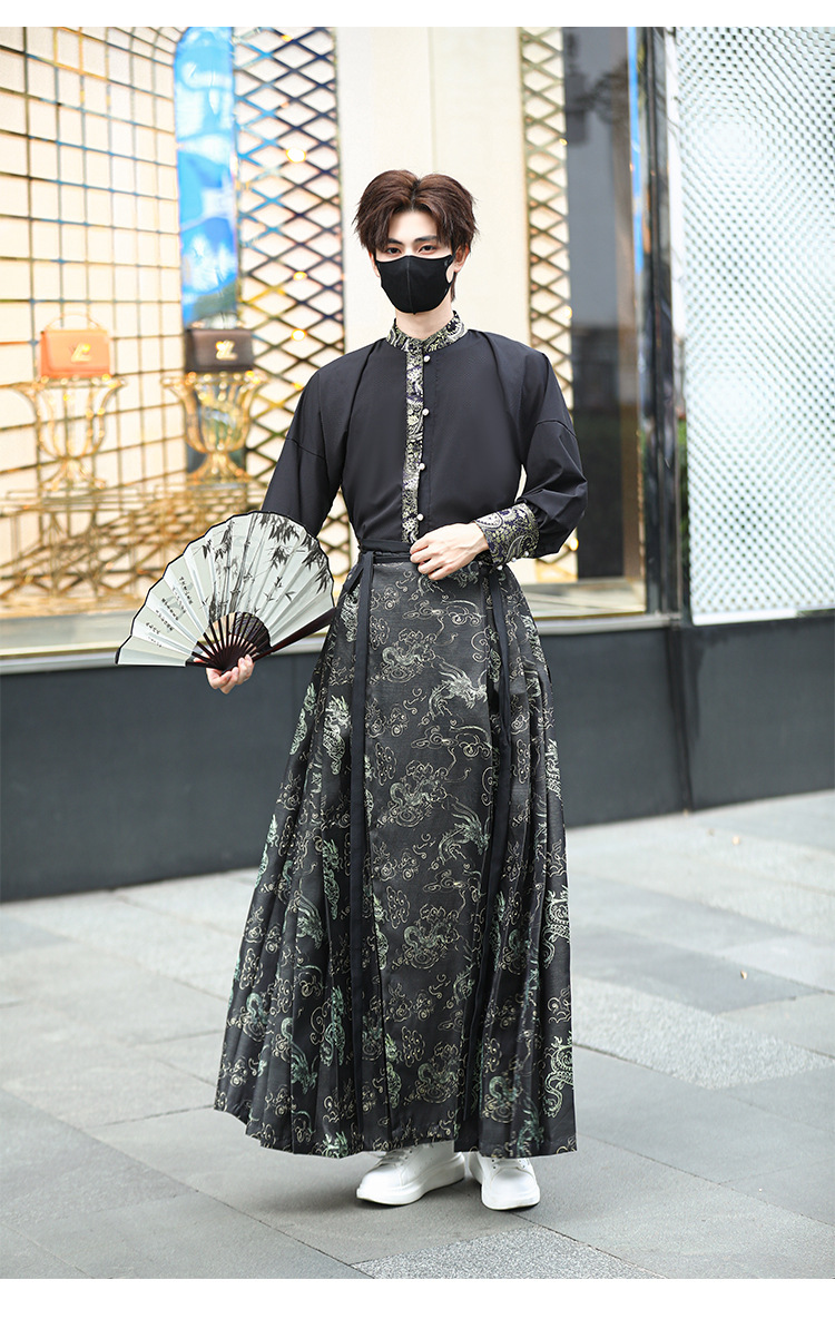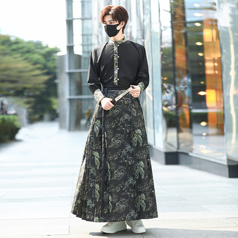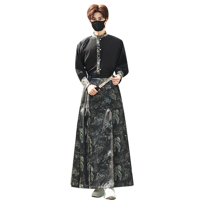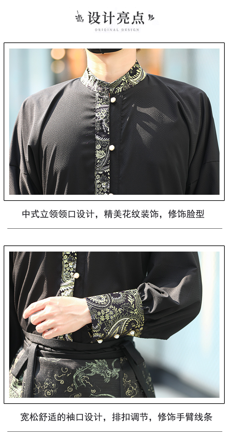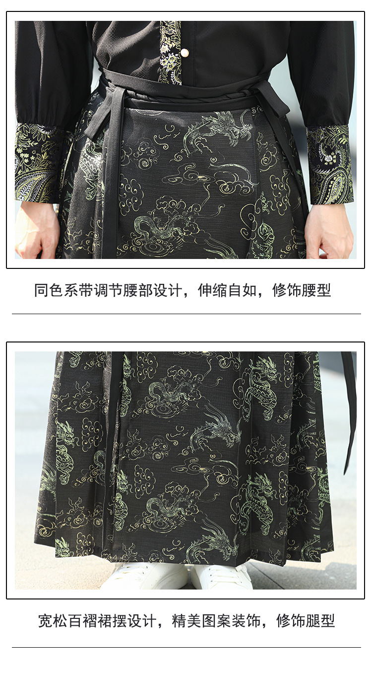 新中式男装国风汉服情侣CP装男女同款 烫金龙纹古风大码马面裙